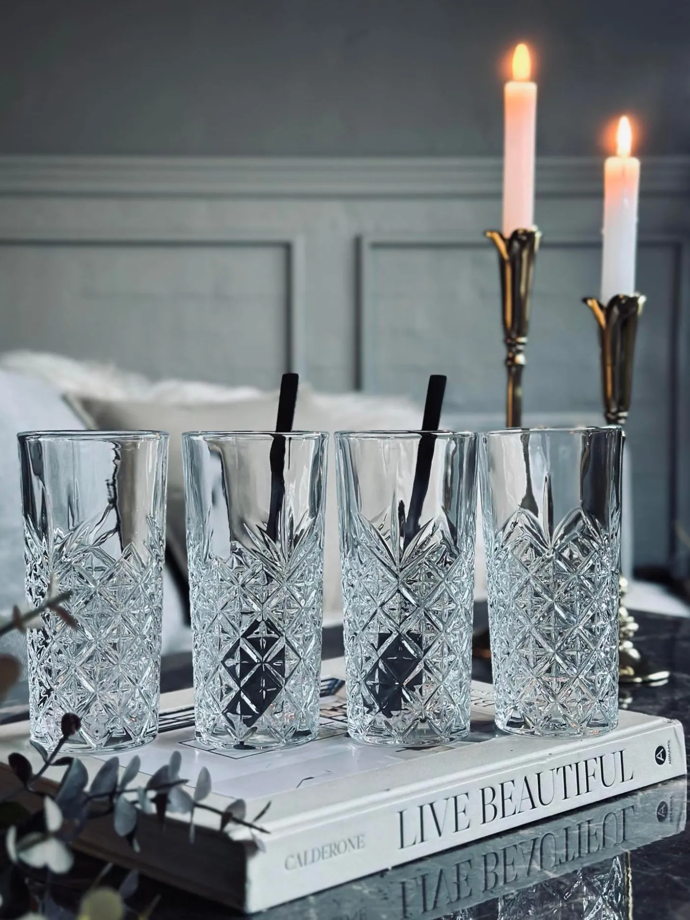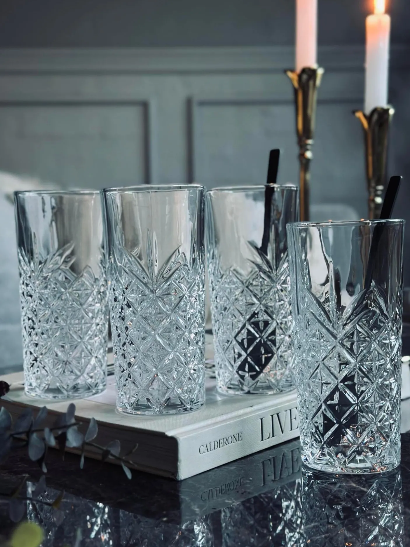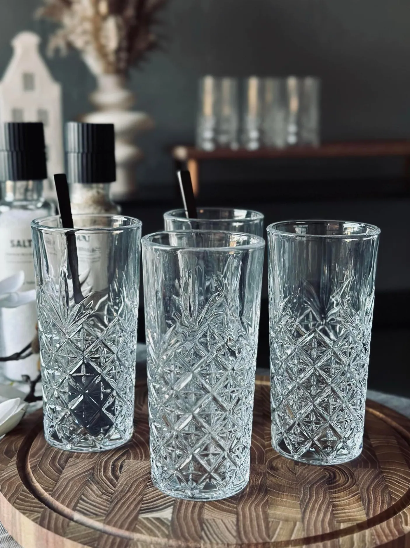 Long drink glas med fine detaljer.