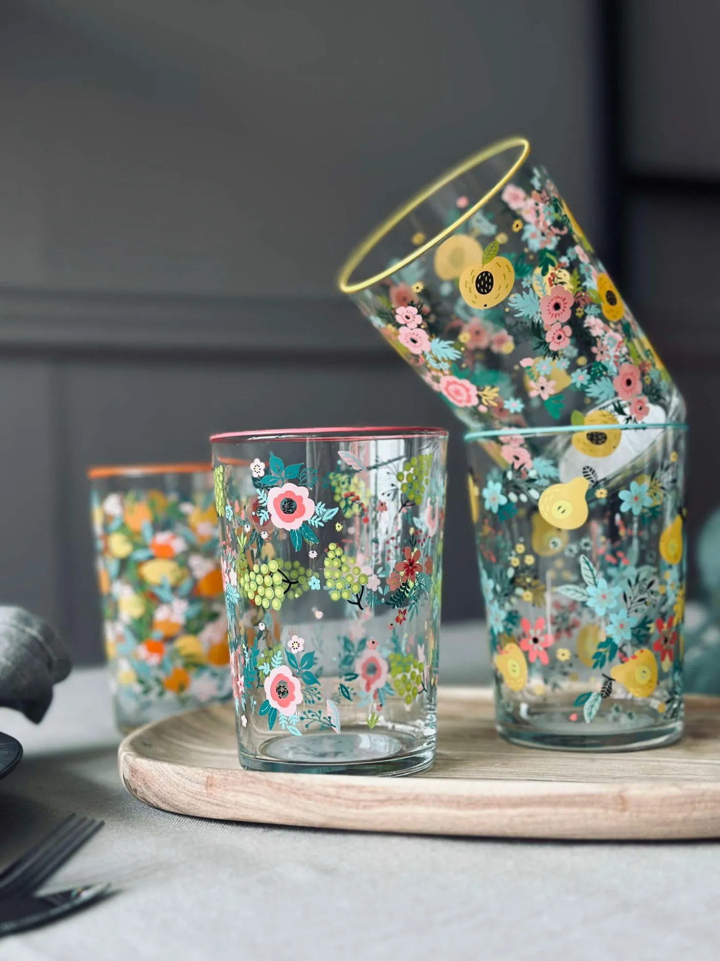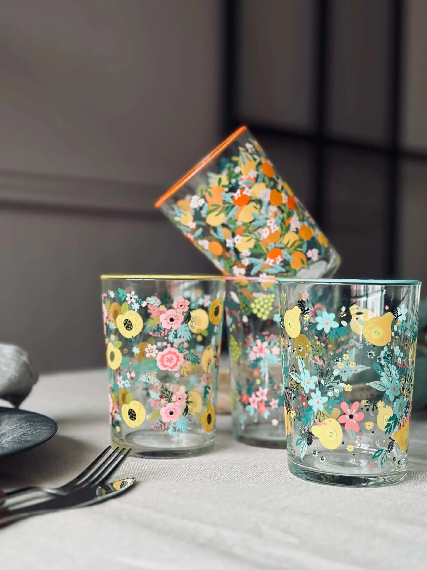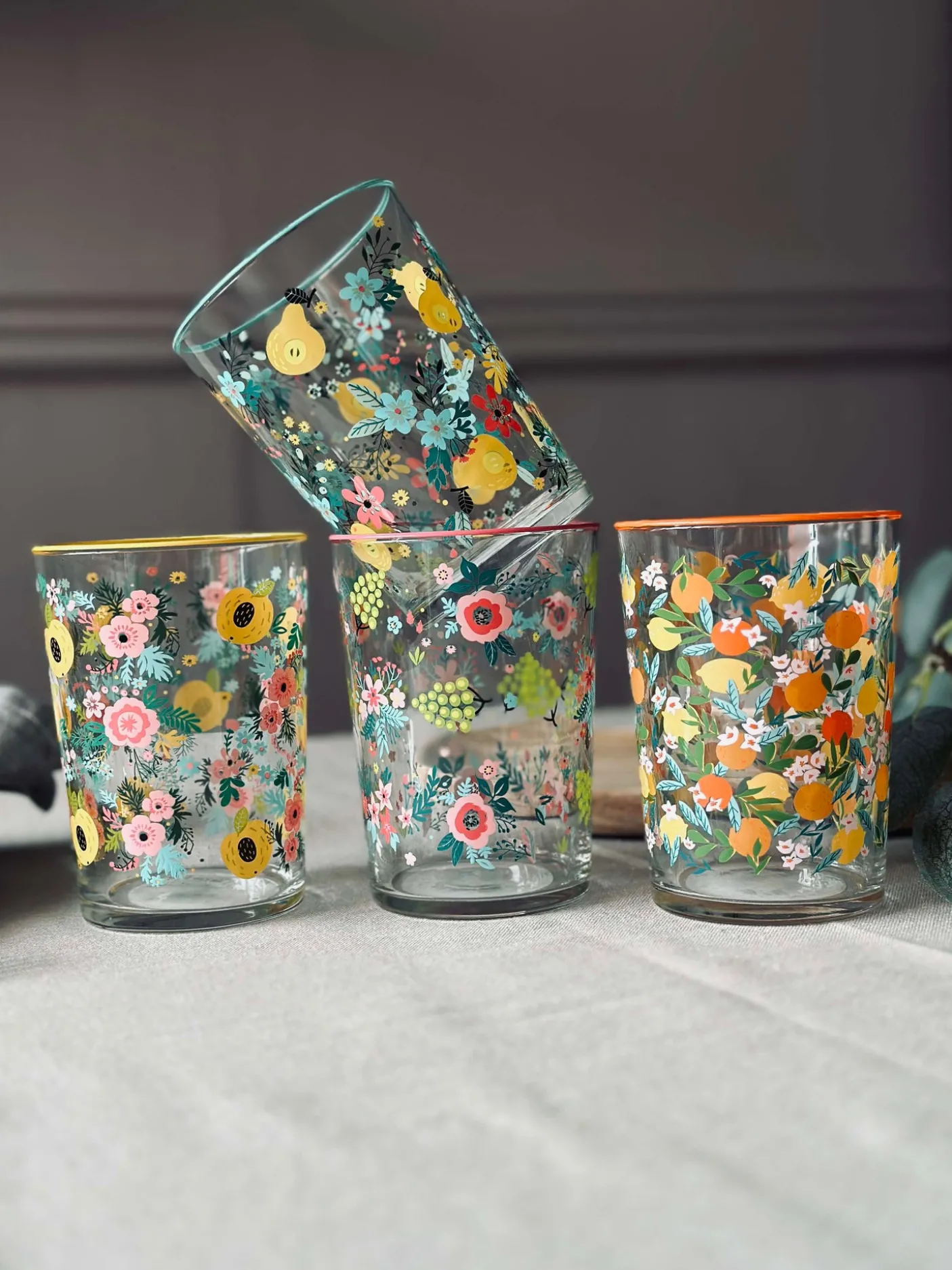 Flot drikkeglas i flora mix.