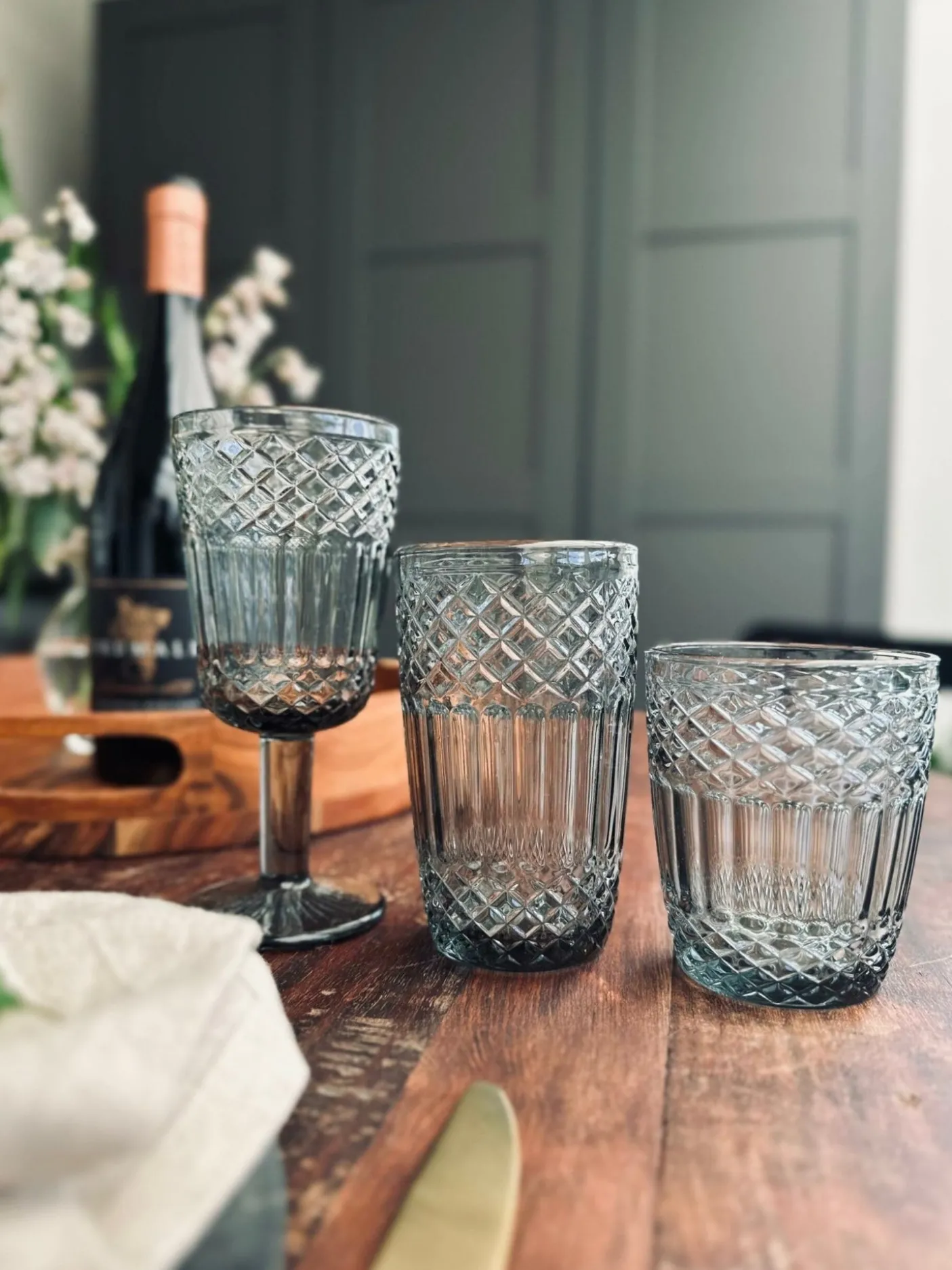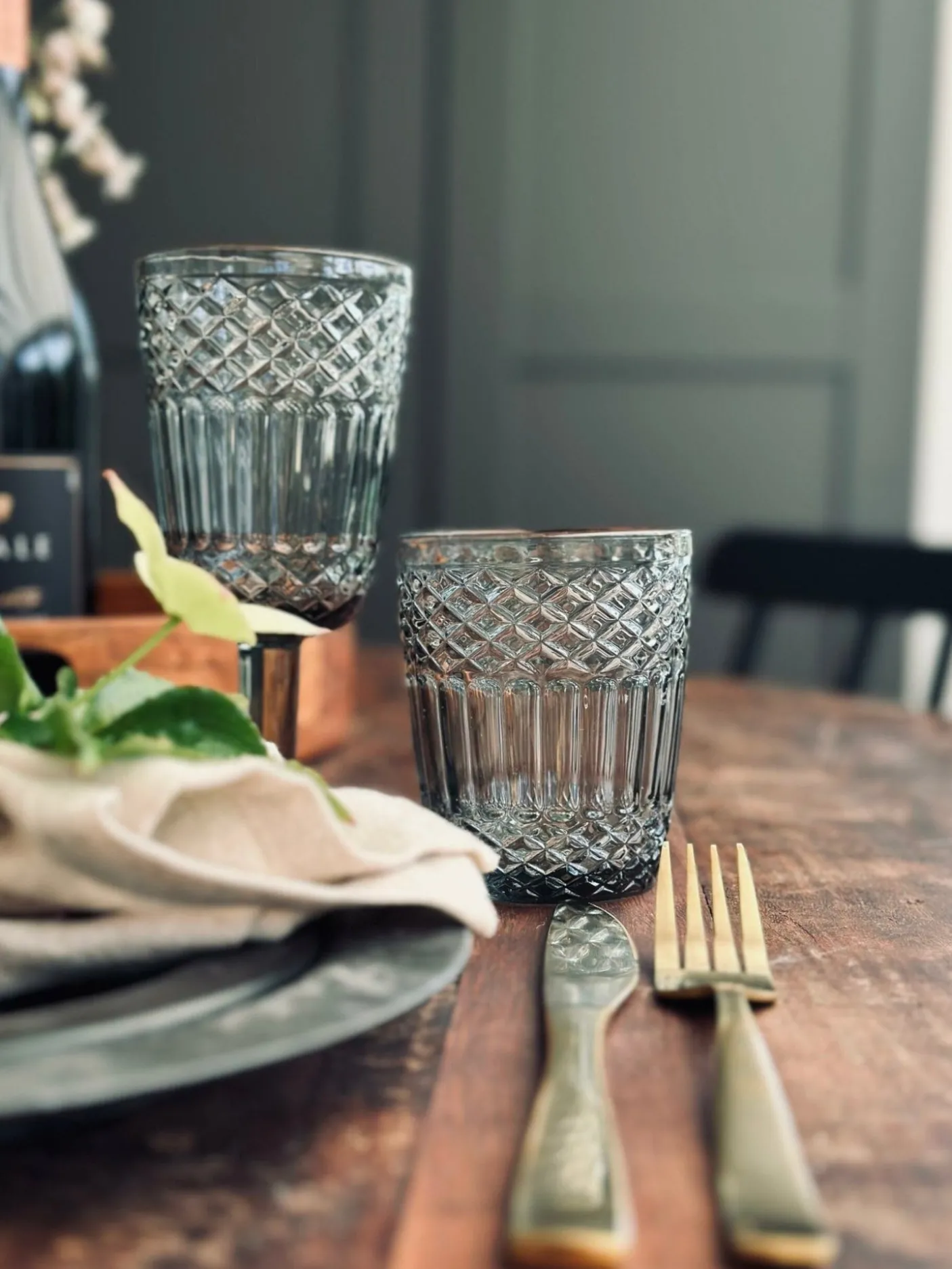Flot drikkeglas i grå / røgfarvet glas.