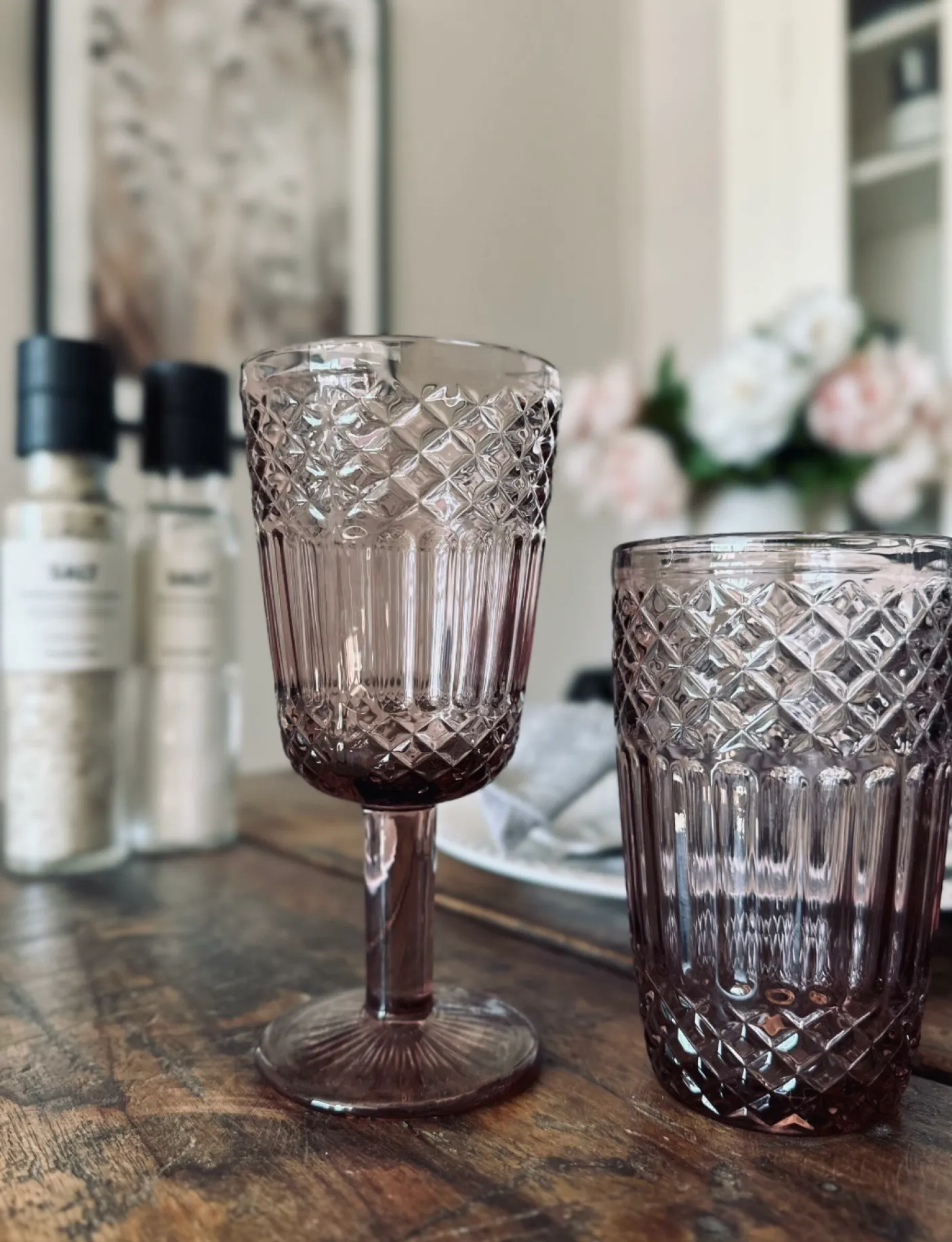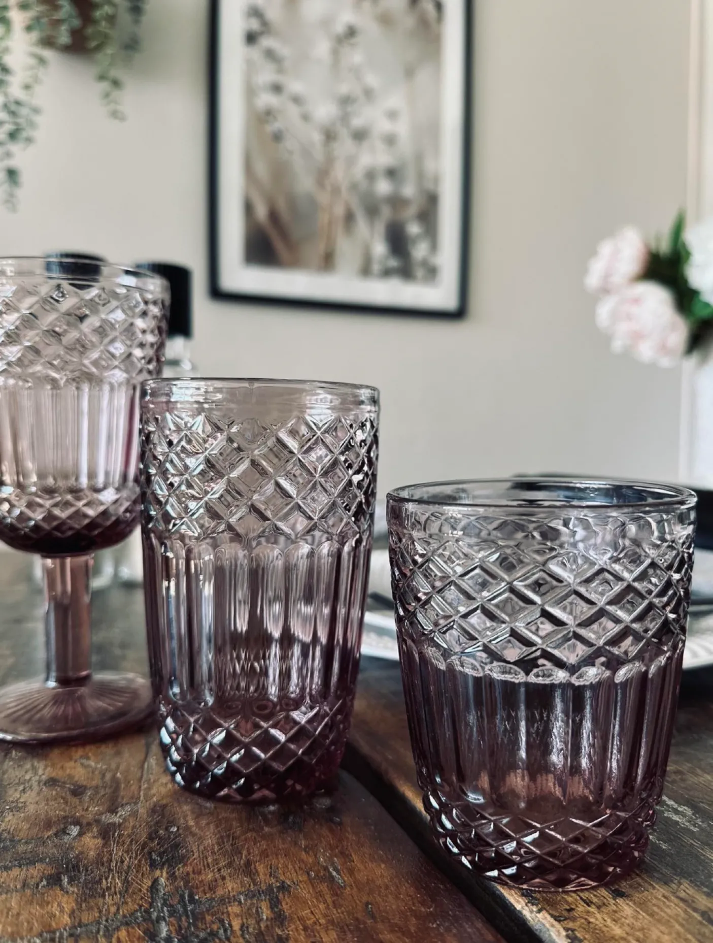 Flot drikkeglas i old rose glas.
