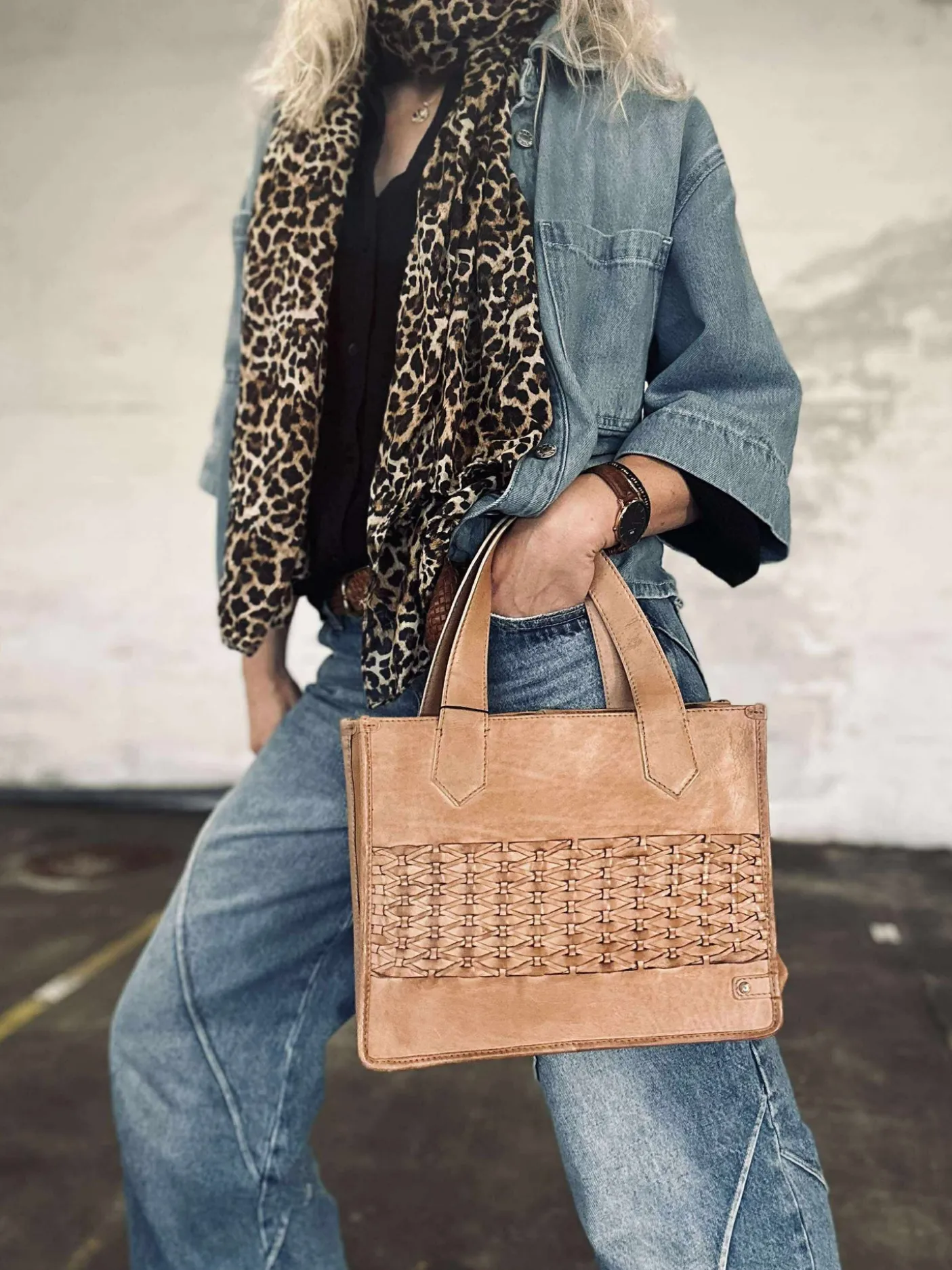 Denne håndtaske kombinerer tidløs elegance med et smukt håndflettet design, der giver tasken et eksklusivt og raffineret udseende. Tasken er fremstillet i 100% kalveskind, som både sikrer en luksuriøs følelse og langvarig holdbarhed.