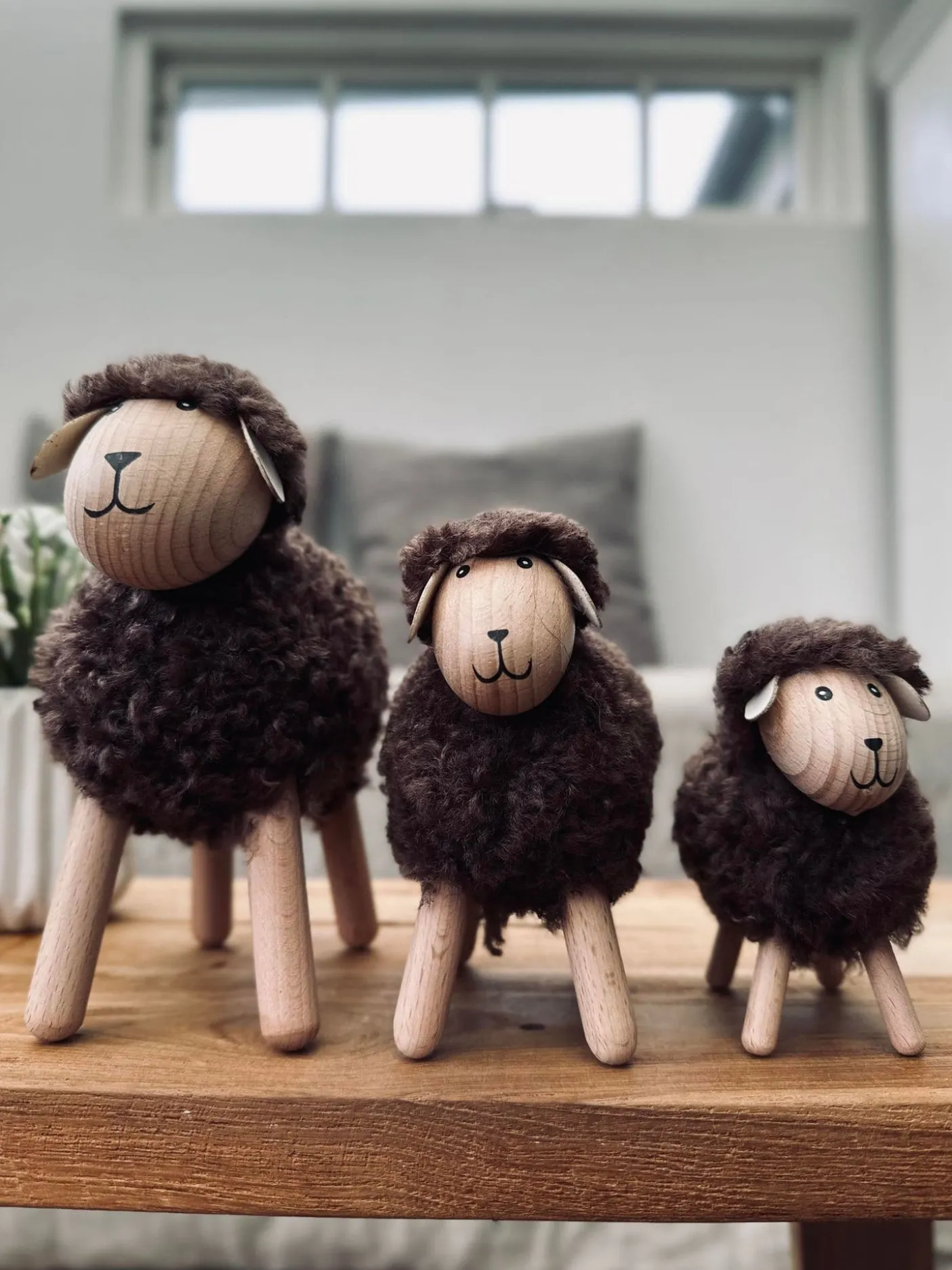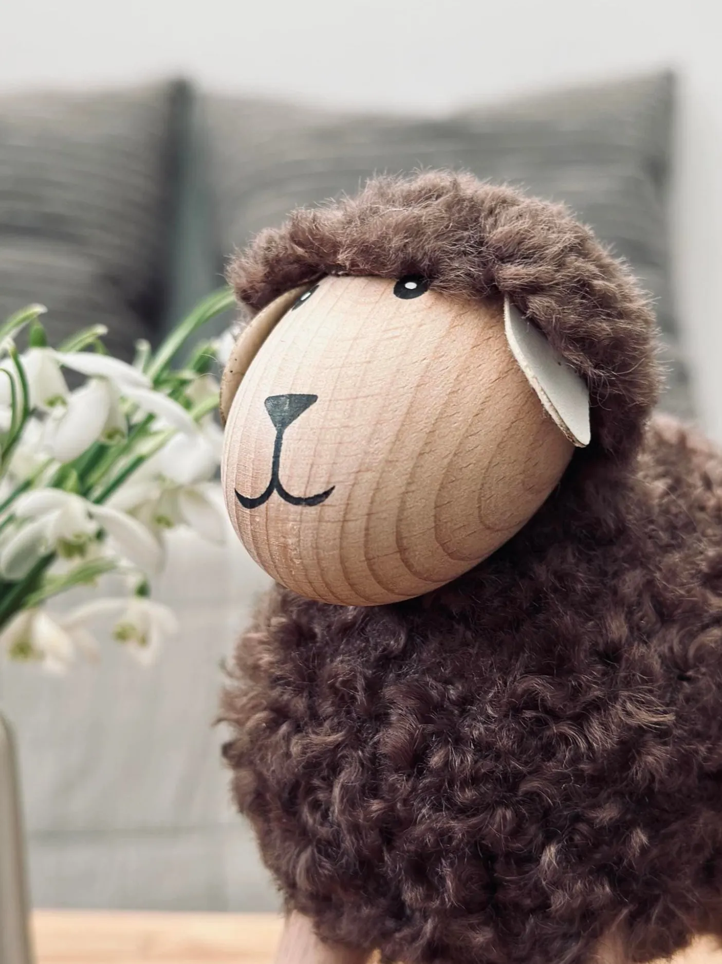 Super fint får i natur farver, massiv bøg.