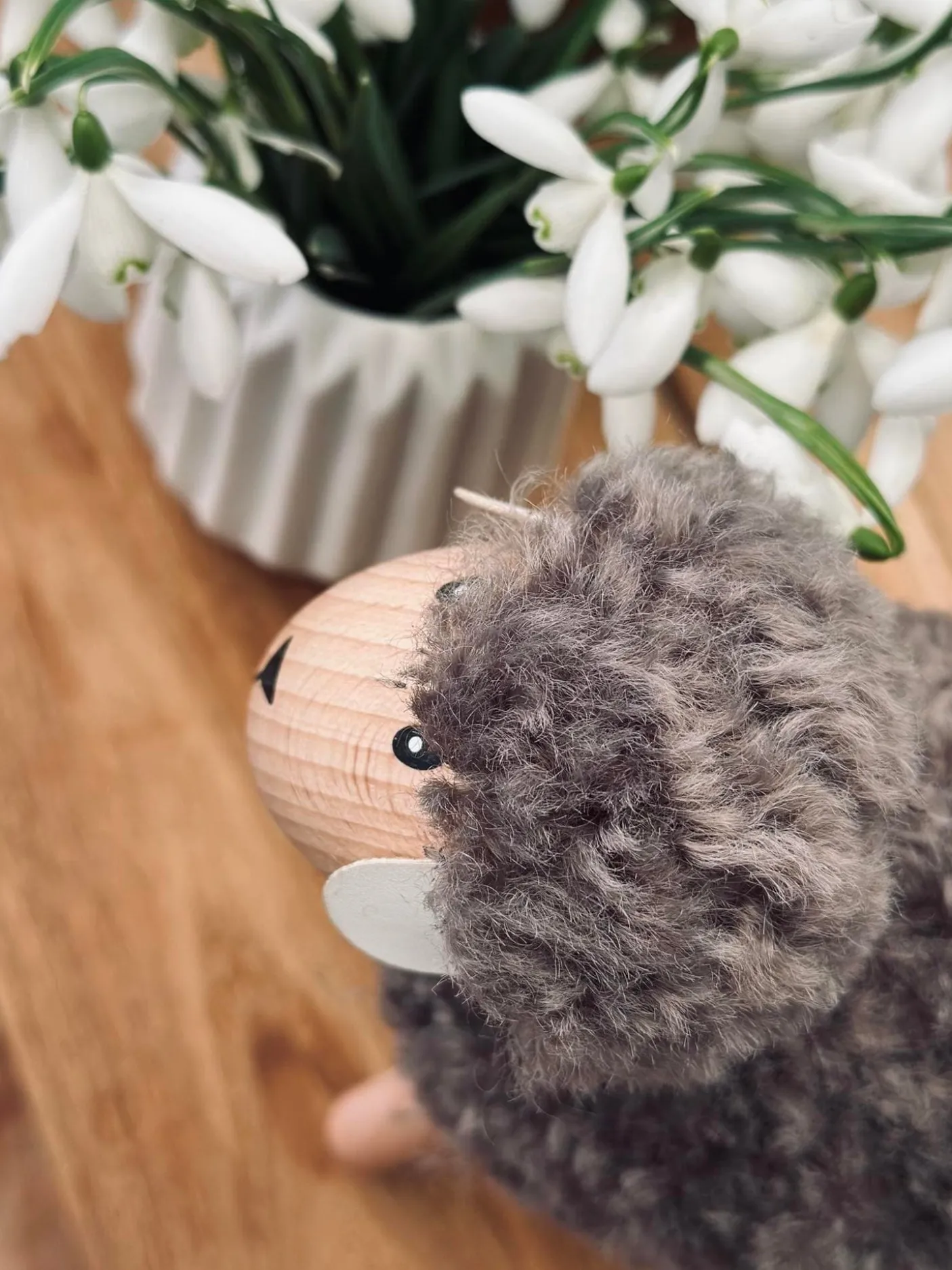 Super fint får i natur farver, massiv bøg.