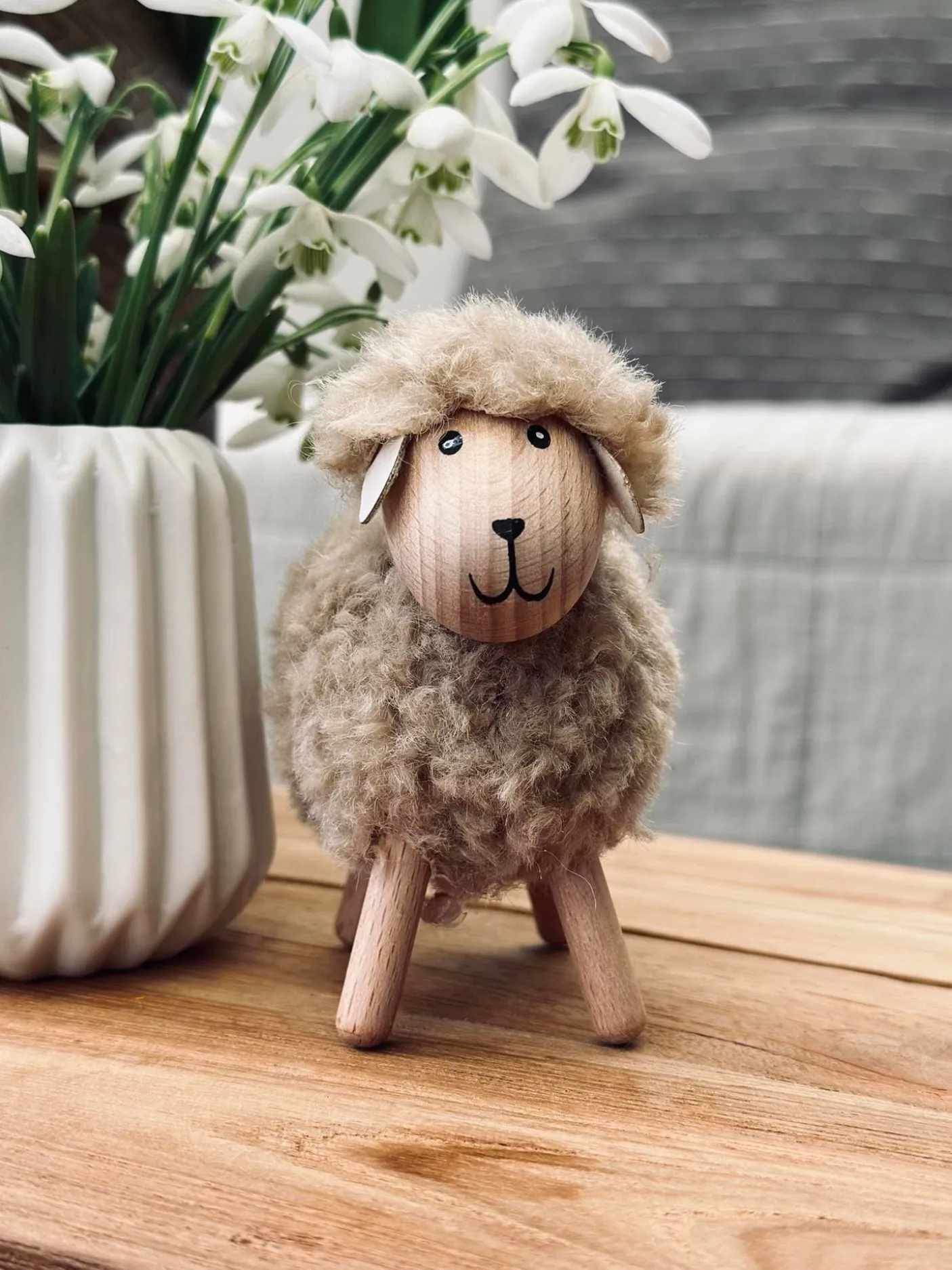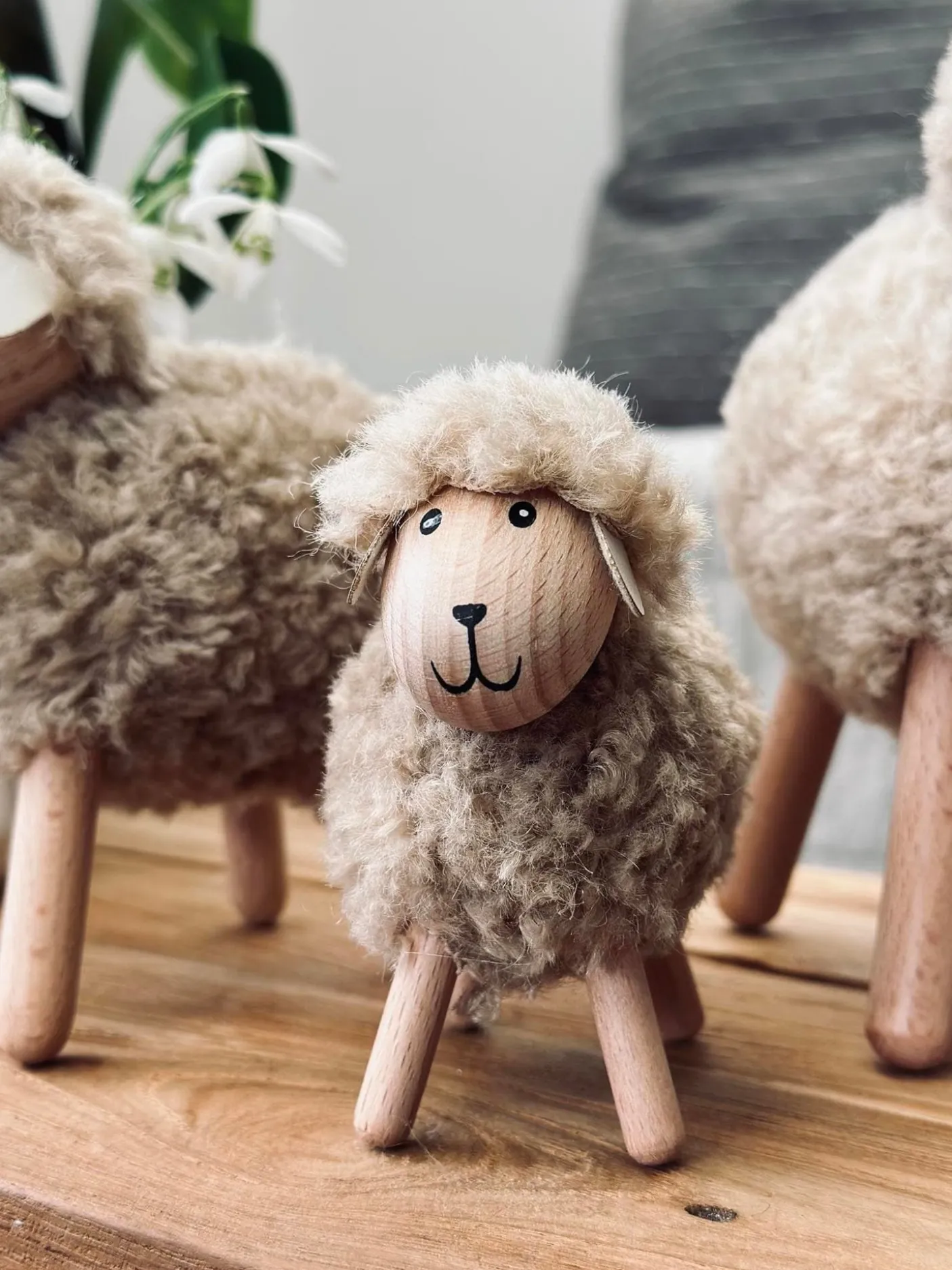 Super fint får i natur farver, massiv bøg.