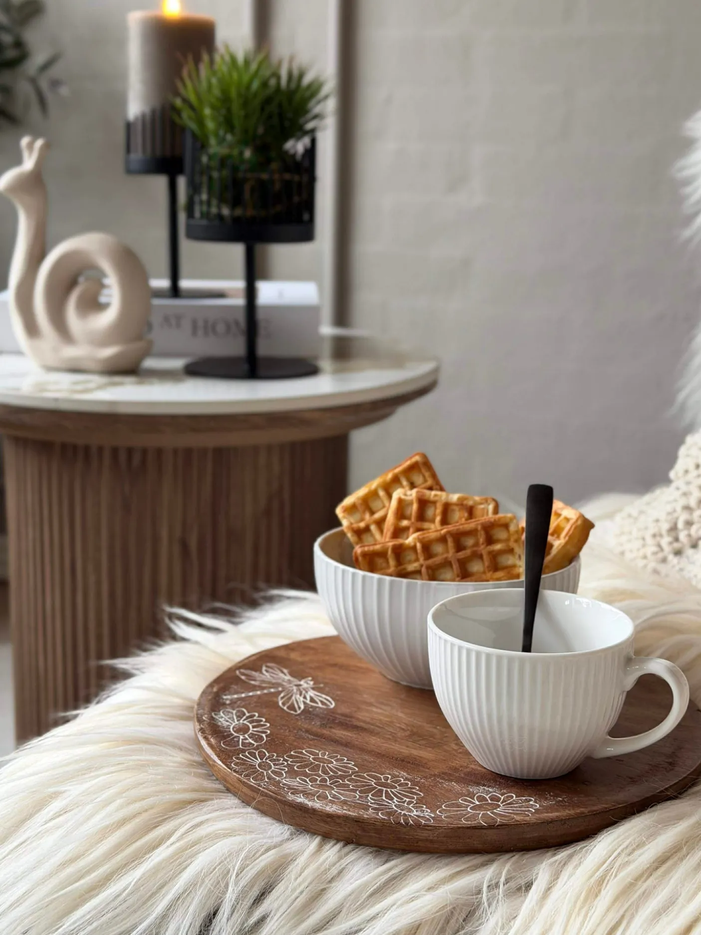 Fad i mangotræ er et træfad til præsentation og servering af retter. Det er fremstillet i mangotræ og har en hvidtrykt overflade, hvilket giver et roligt og afdæmpet udtryk. Med sin særlige finish tilfører fadet et subtilt strejf af karakter til spisebordet eller buffetopstillingen.