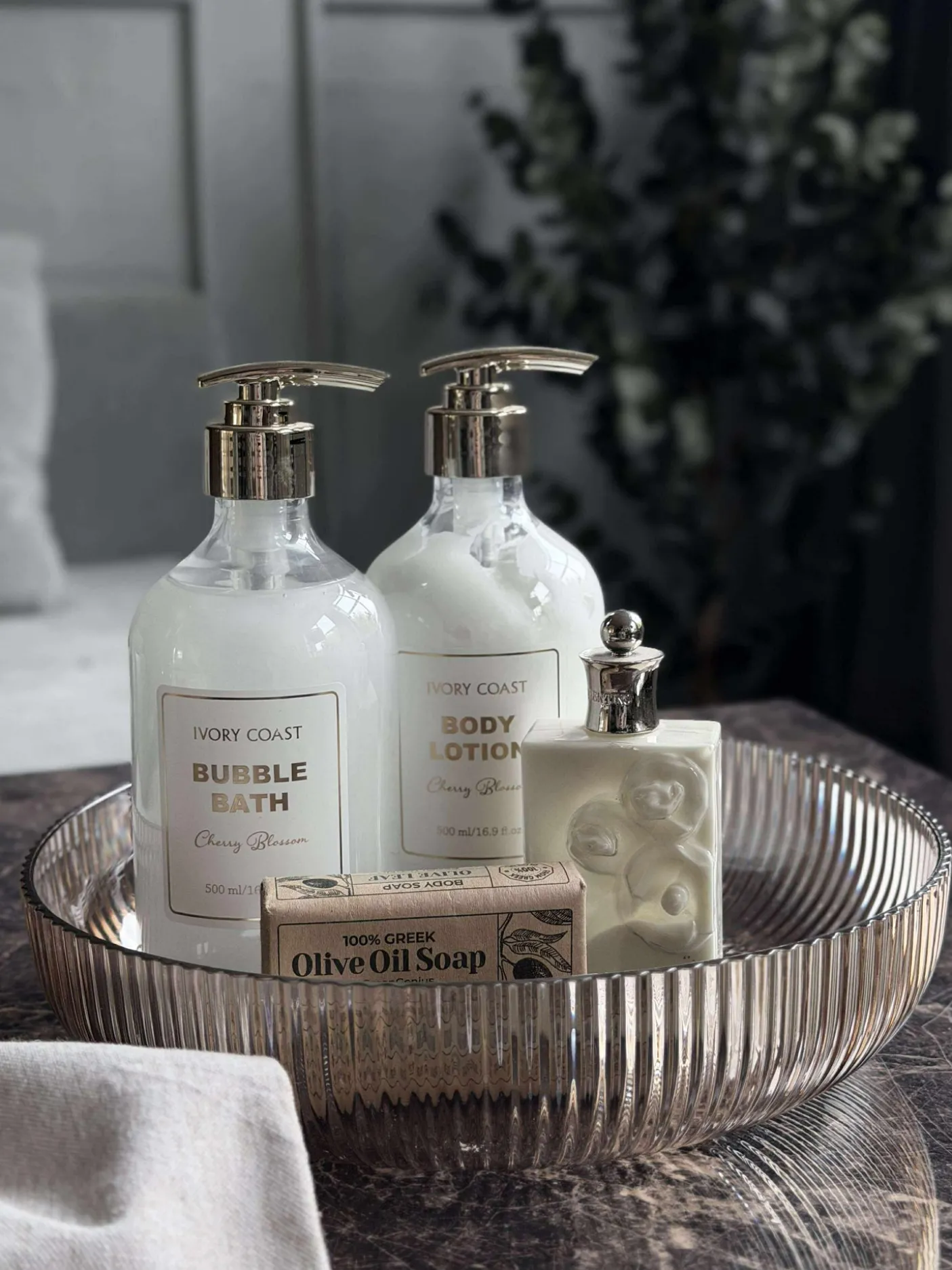 Stilfuld fad til dekoration eller fødevarer.