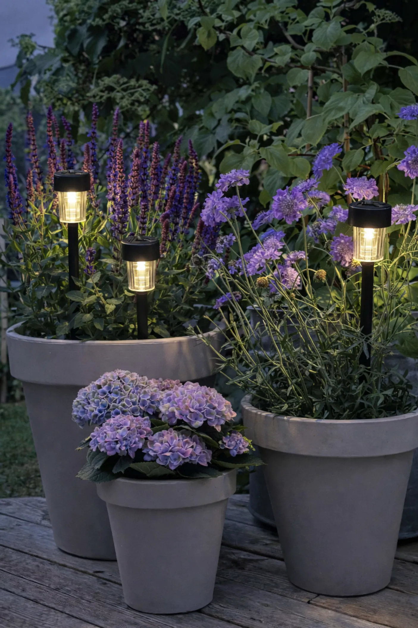 Lysene er nemme at placere i blomsterkrukker da der medfølger jordspyd.