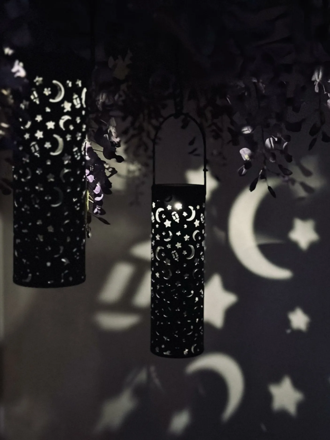 Lyser med effekt af stjerner og måner, når mørket falder på.