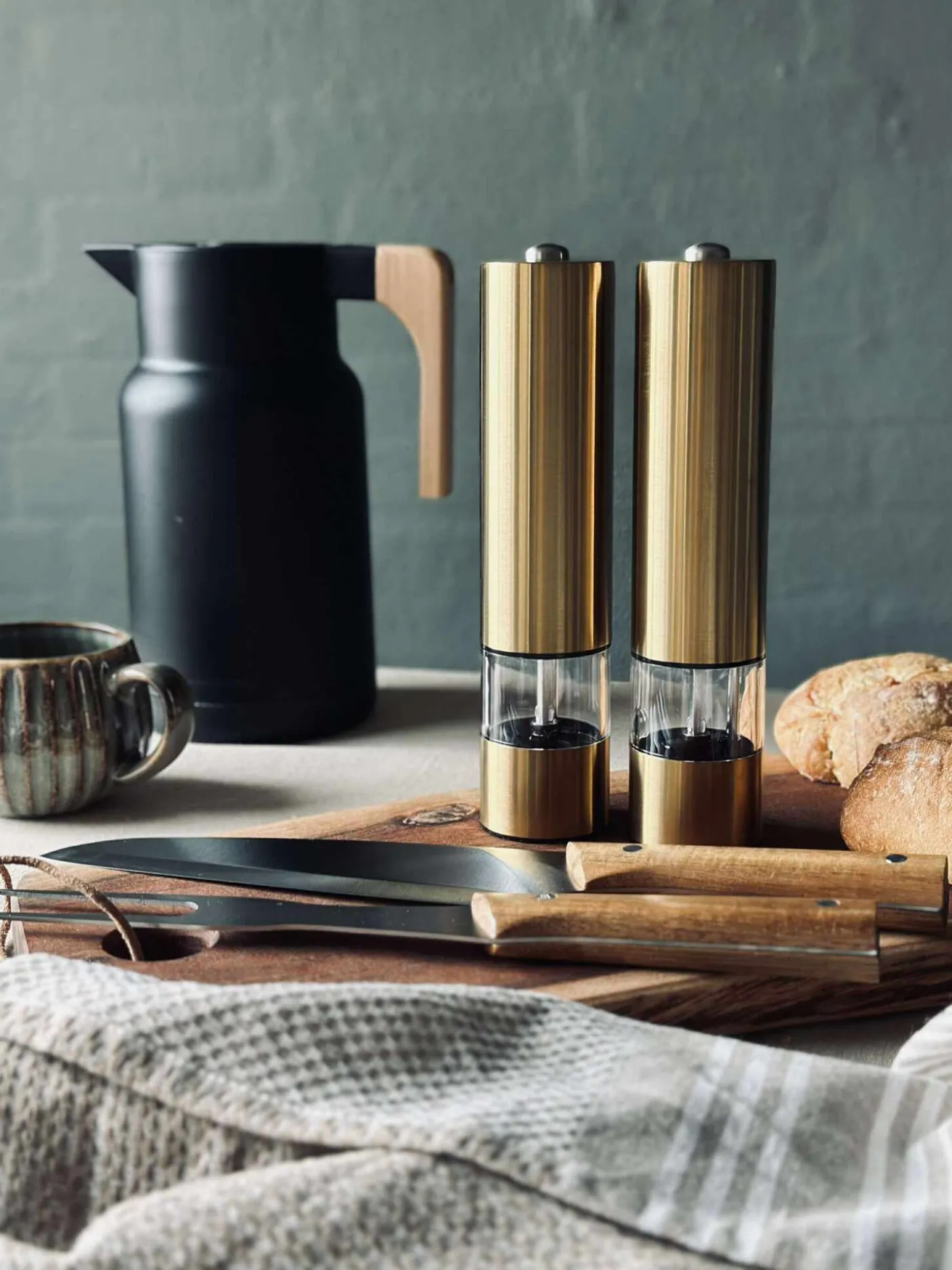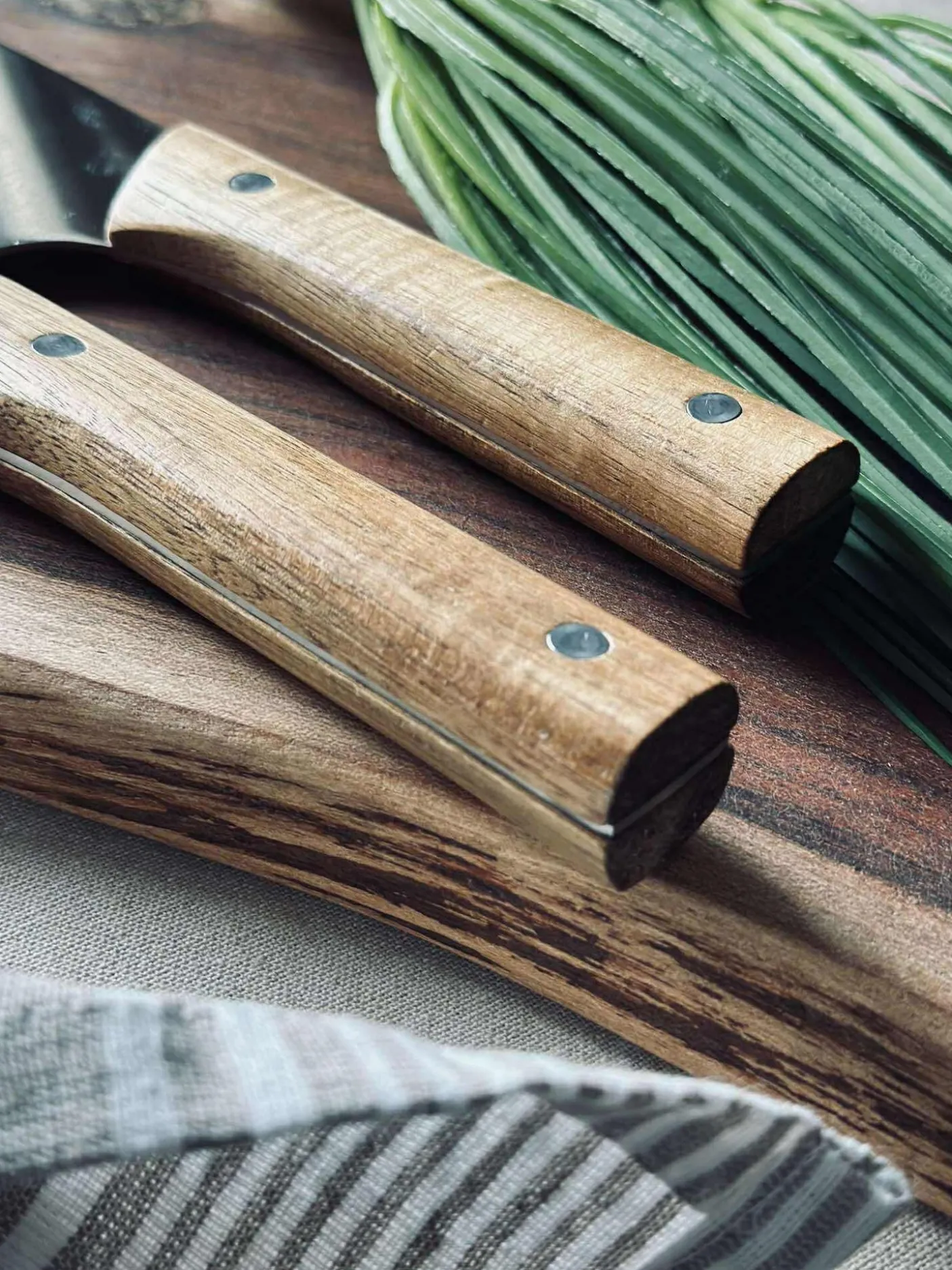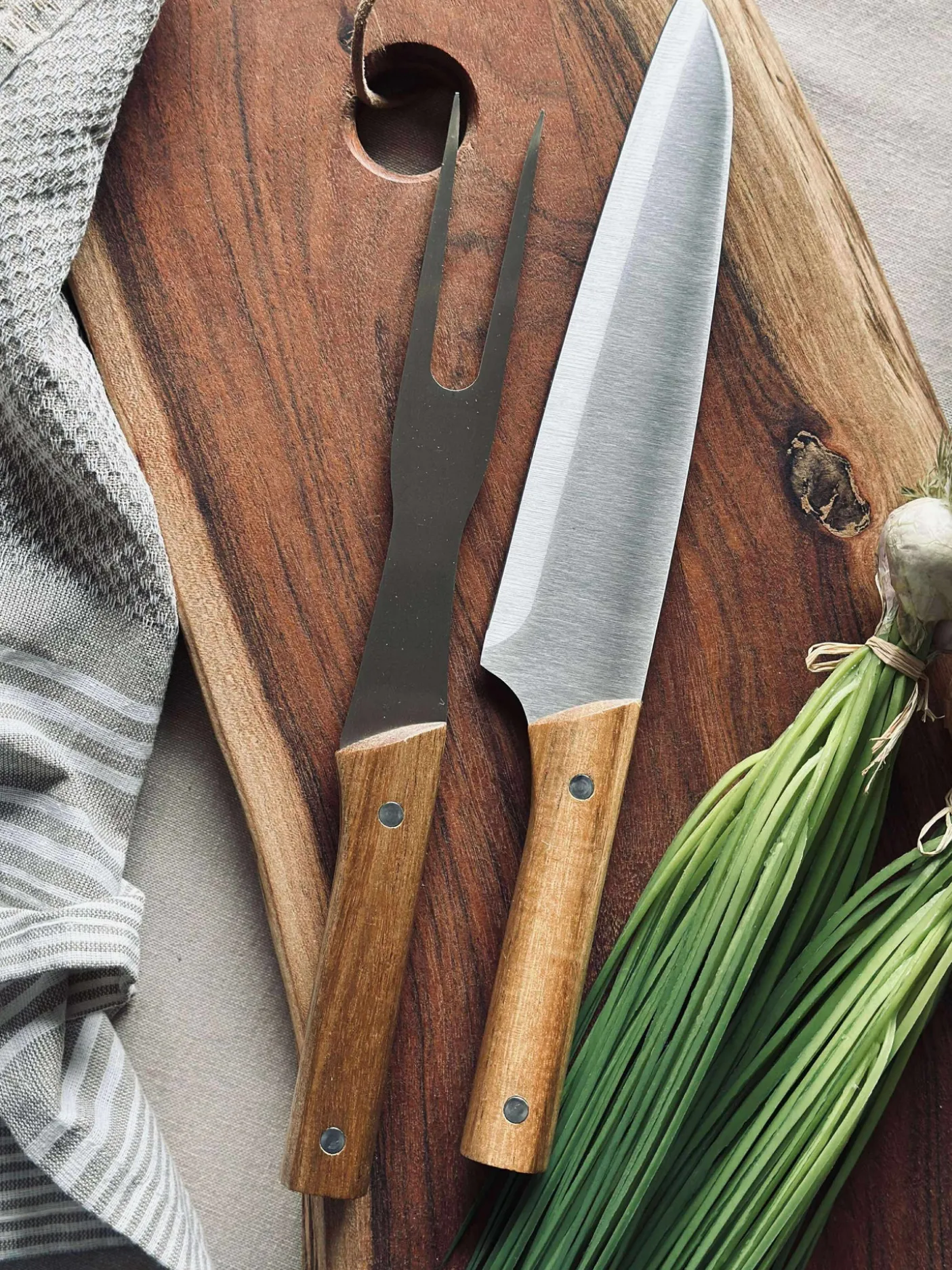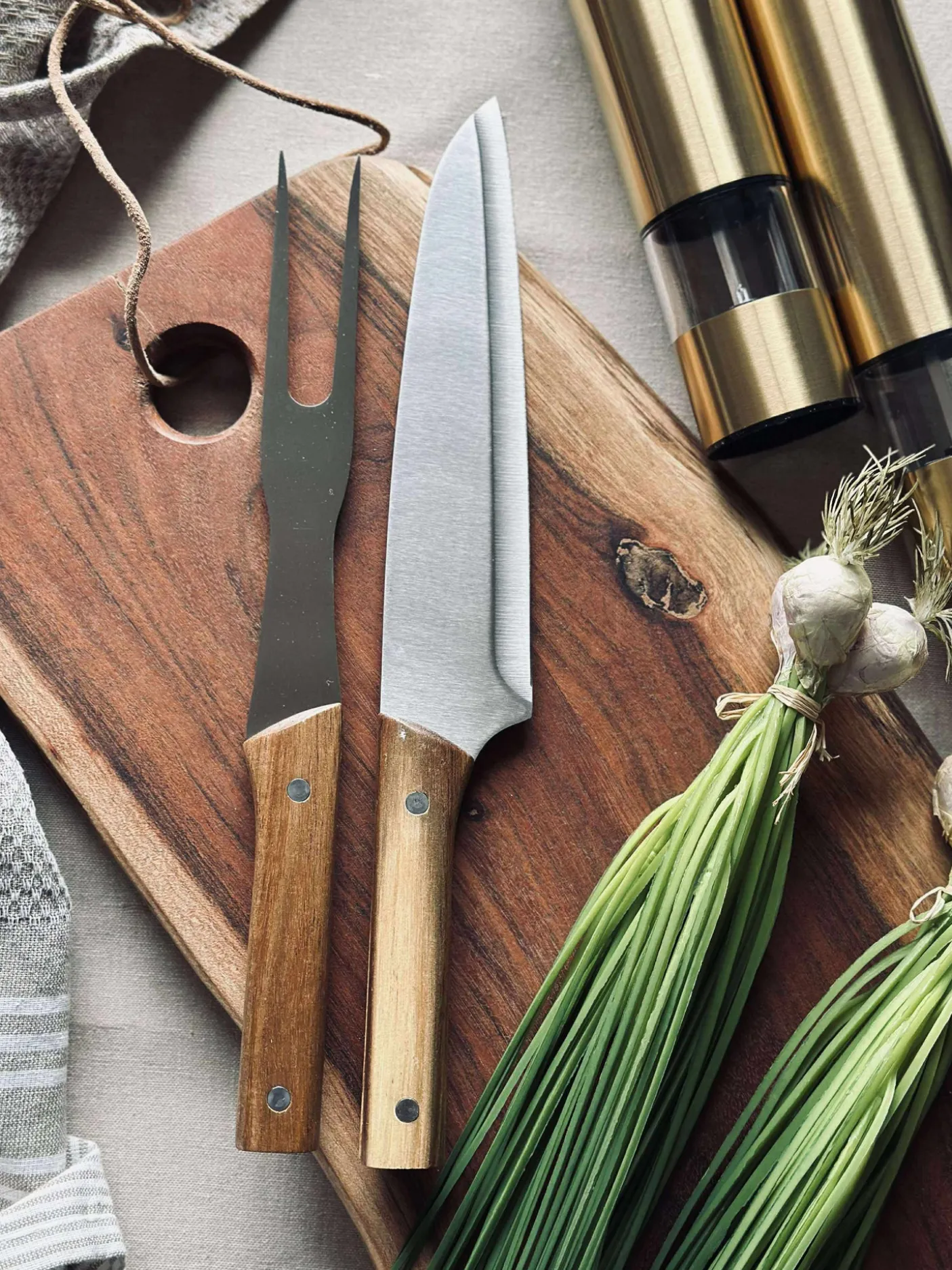 Rustfri stål og akacietræ håndtag