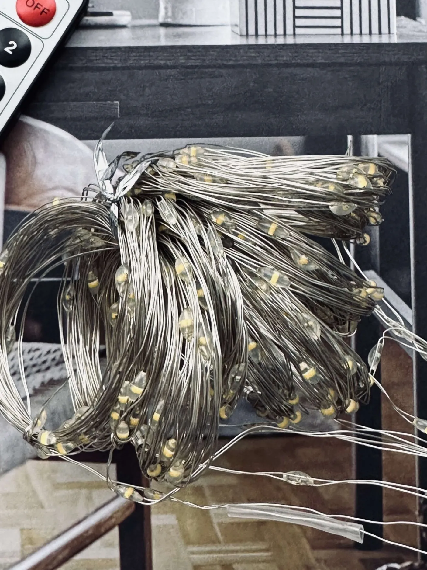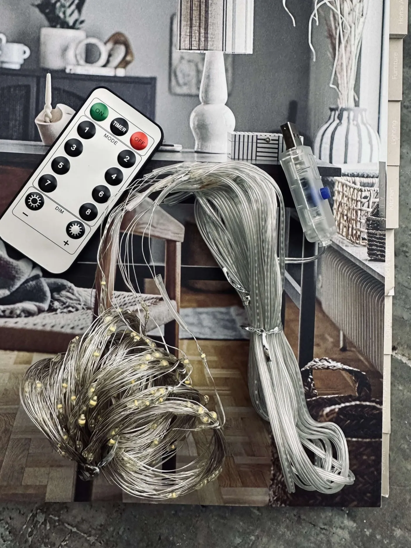 Gardinlys 3 x 3 meter med fjernbetjening.