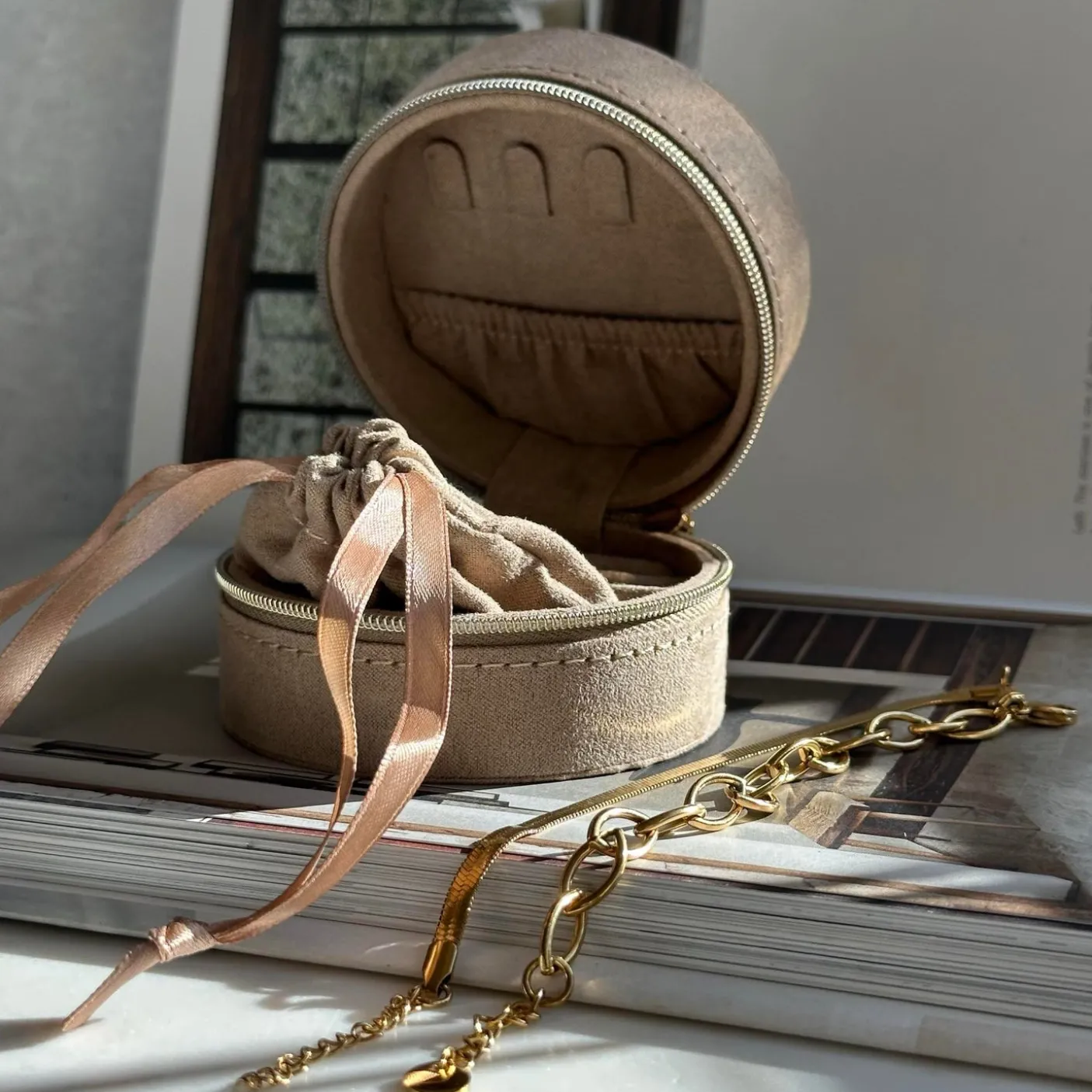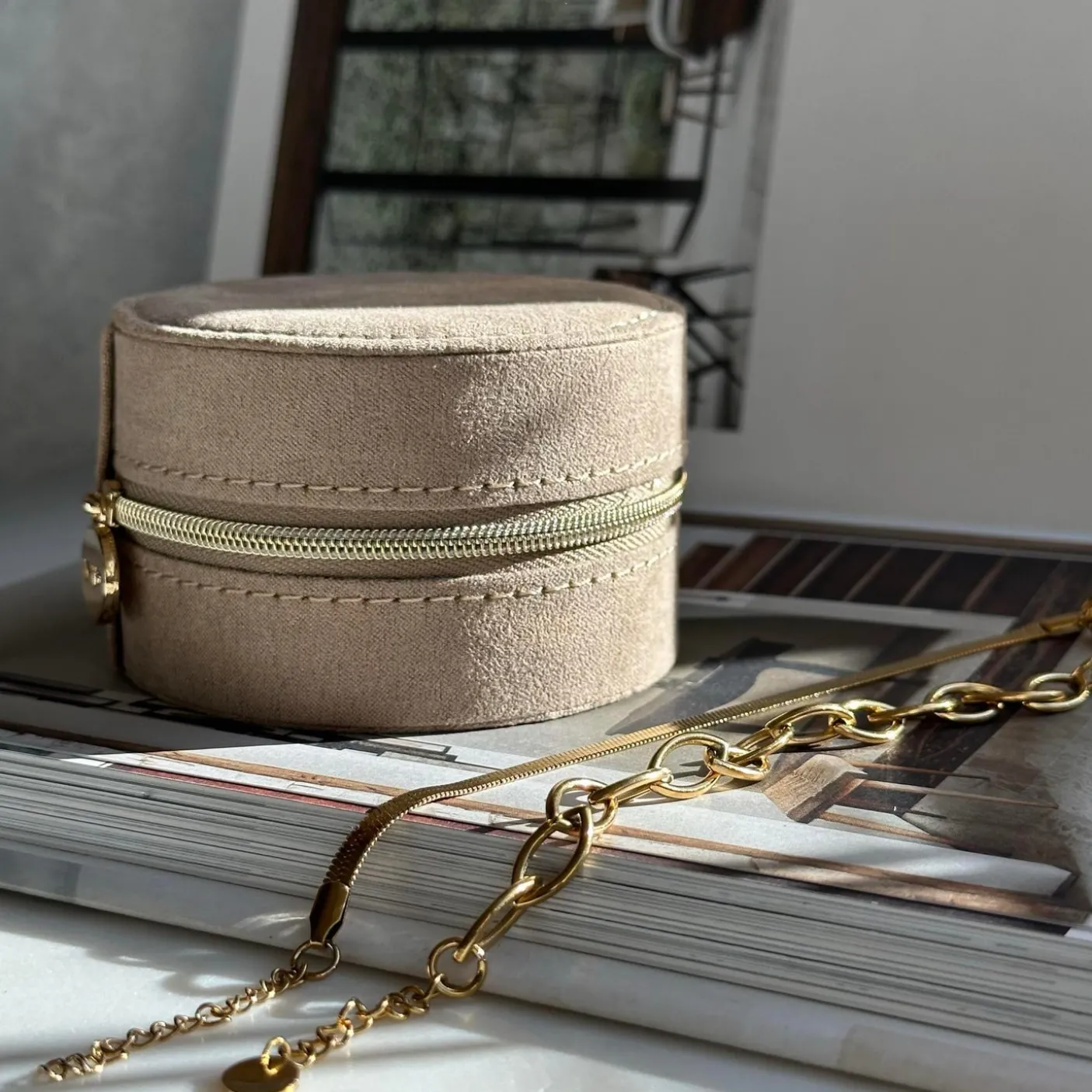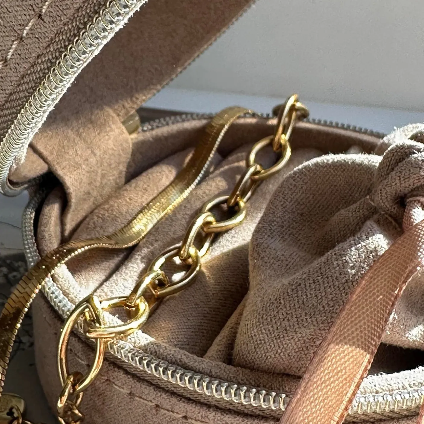 - Et gave-sæt udover det sædvanlige – Du får et smukt rejse-smykkeskrin og du får 2 smukke armbånd og så får du oven i købet en lille overraskelse gemt i den lille pose inde i smykkeskrinet.