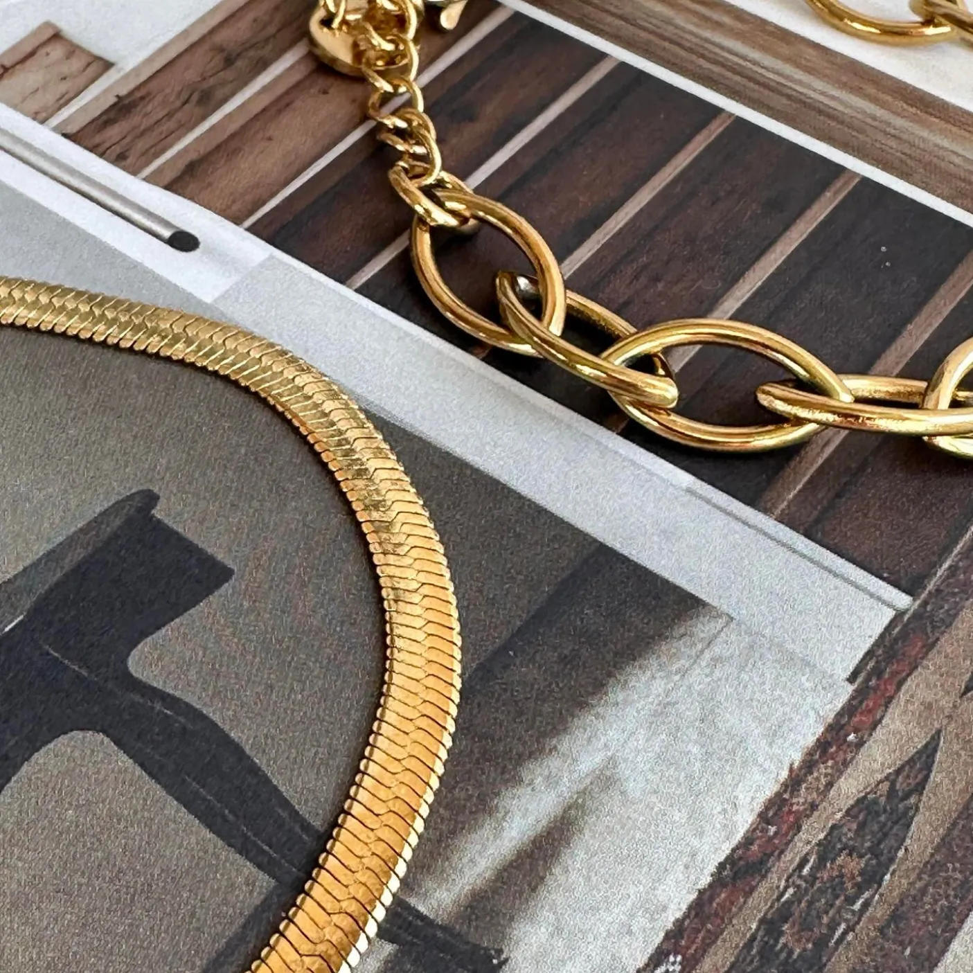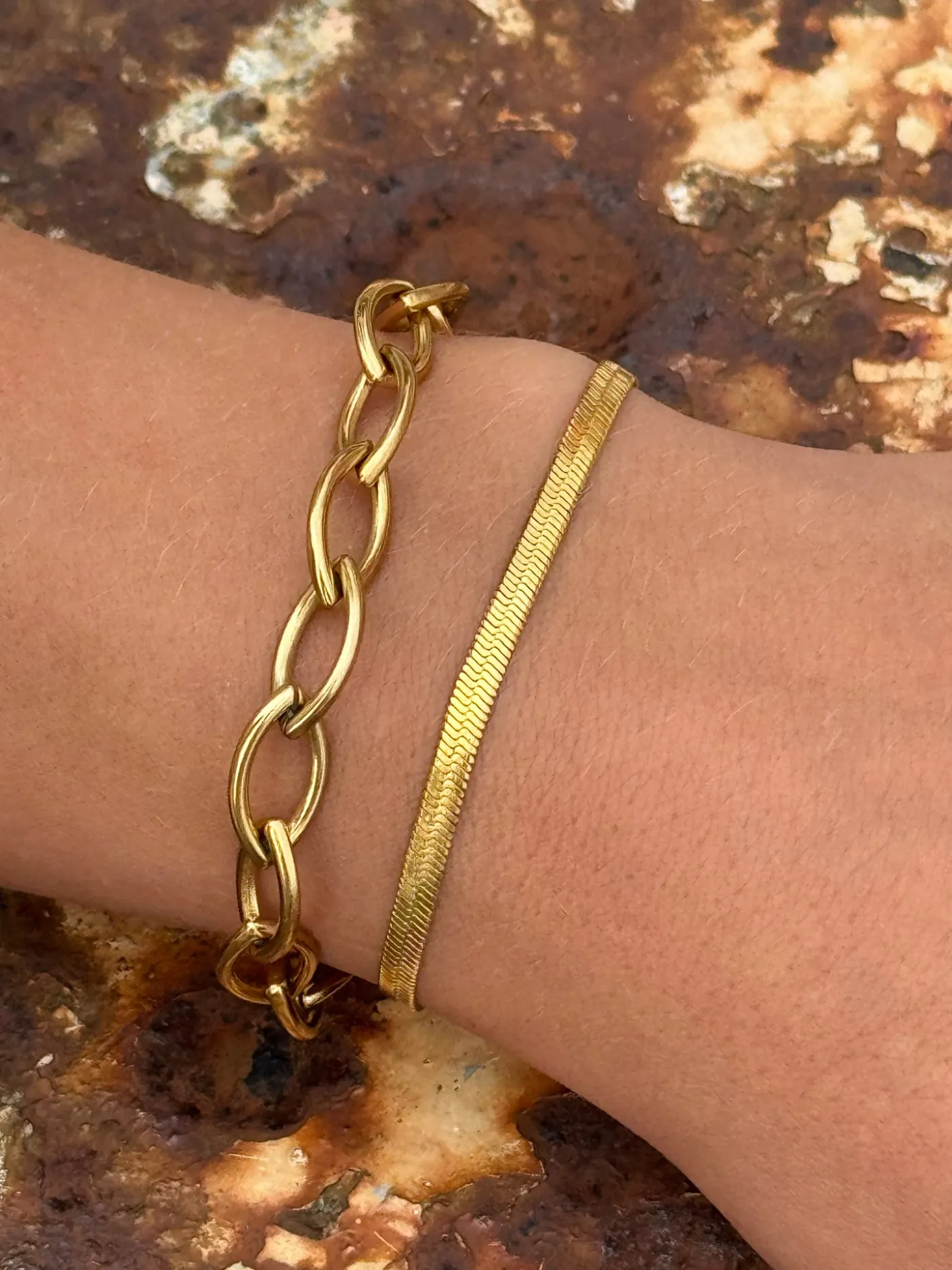 - Armbåndene er begge udført i rustfrit stål – forgyldt med 18K guld