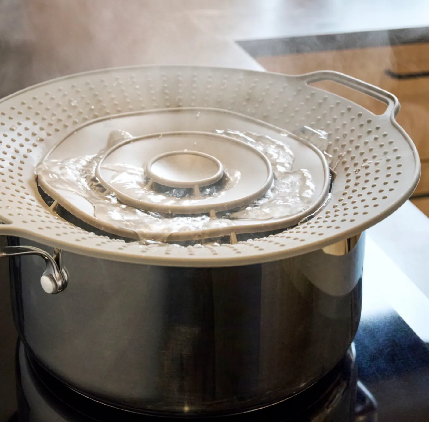 Låget fungerer ved at dampen åbner for lågets huller, så det kan slippe op og undgå at koge over. Overskydende vand fanges i låget som en si. Låget kan ligeledes også bruges som en dampkoger til fx grøntsager.