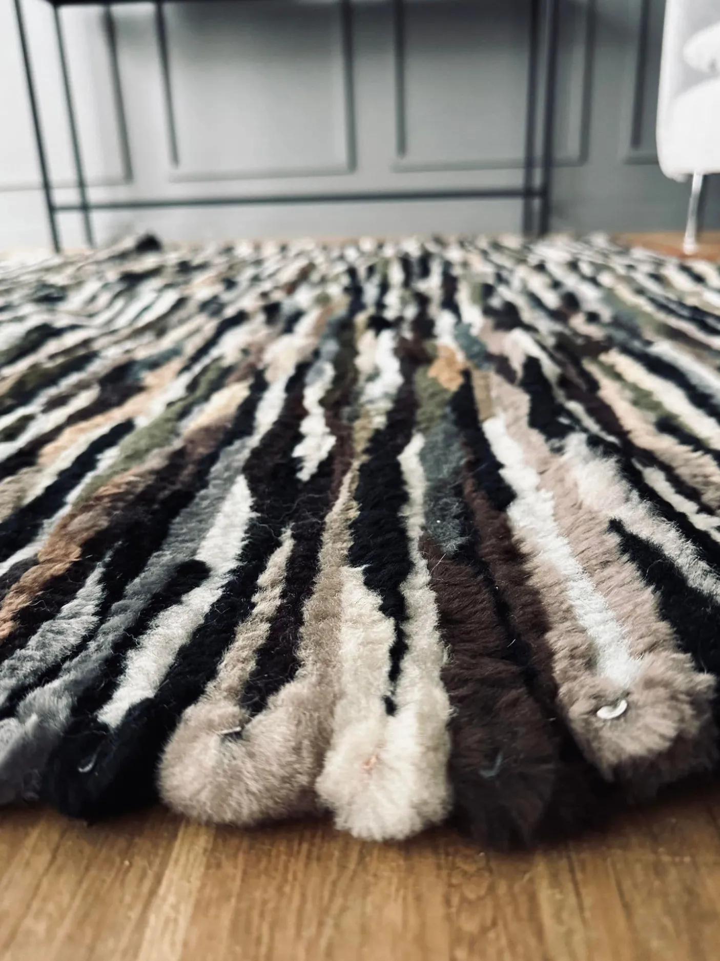 Ultra lækkert gulvtæppe i håndsyet lammeskind.