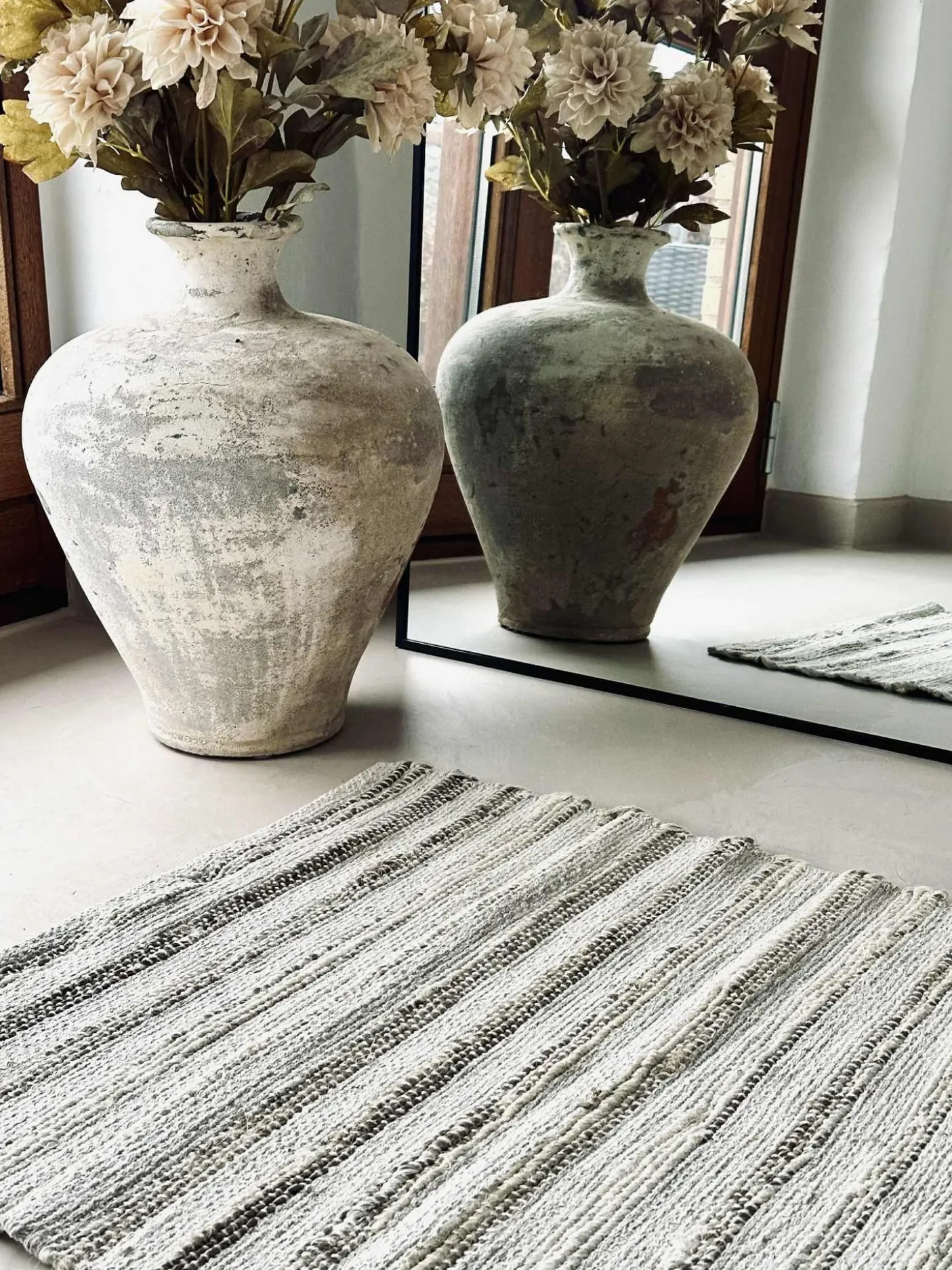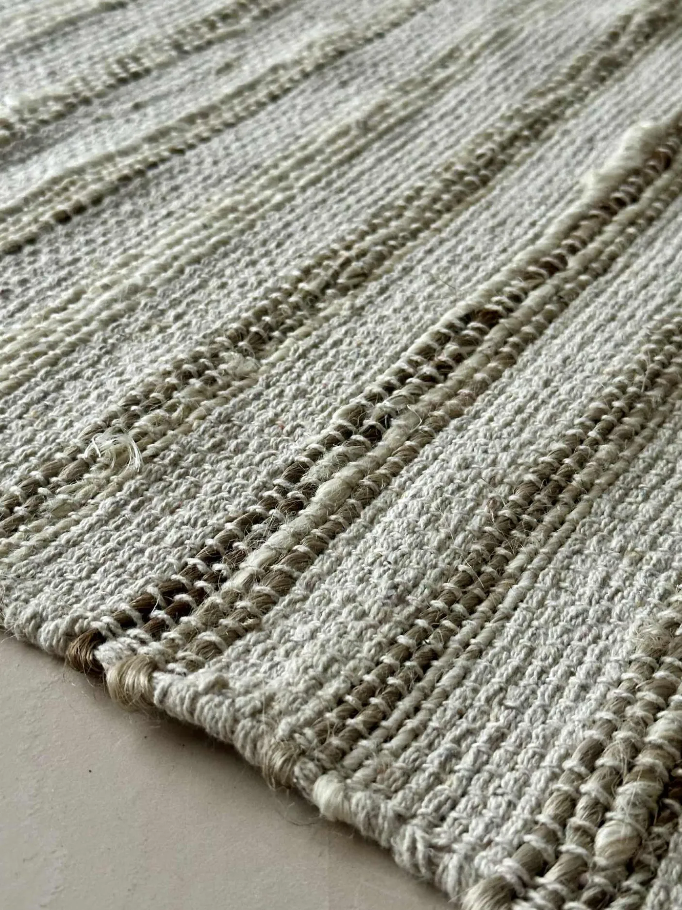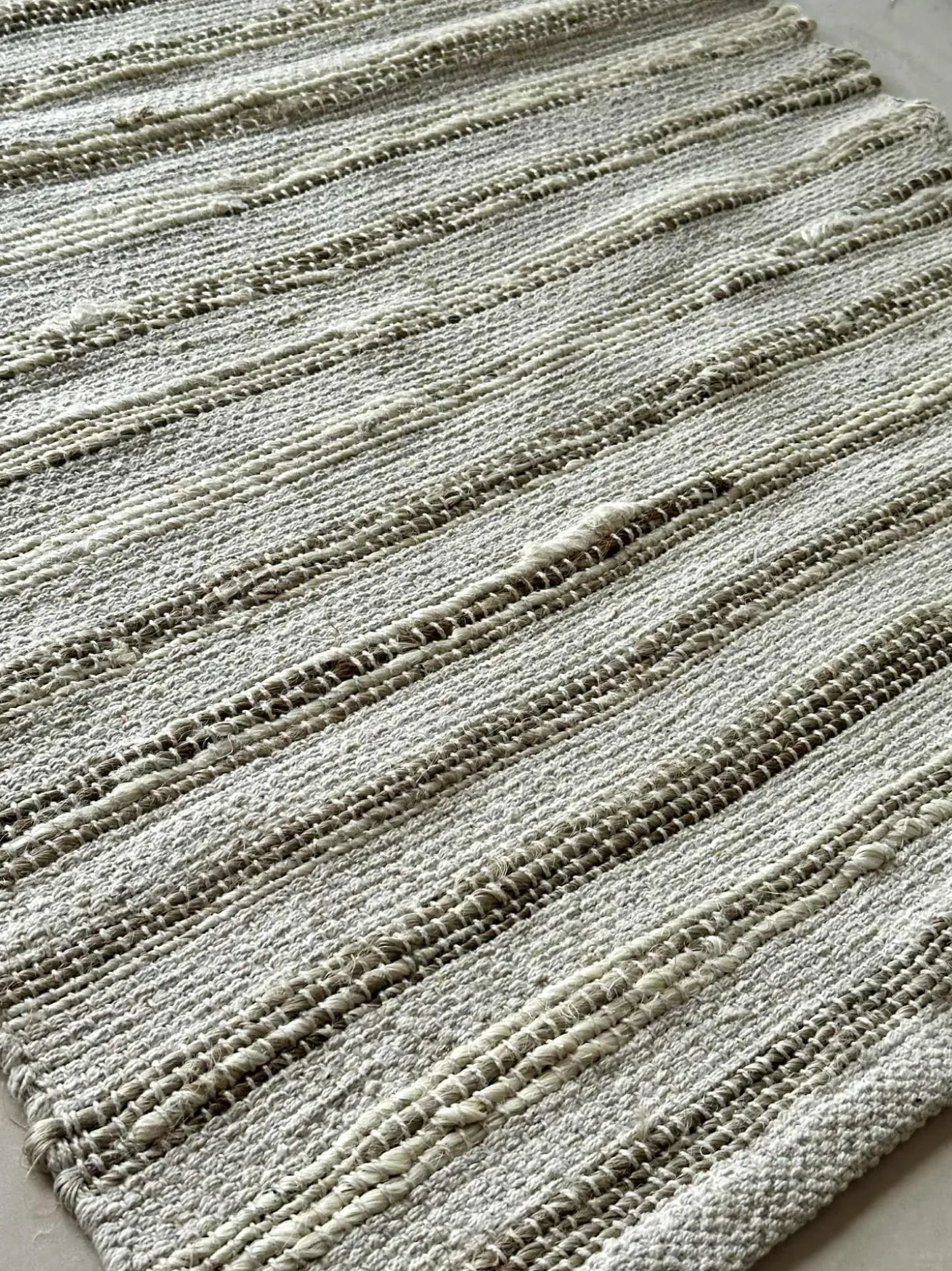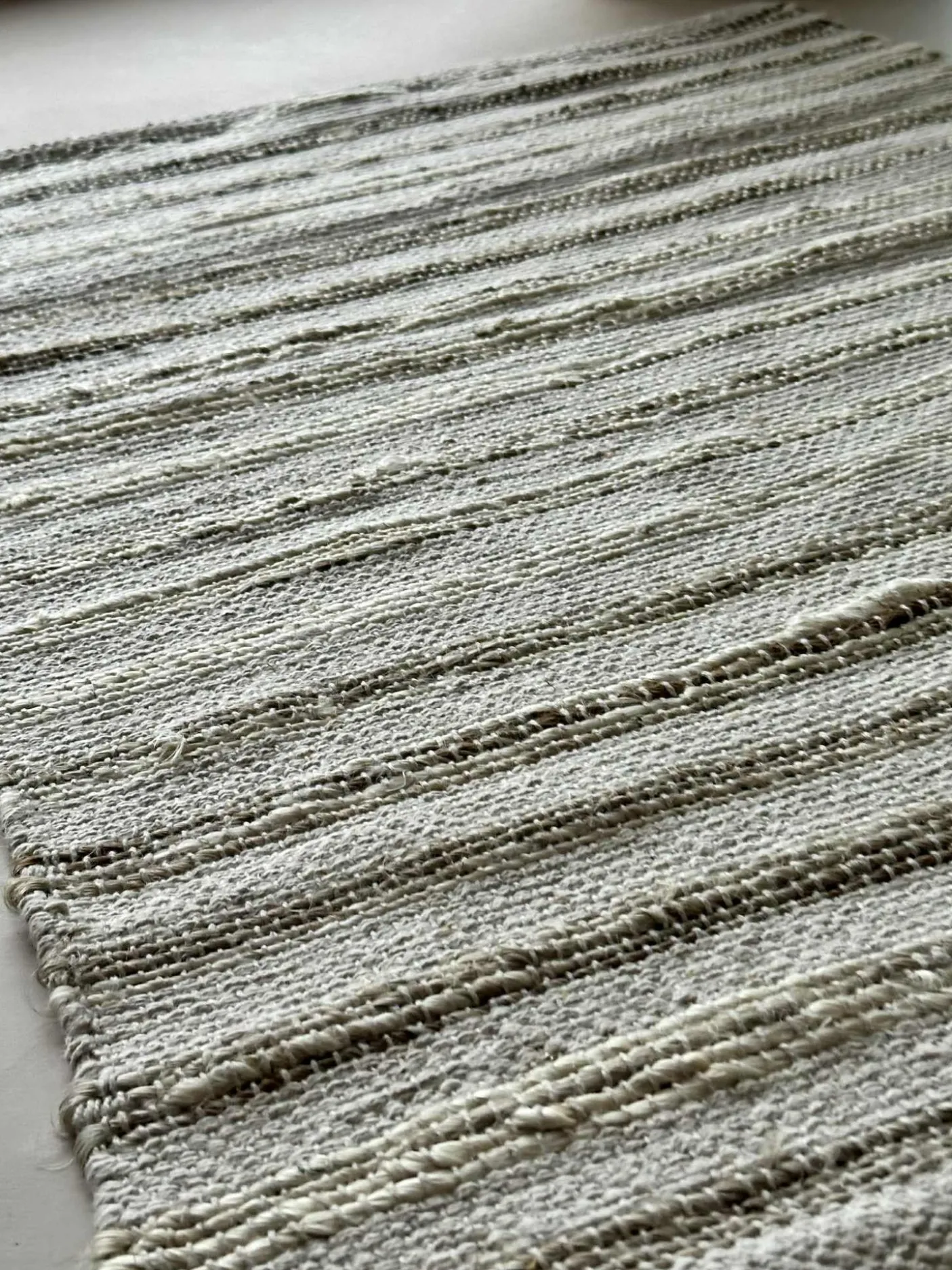 Dørmåtte / gulvtæppe i flettet jute og bomuld.