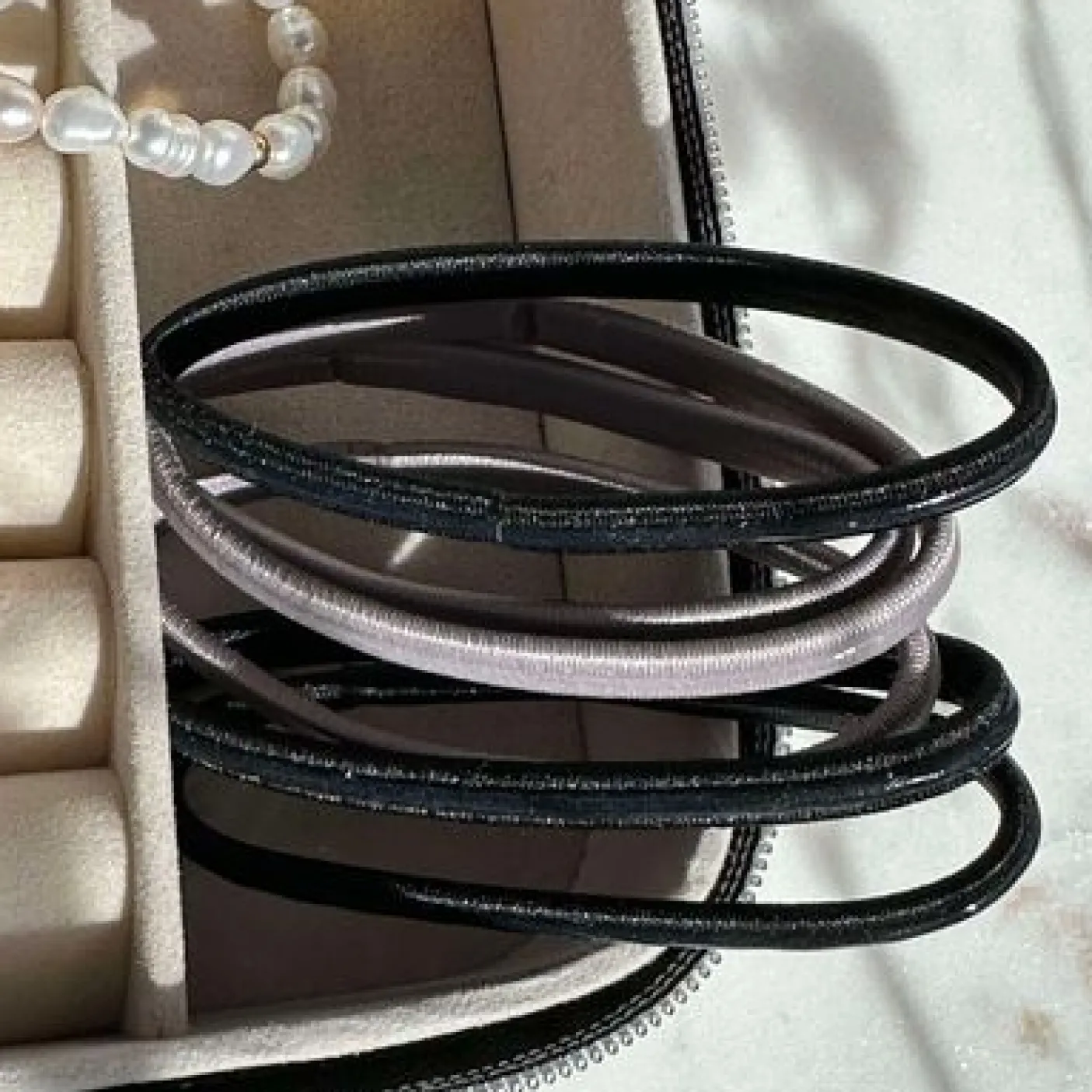 Hårelastikker Black / Grey – Anti-skrid er et sæt elegante hårelastikker til hverdagen. De er ensfarvede og lavet i nylon, så du får et enkelt udtryk, der passer godt til mange frisurer. Et praktisk valg, når håret hurtigt skal samles i en rolig og ren styling.