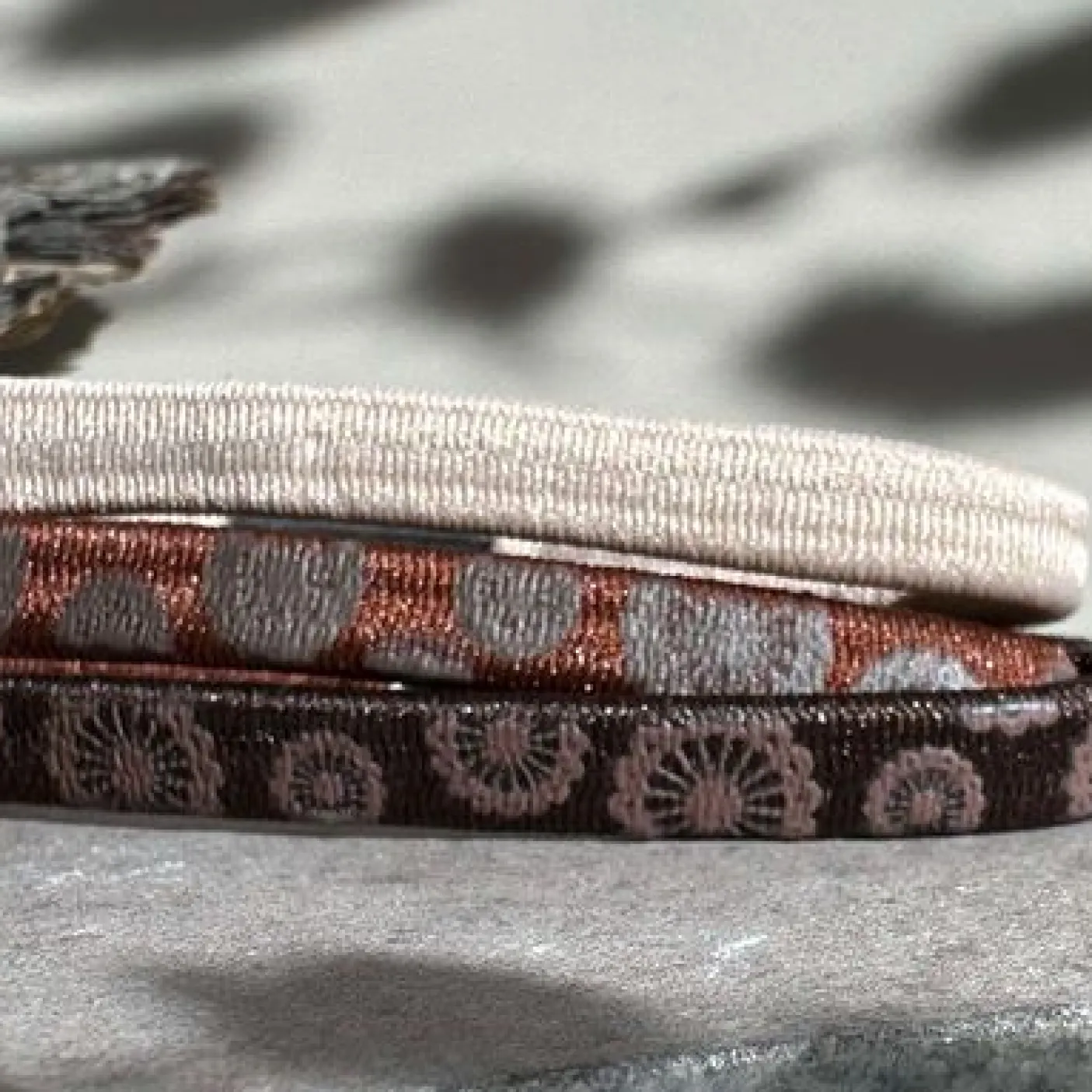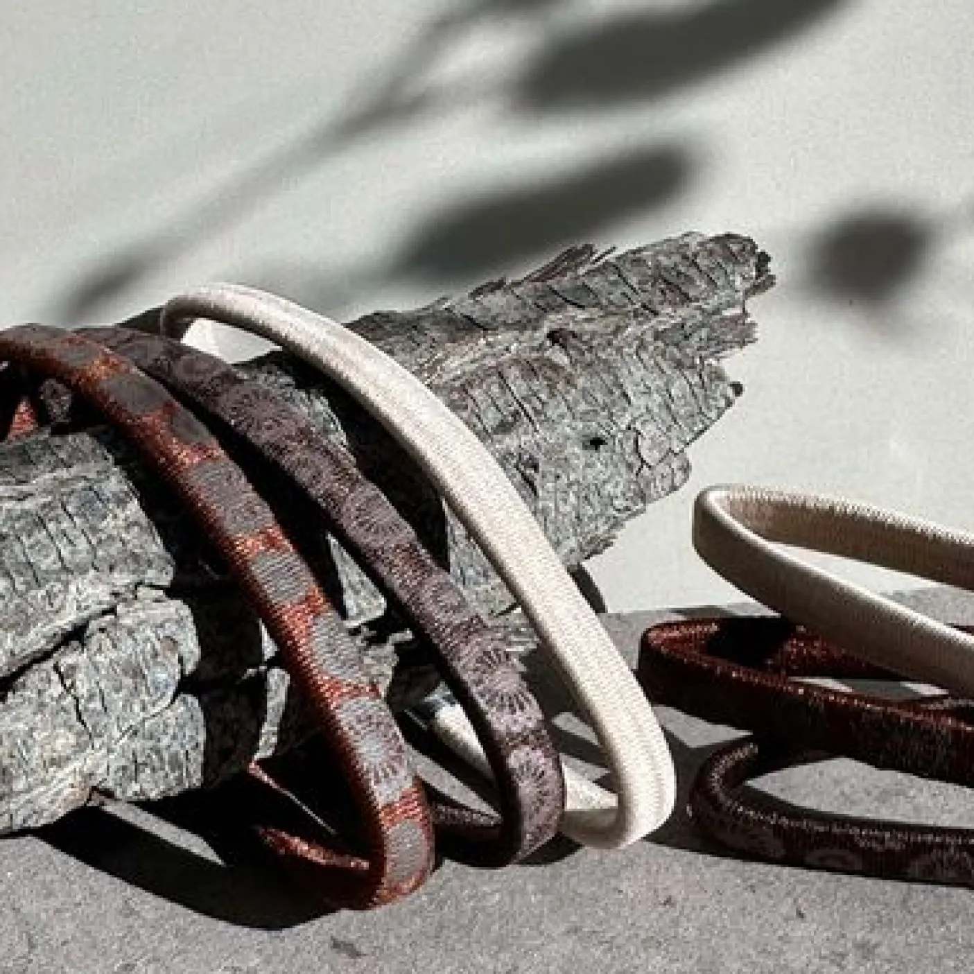 Flotte hårelastikker i brune nuancer med et fint grafisk/geometrisk print. Sættet består af 6 elastikker, der giver dig mulighed for at variere udtrykket i både enkle og mere pyntede frisurer. De har metalspænder og kommer i onesize.