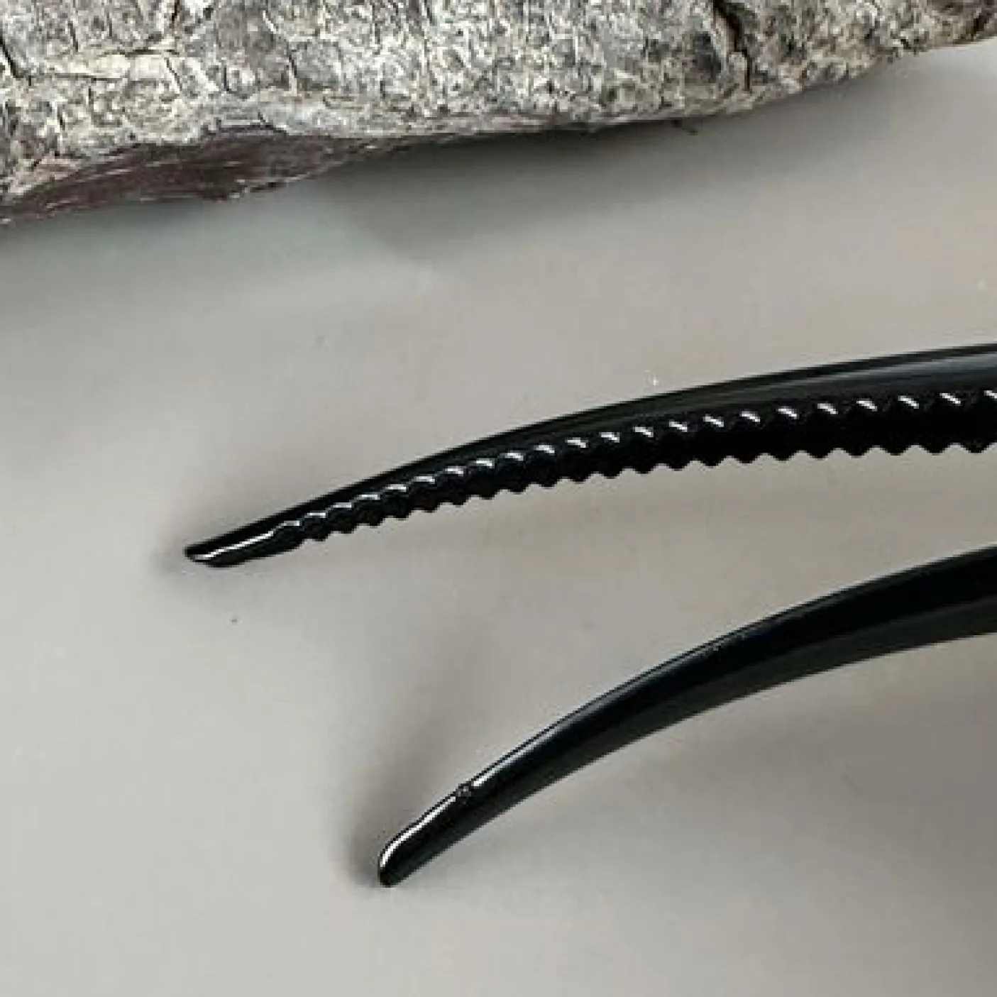 Hårklemme Black er en smuk og elegant hårklemme i shiny sort, der giver et stilrent og ensfarvet udtryk i håret. Det enkle design gør den nem at bruge, når du vil samle håret og holde looket roligt og klassisk.