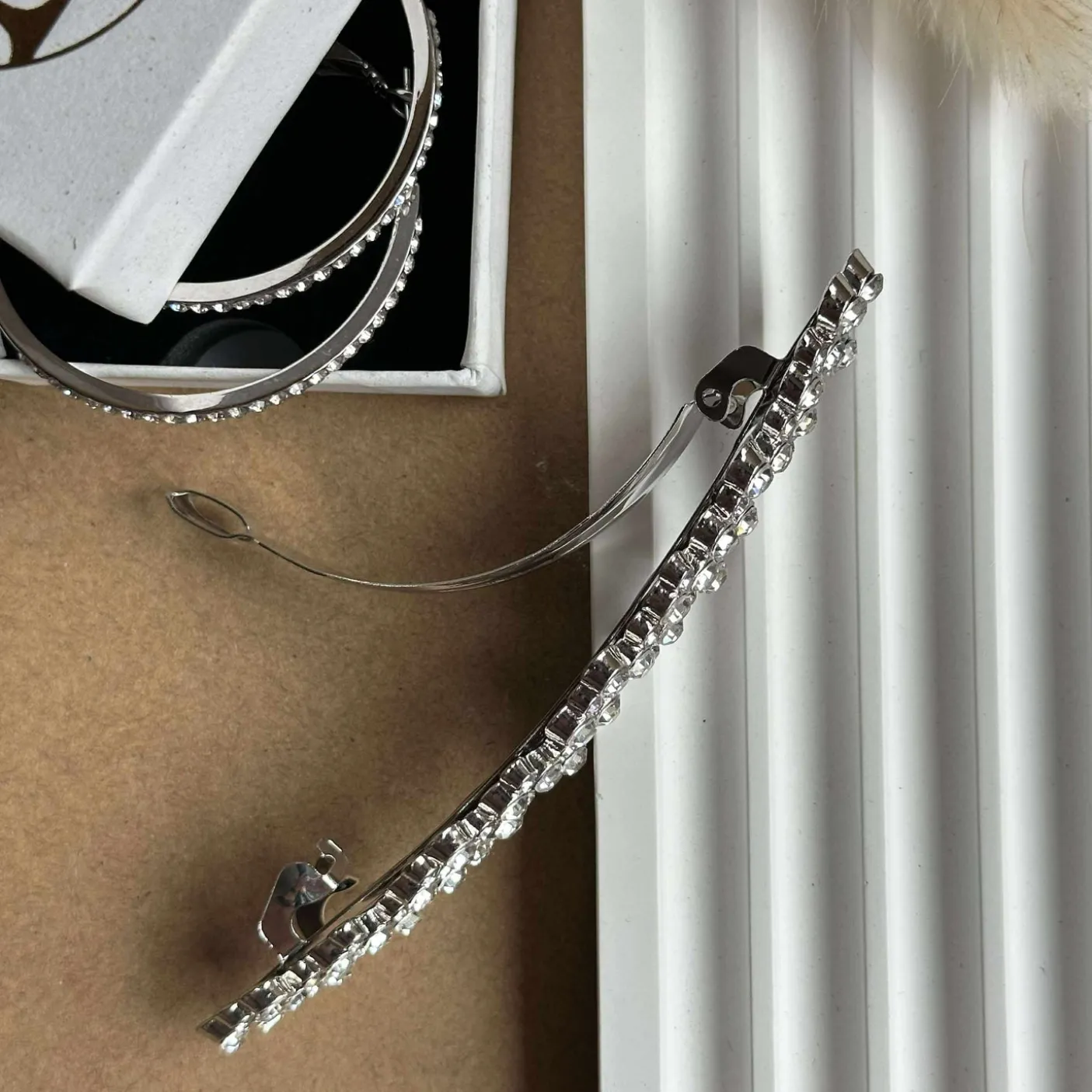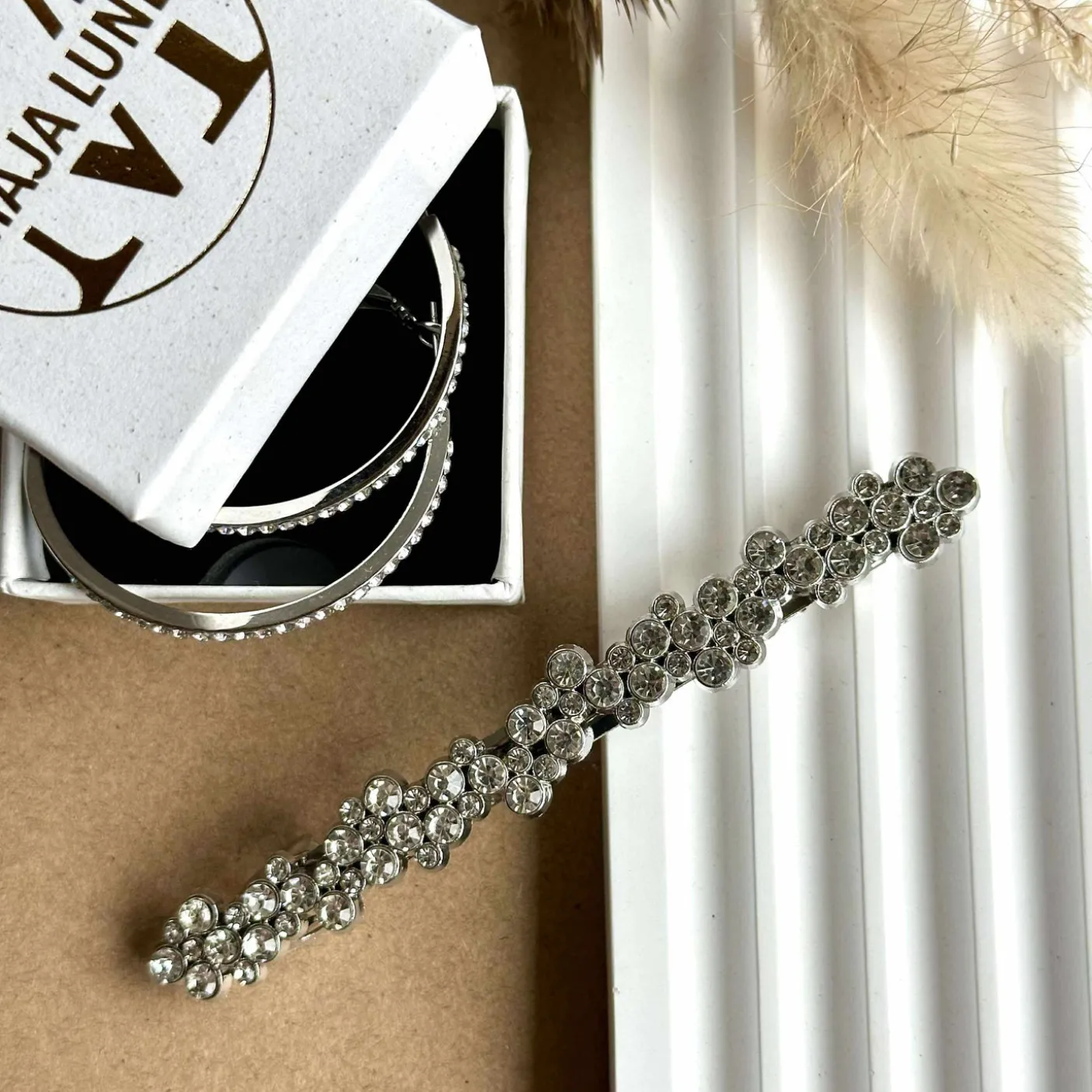 Hårklemme Leonora silver er et enkelt og elegant hårspænde i sølvfarvet metal med sten. Det ensfarvede udtryk gør den nem at style, uanset om du går efter et diskret look eller vil tilføje et lille glimt til håret.