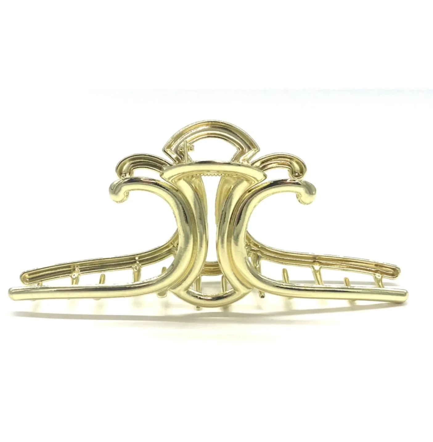 Hårklemmen er udført i metal med et ensfarvet look i guld, som giver et klassisk og afdæmpet finish.