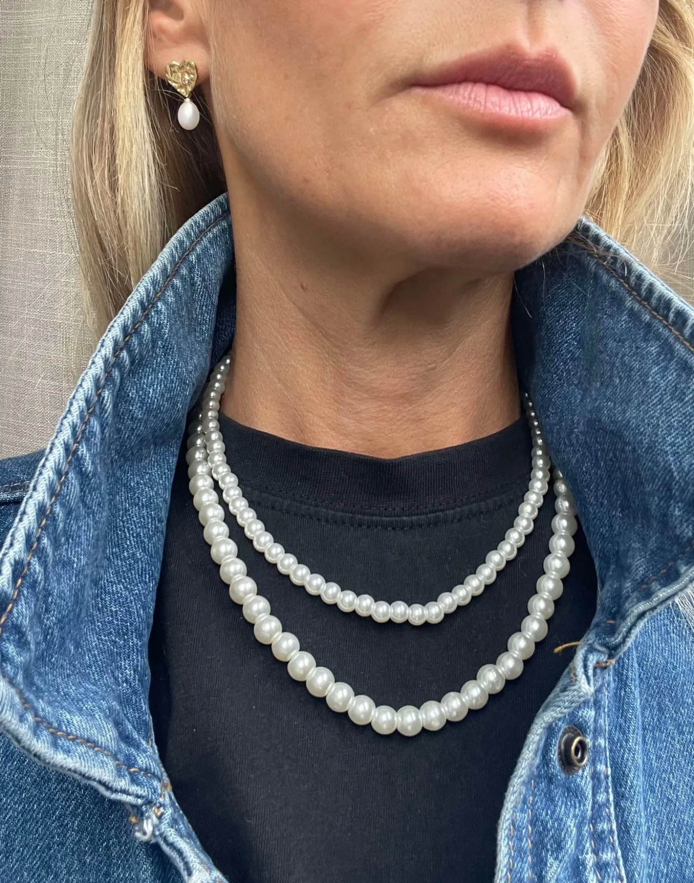 Sæt med 2 halskæder. Faux perler i god kvalitet