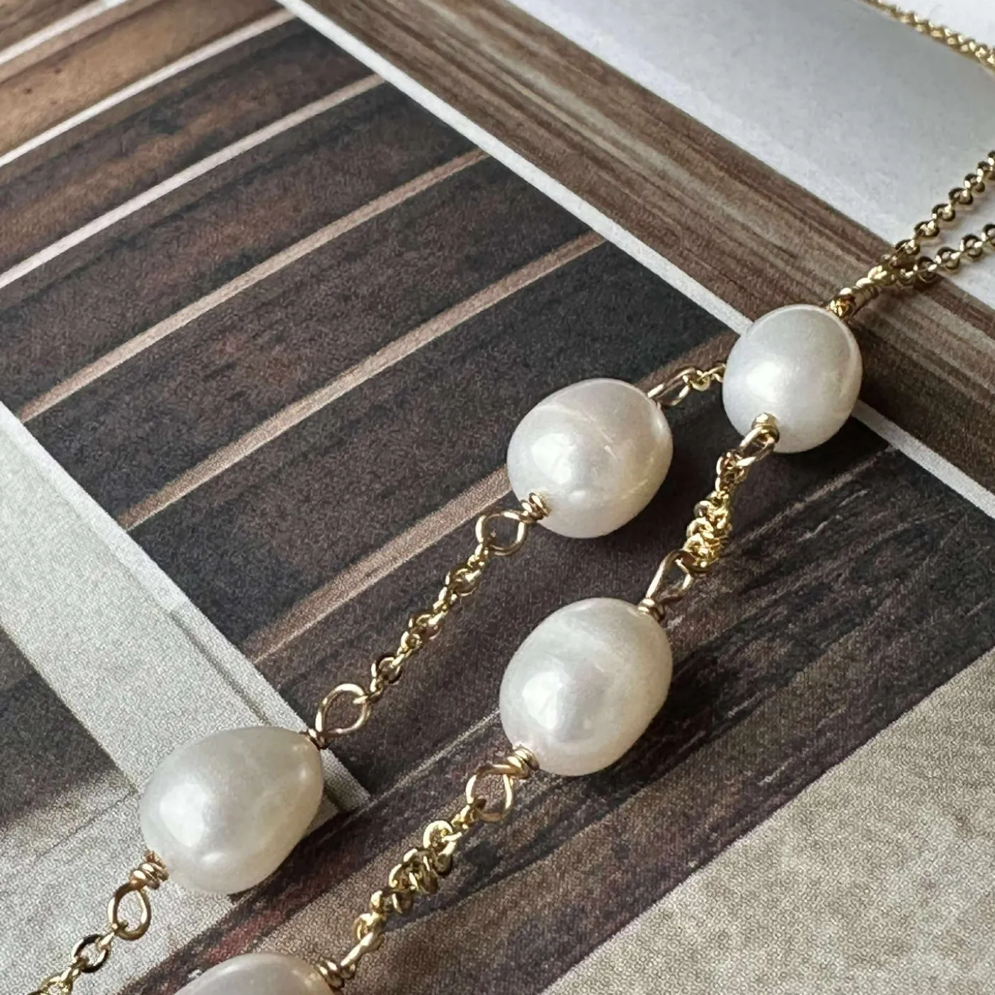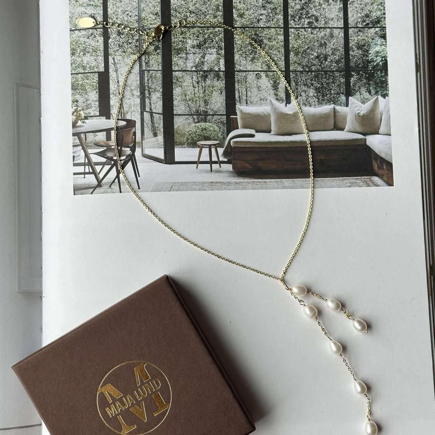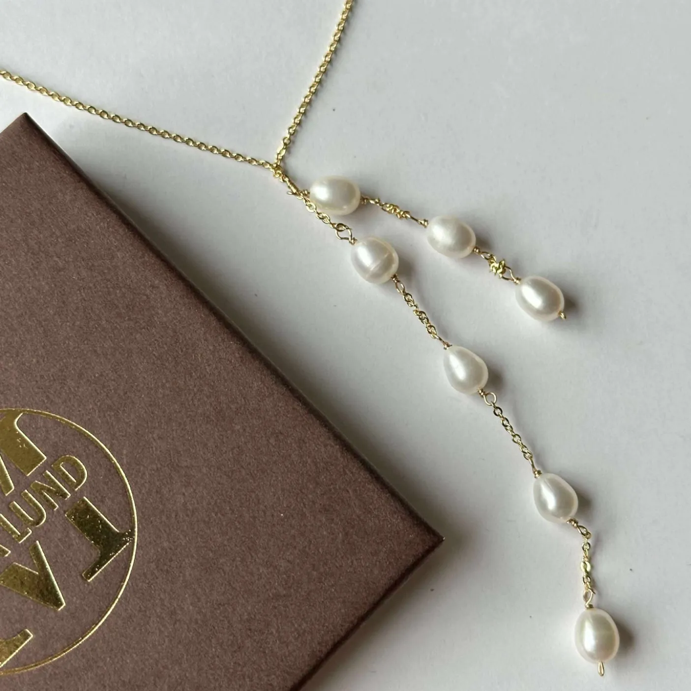 I modebilledet lige nu finder du mange Y-kæder – en halskæde med et drop. Emmy er vores bud på en meget smuk og tidløs Y-halskæde, og som er meg ægte og unikke ferskvandsperler. Den er rigtig fin til nedringede kjoler, til v-neck bluser i fin strik.
