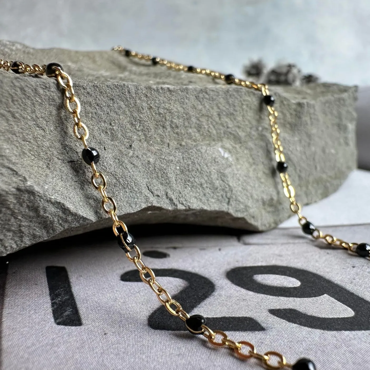 Halskæden er fin alene eller at mixe med andre kæder. Tåler vand, sved og parfume.