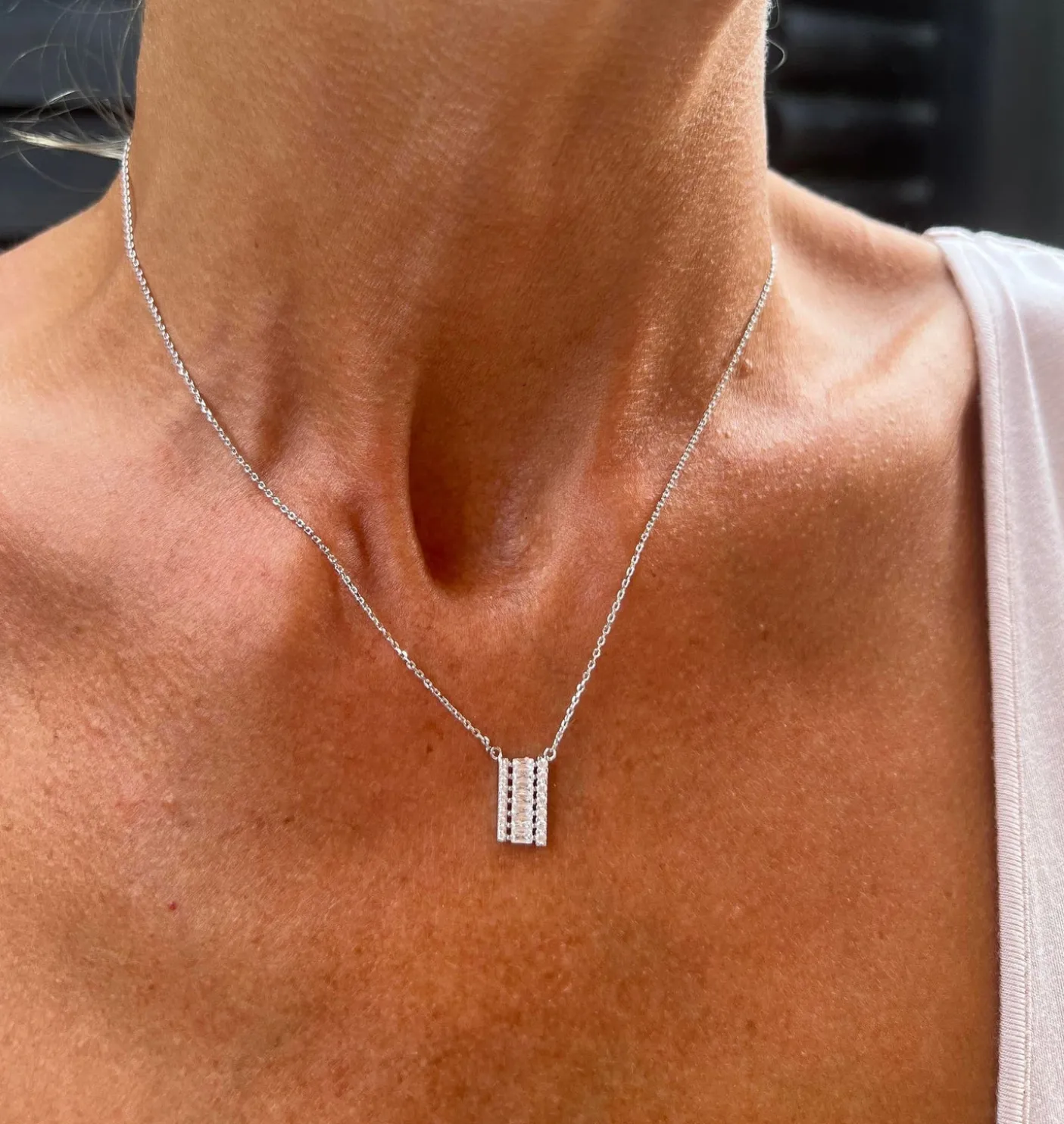 Halskæde til både hverdag og fest. Klassisk vedhæng med isatte CZ Zirkoner.