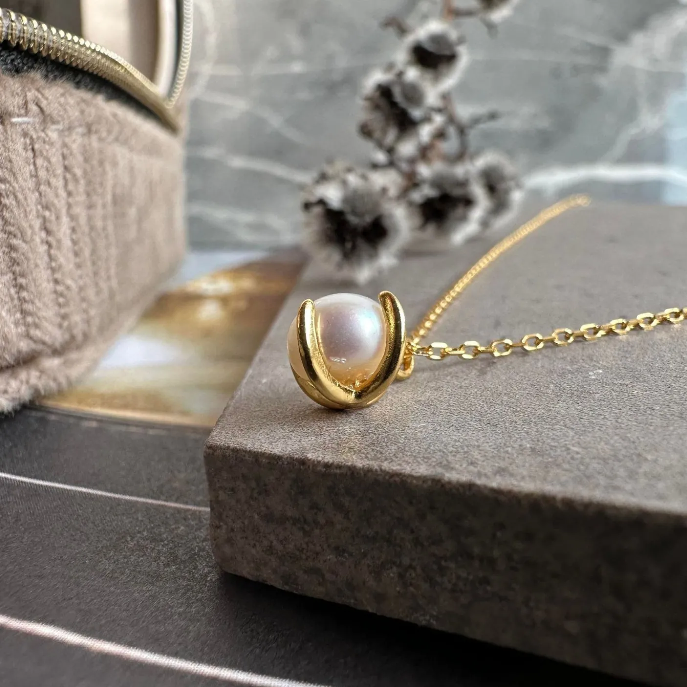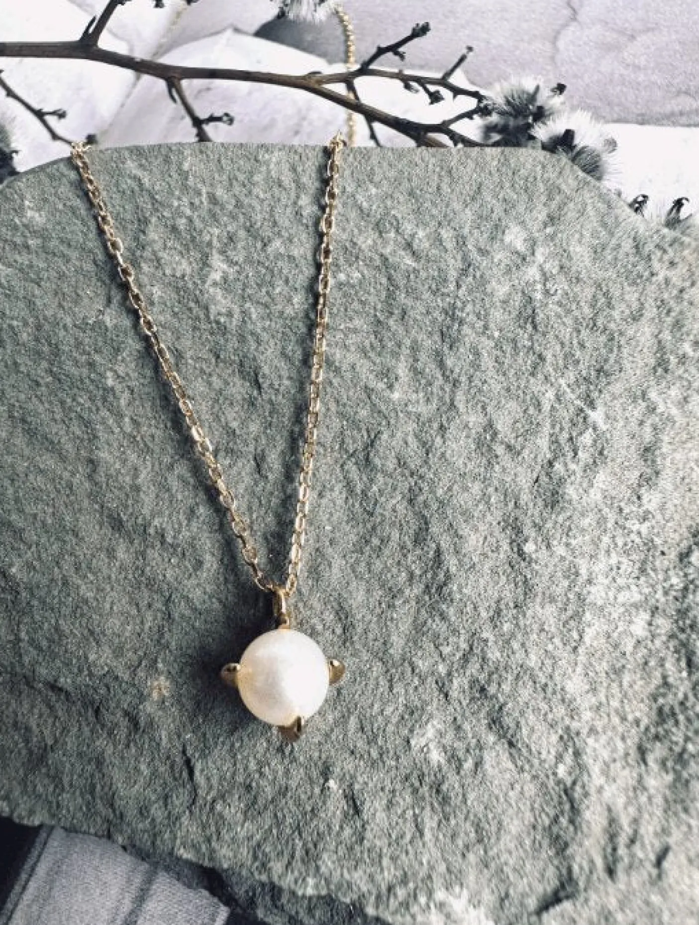 Smuk og enkel halskæde med vedhæng, i en indfattet ferskvandsperle.