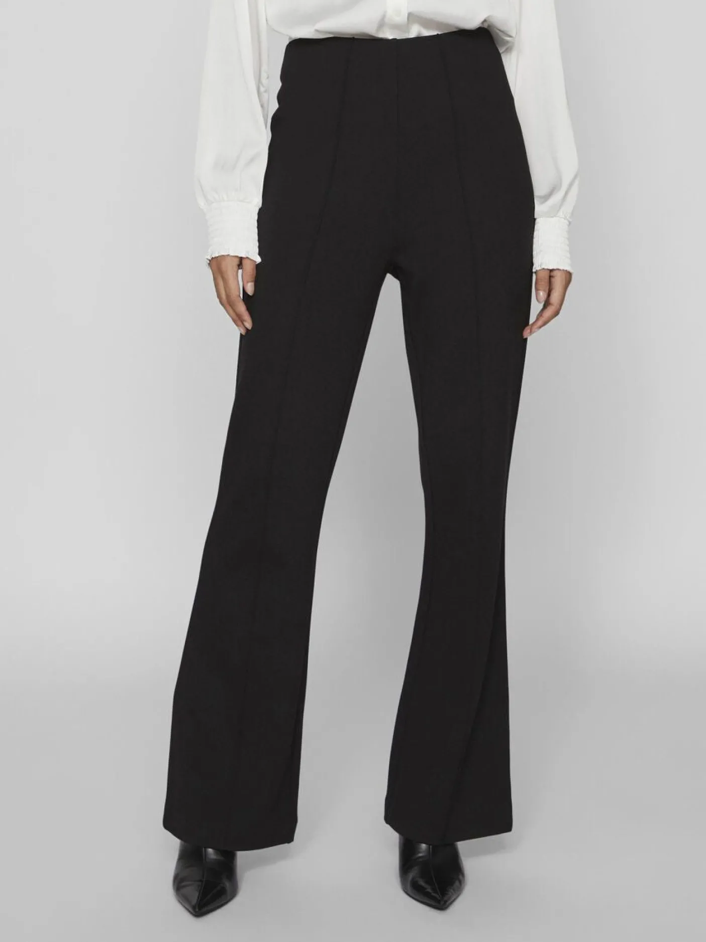 Højtaljede bukser – Black er klassiske og elegante højtaljede bukser med straight fit. Bukserne er udført med elastisk linning og en diskret detalje ved forsøm. Den sorte variant giver et afdæmpet og tidløst udtryk.