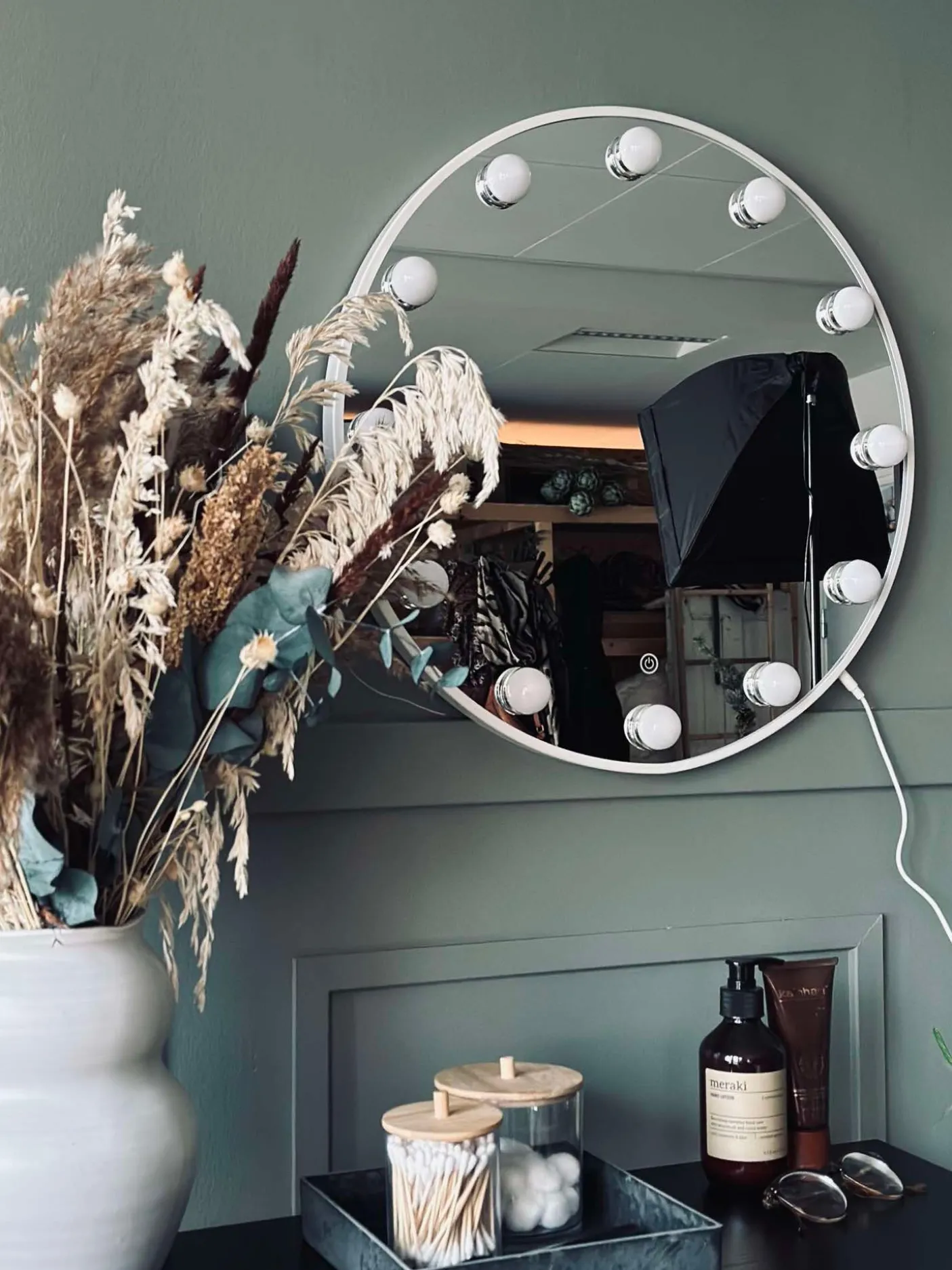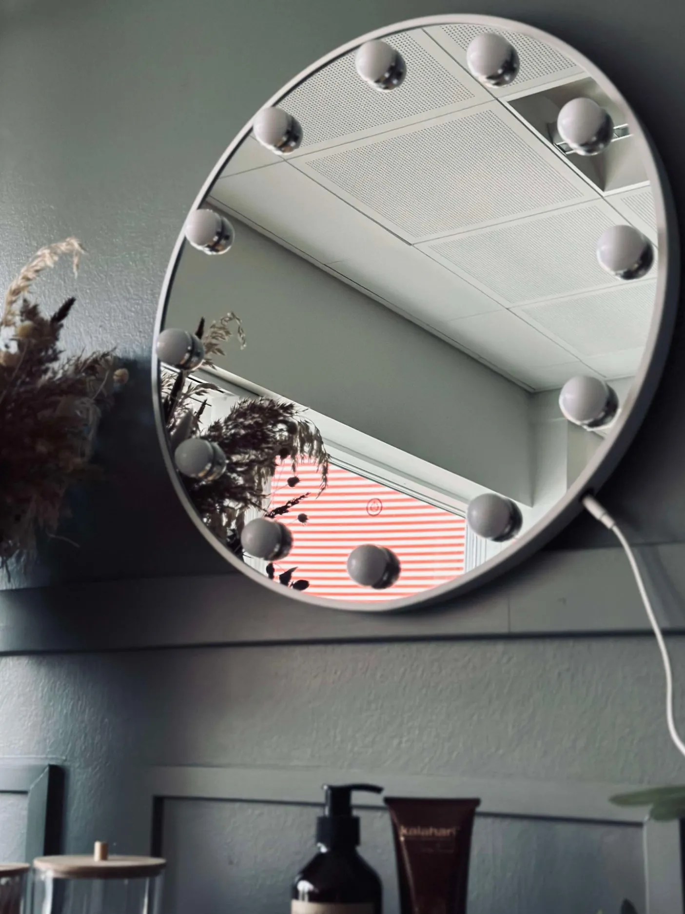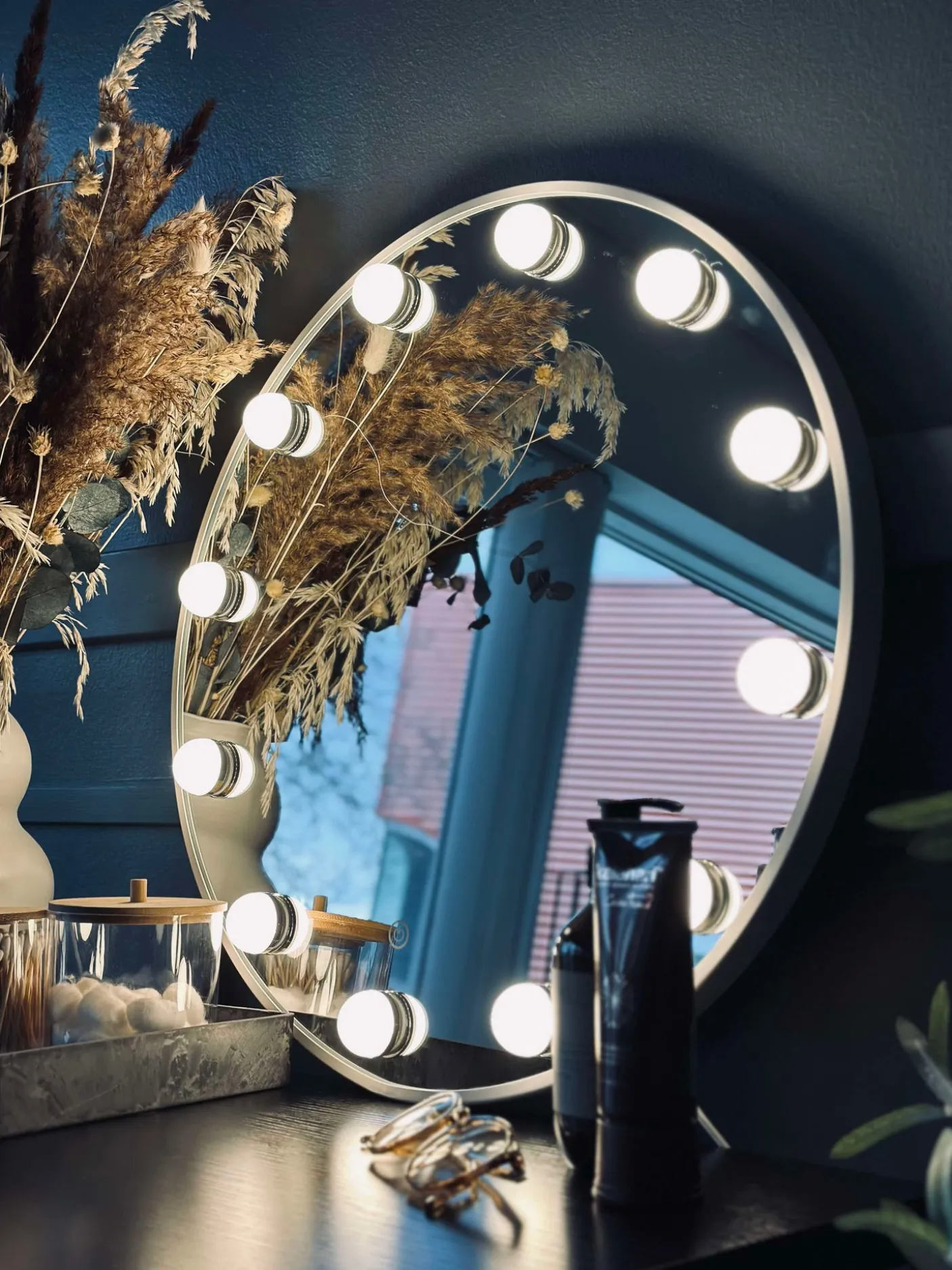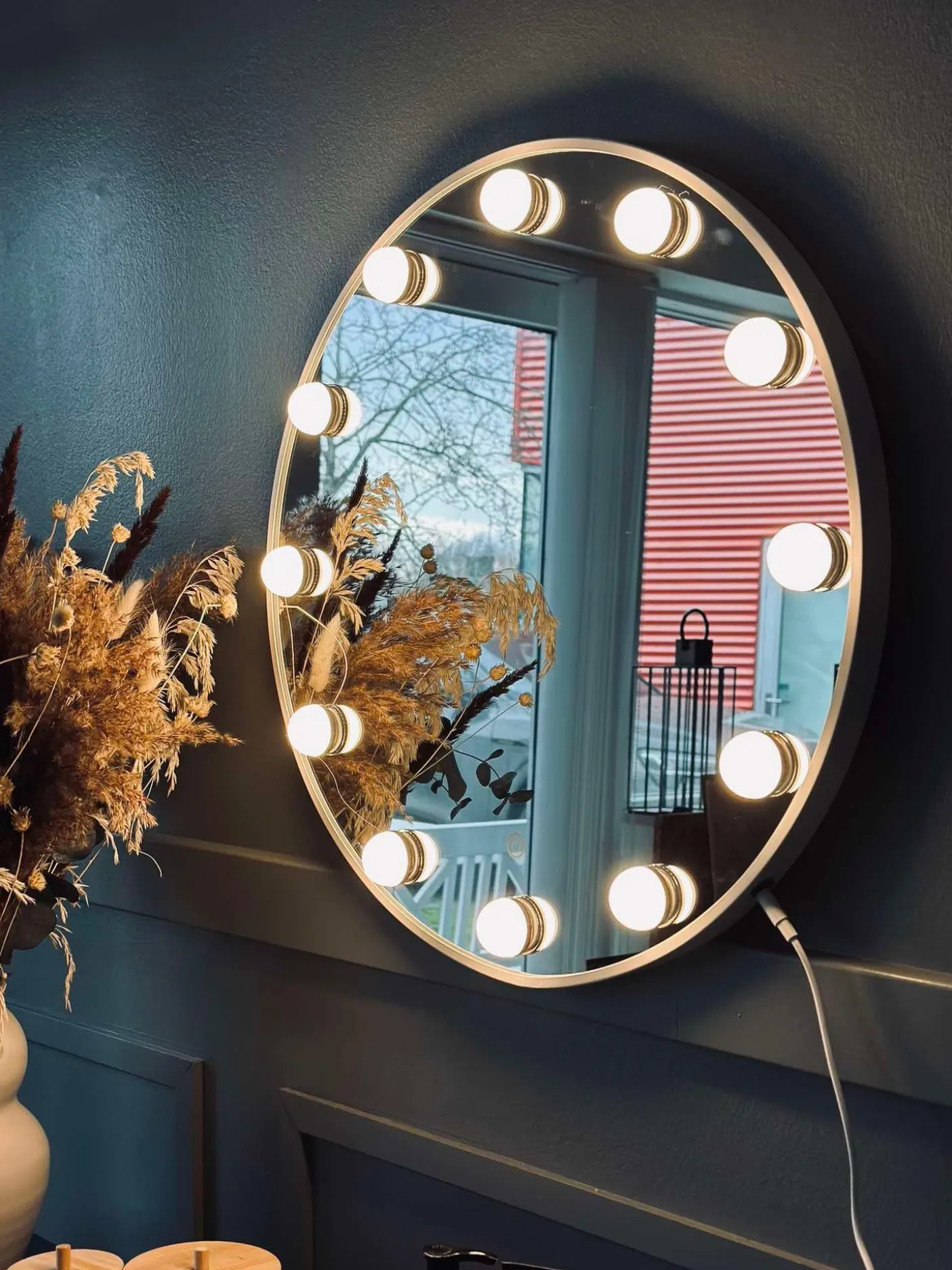 Makeup spejl med 12 pærer.