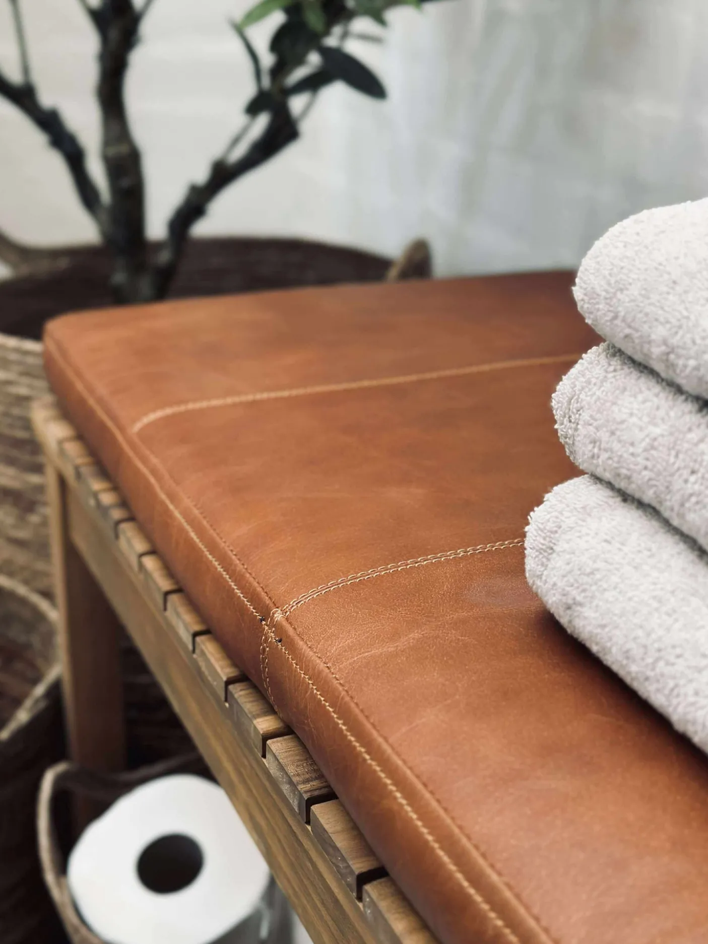 Lækker hynde til bænk i bøffellæder.