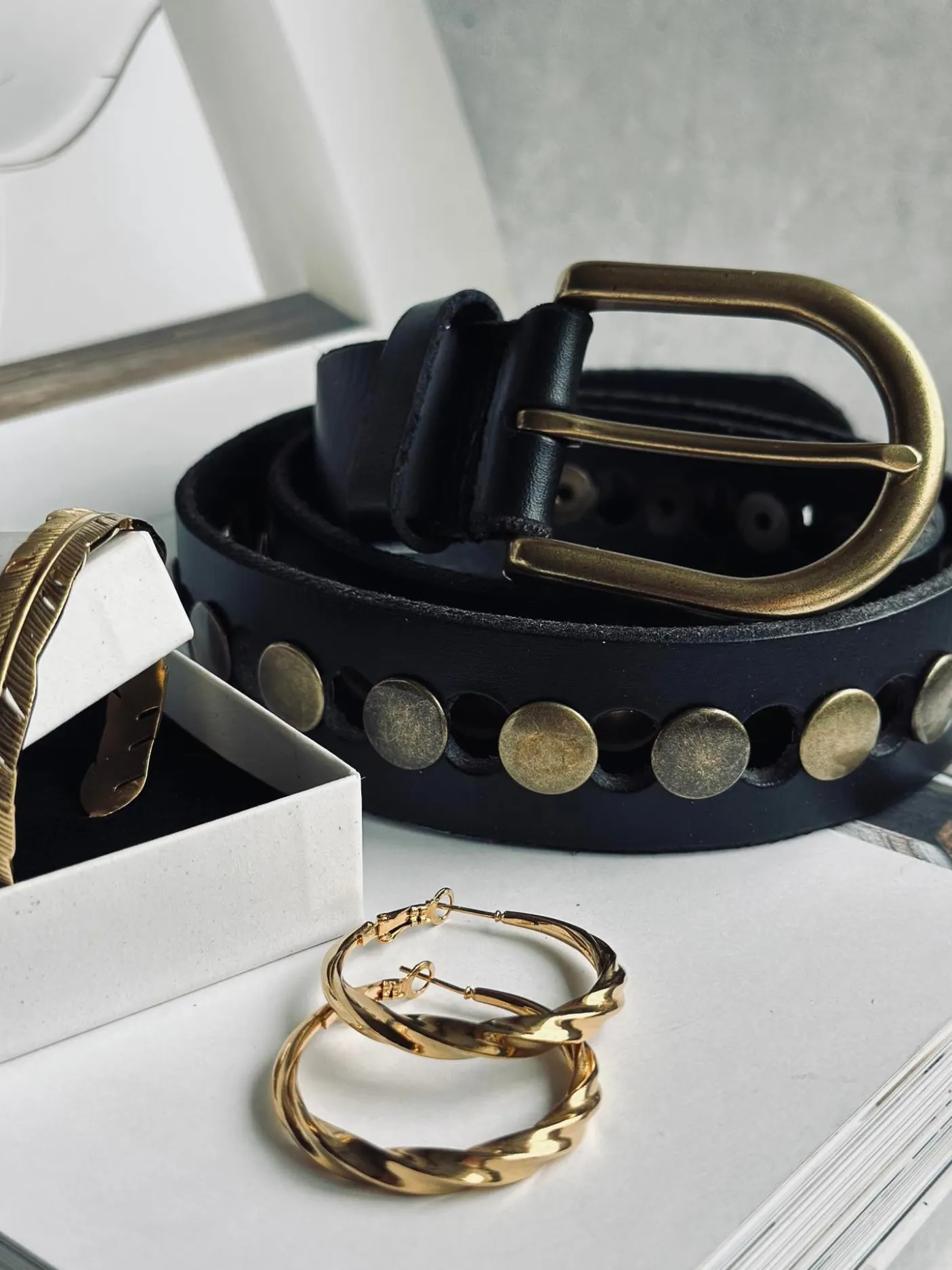 Jeans med nitter-looket gør bæltet velegnet, når du vil tilføre kant til hverdagsstyling, men det kan også bruges som en gennemført detalje til fest.