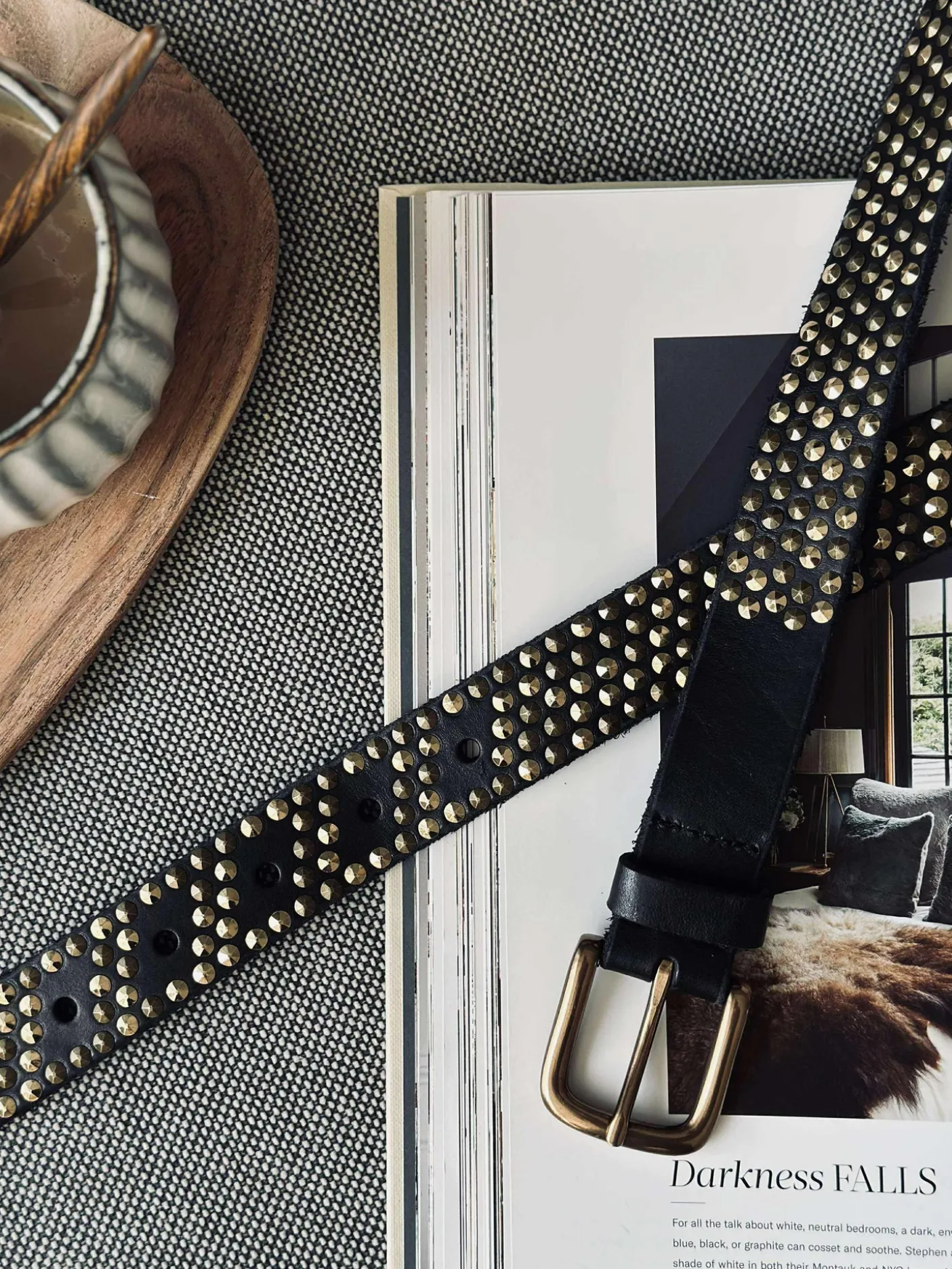 Et bælte, der kan bruges som en enkel detalje i garderoben, når du ønsker et mere råt og dekorativt præg.