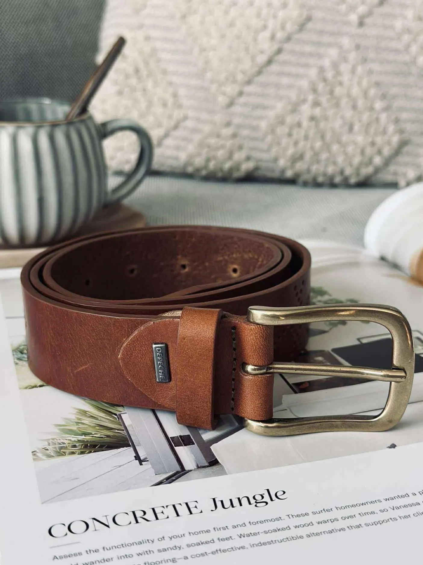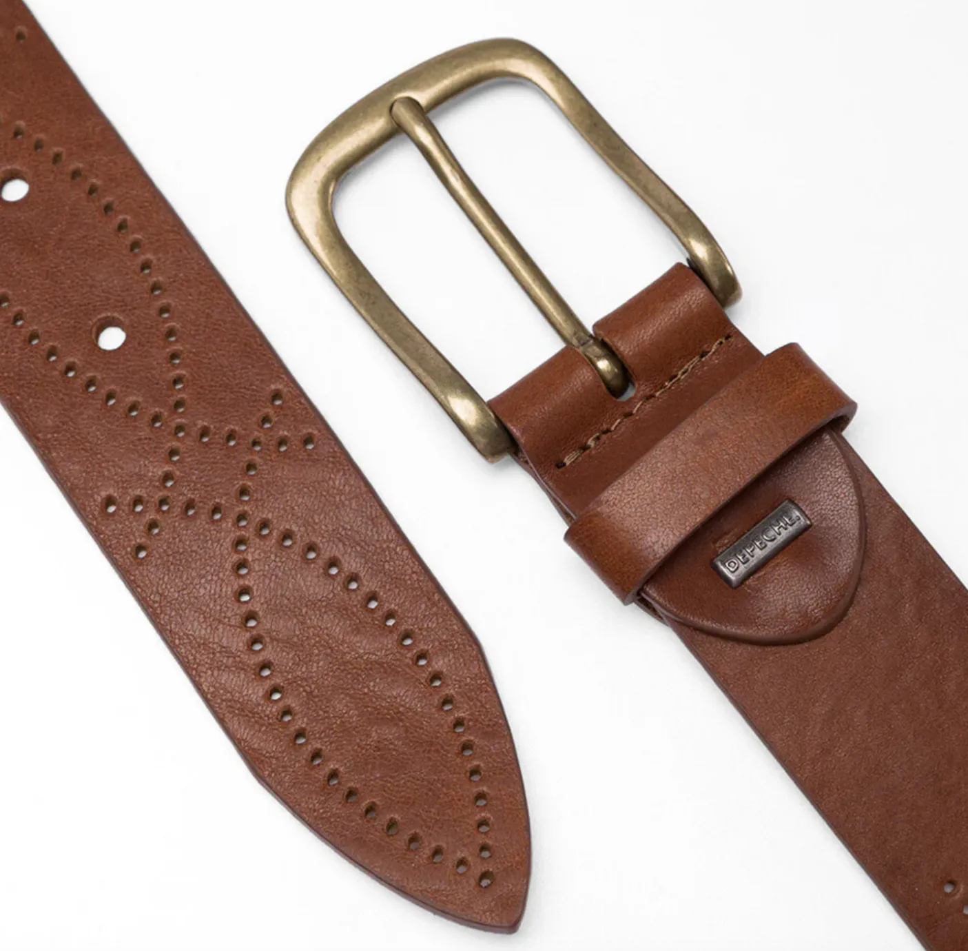 Missouri er et jeansbælte i cognacfarvet skind med et stort, dekorativt metalspænde. Det ensfarvede udtryk gør bæltet nemt at kombinere, mens spænde-detaljen tilfører et markant look. En oplagt accessory, når du vil samle et outfit med et tydeligt snit.