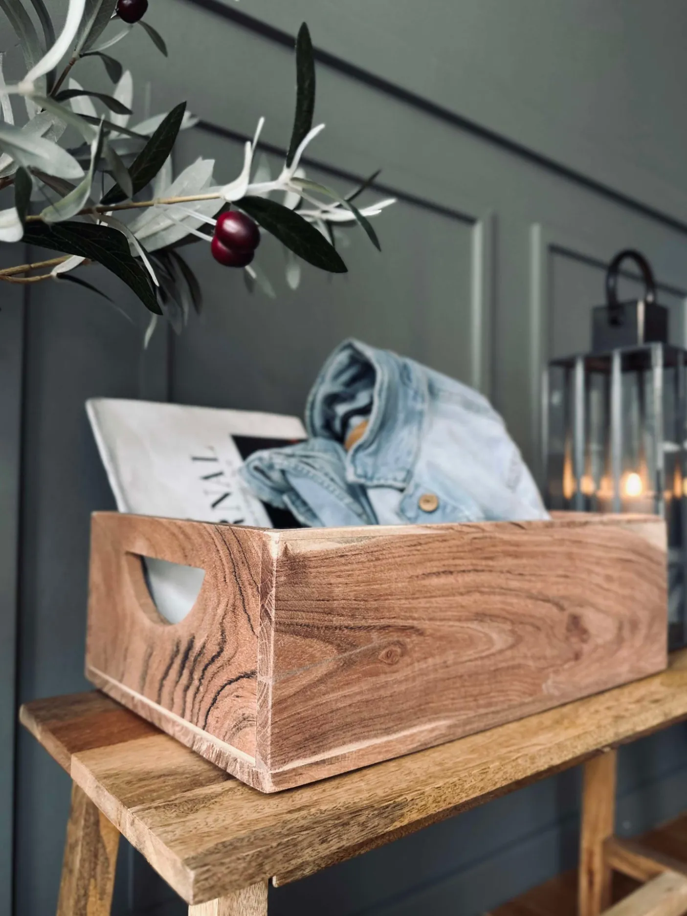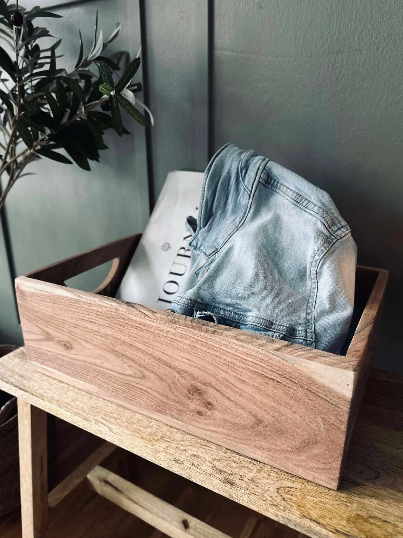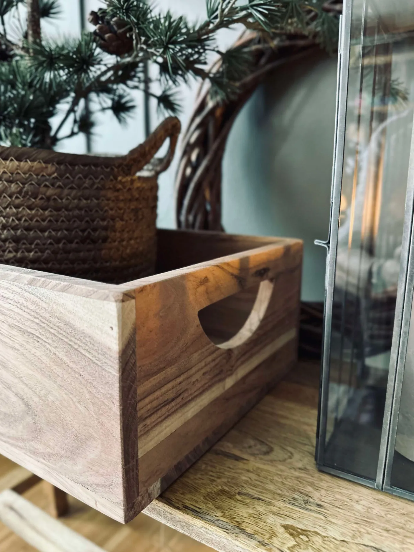 Kasse i massiv akacia.