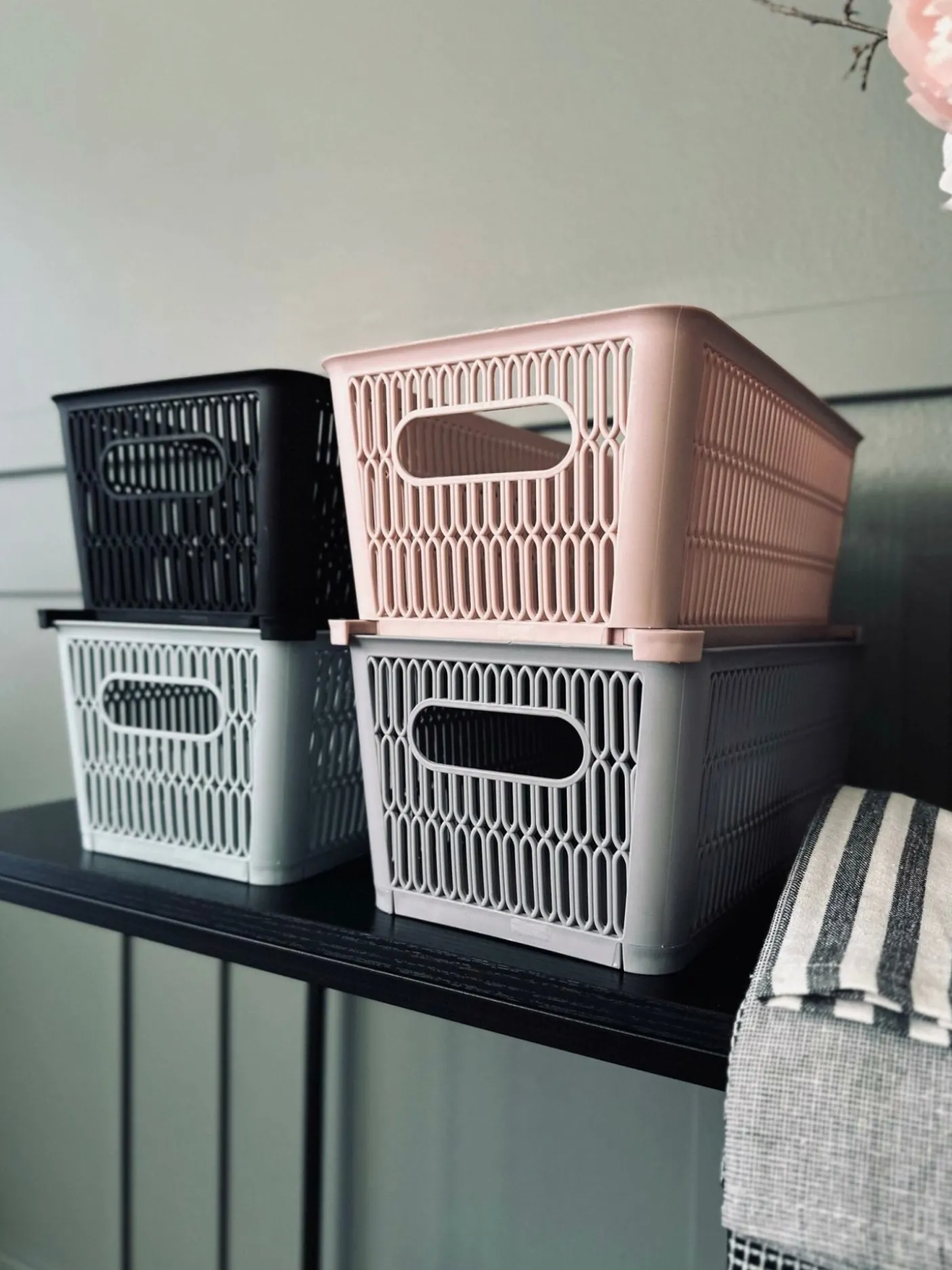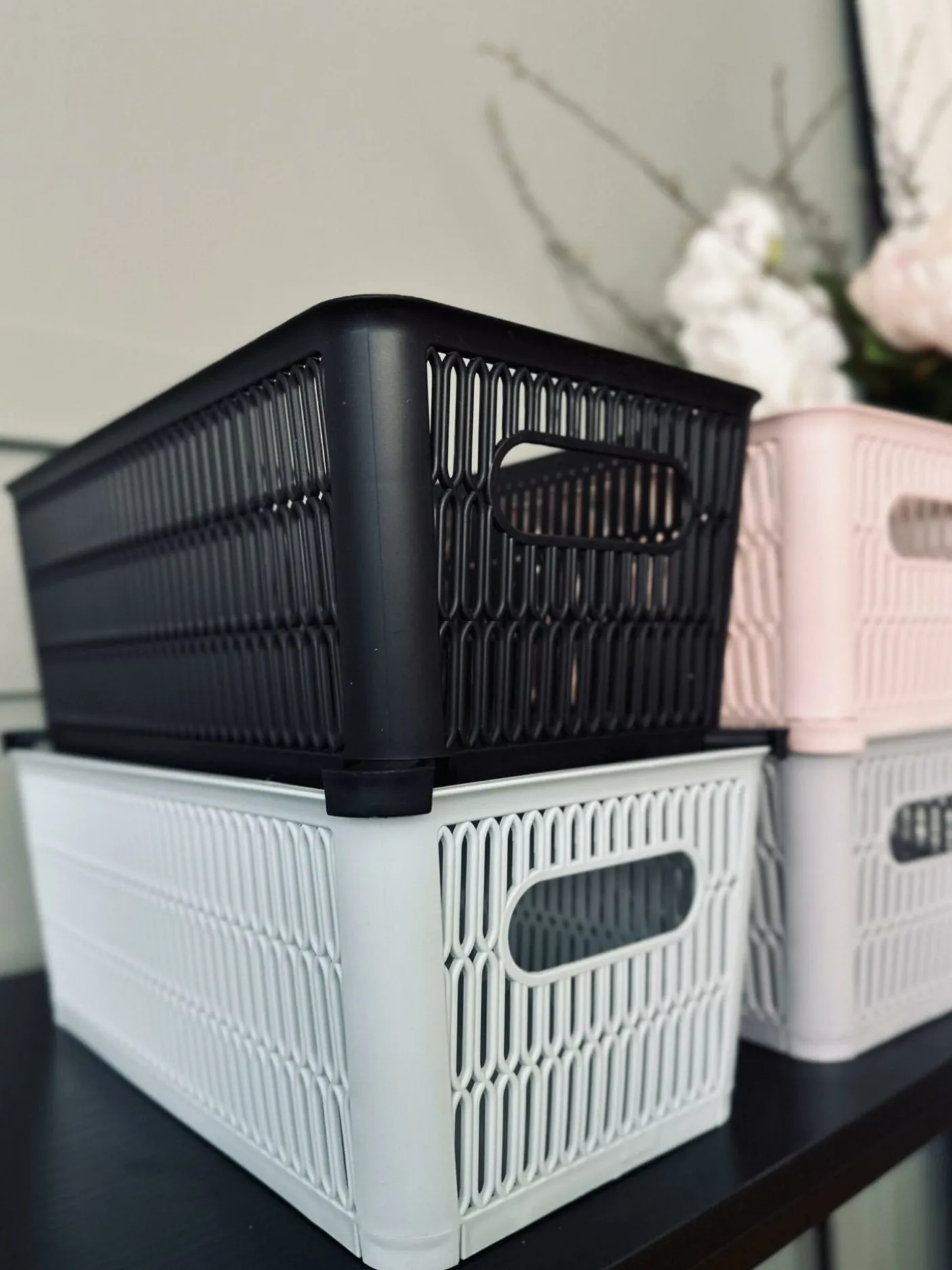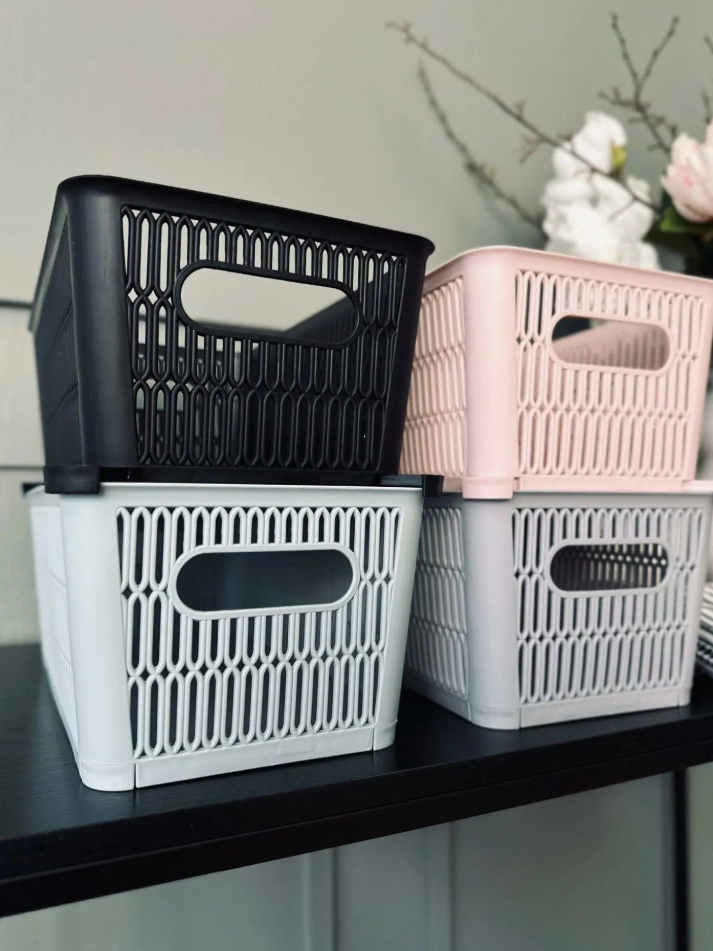 Ved køb af flere kasser kan de stables ved at kanten på kassen trækkes ud.