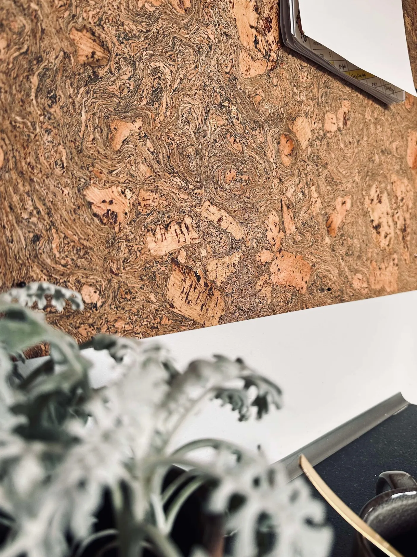 Dekorativ korkplade med støjdæmpende effekt.