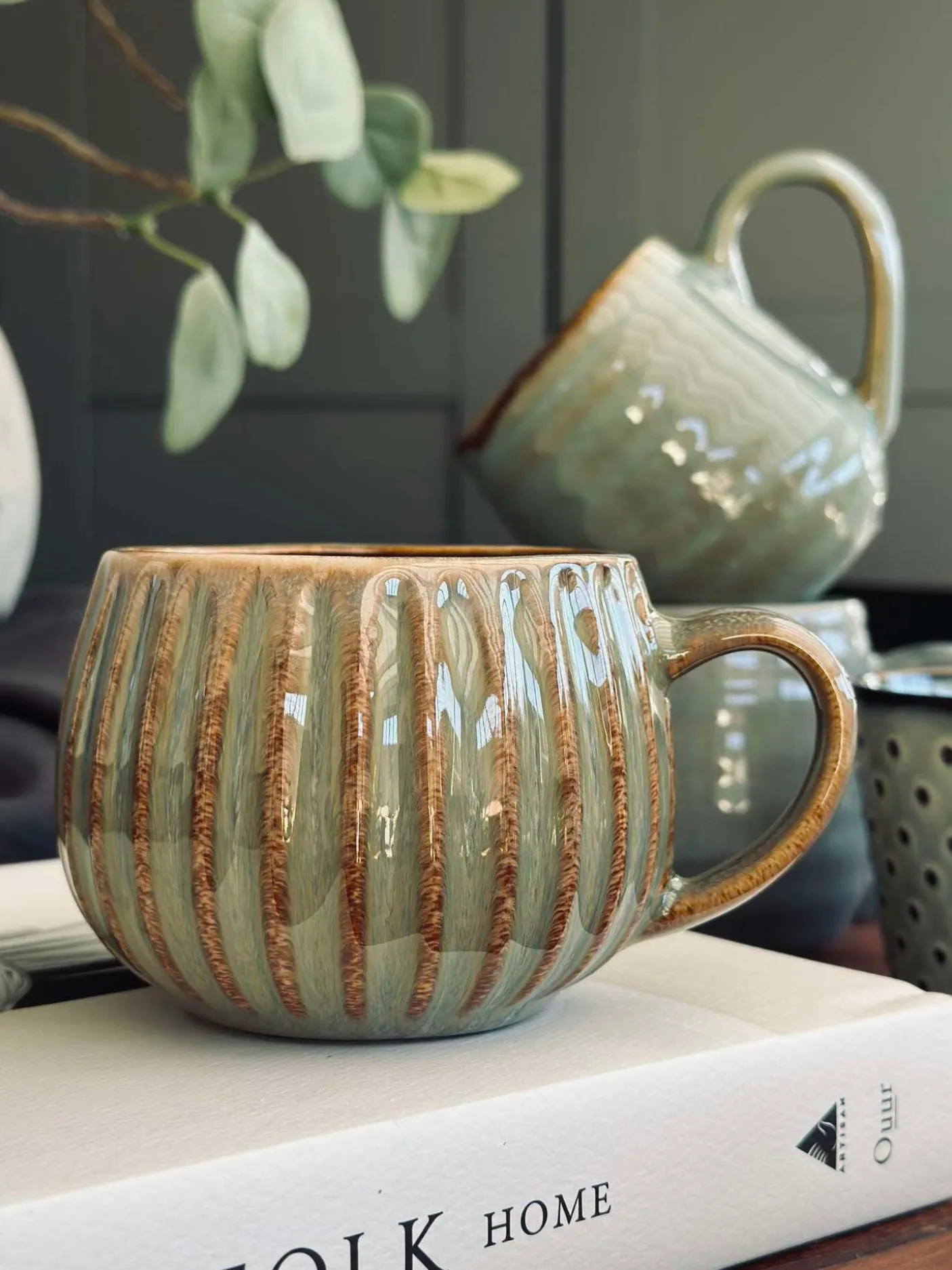 Kruset er lavet af stentøj, hvilket giver det en robusthed og holdbarhed, der kan modstå daglig brug. Materialet bevarer varmen længere, hvilket gør det ideelt til varme drikke. Dette naturlige materiale tilføjer også en æstetisk charme til borddækningen, mens dets modstandsdygtighed over for ridser og pletter sikrer, at kruset forbliver pænt i mange år.