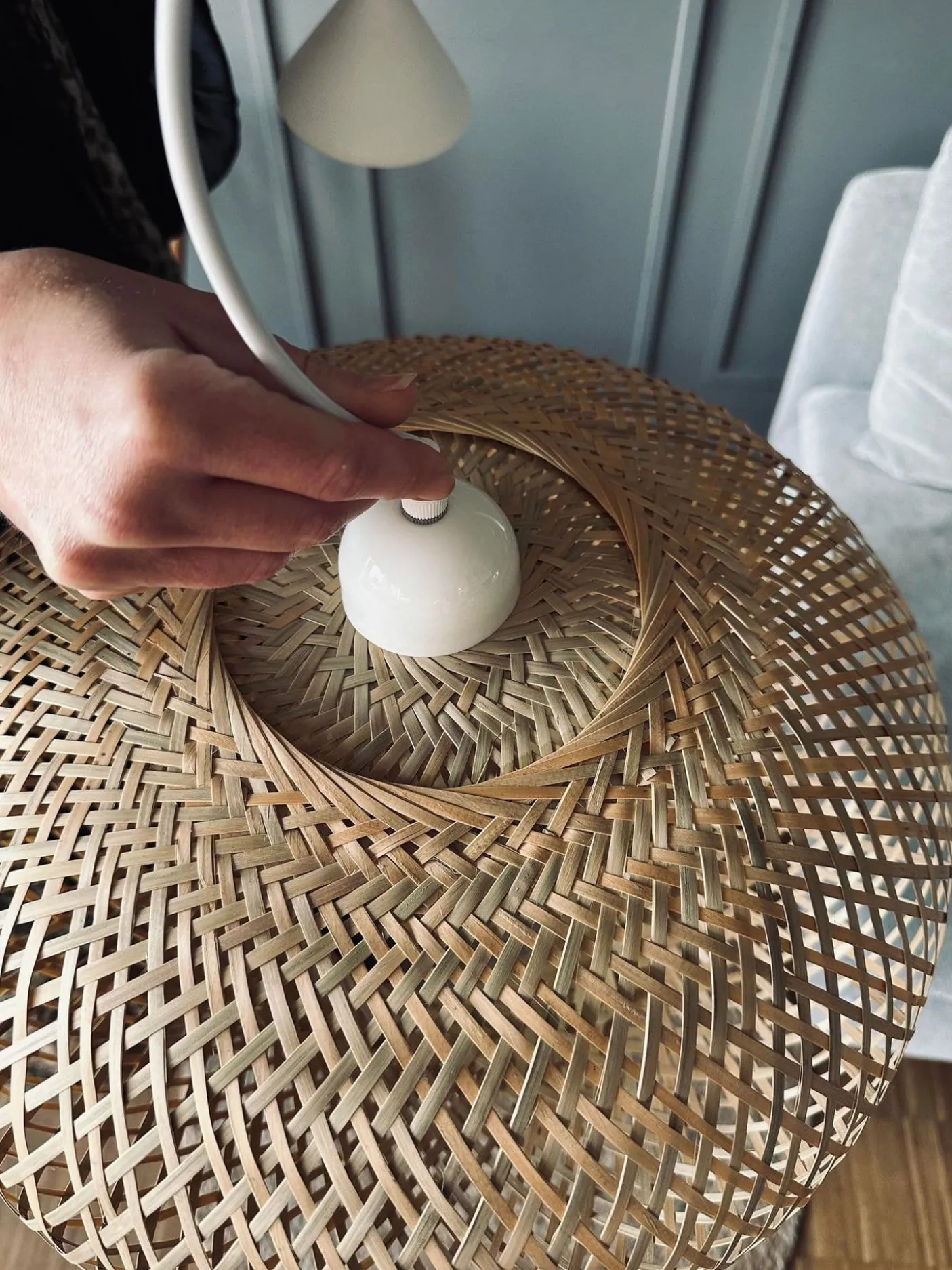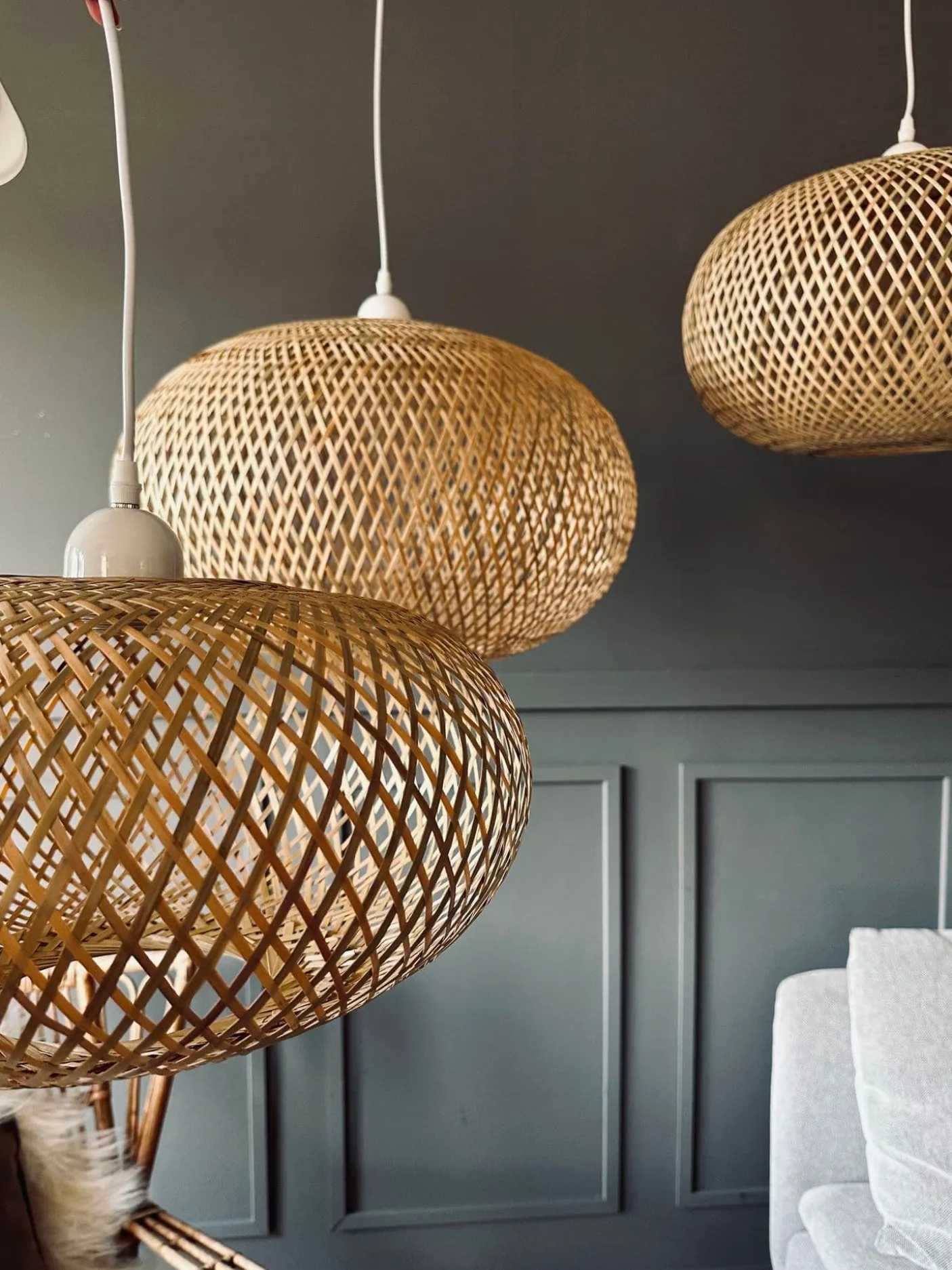 Smuk lampe i flettet bambus.