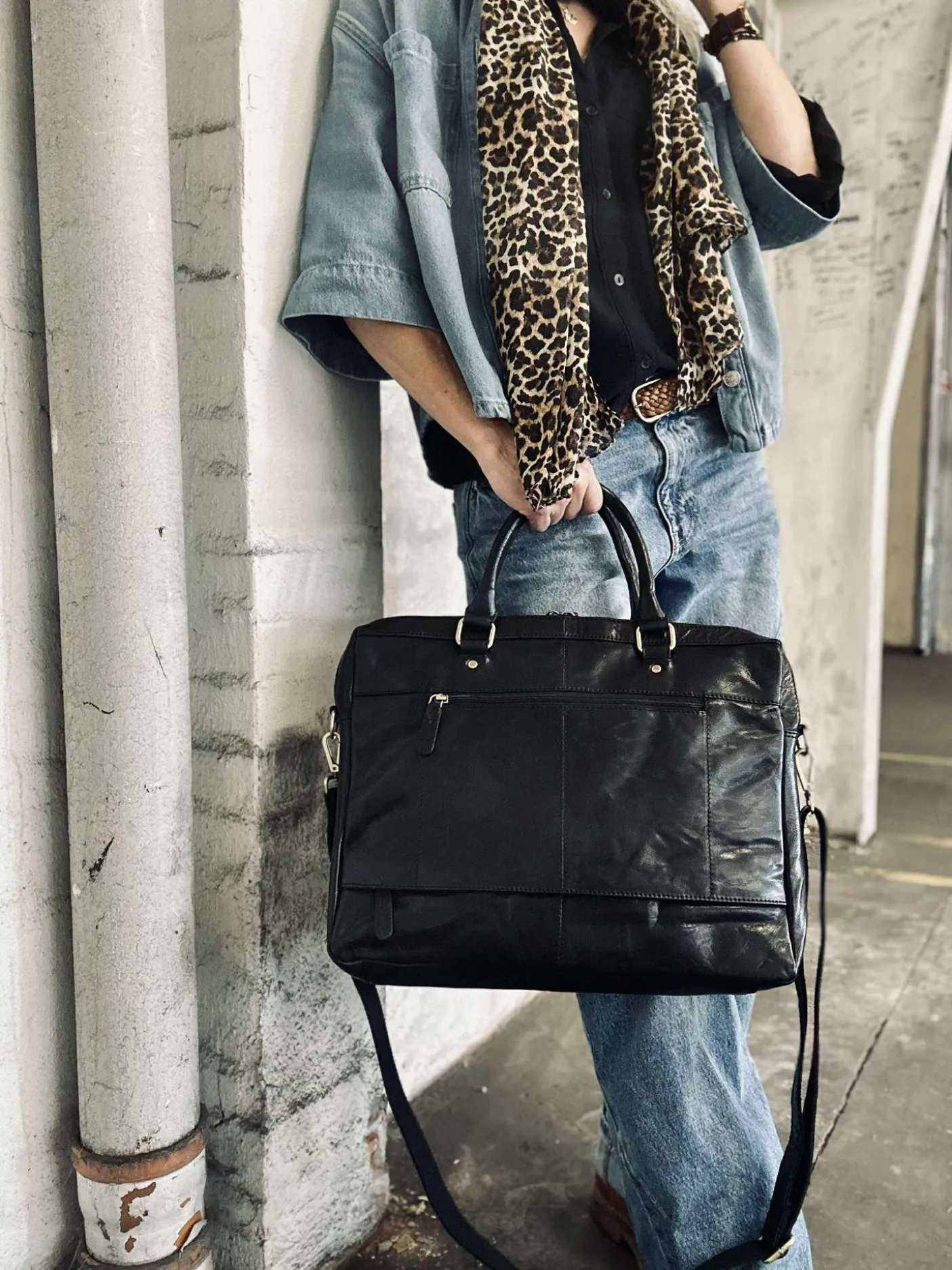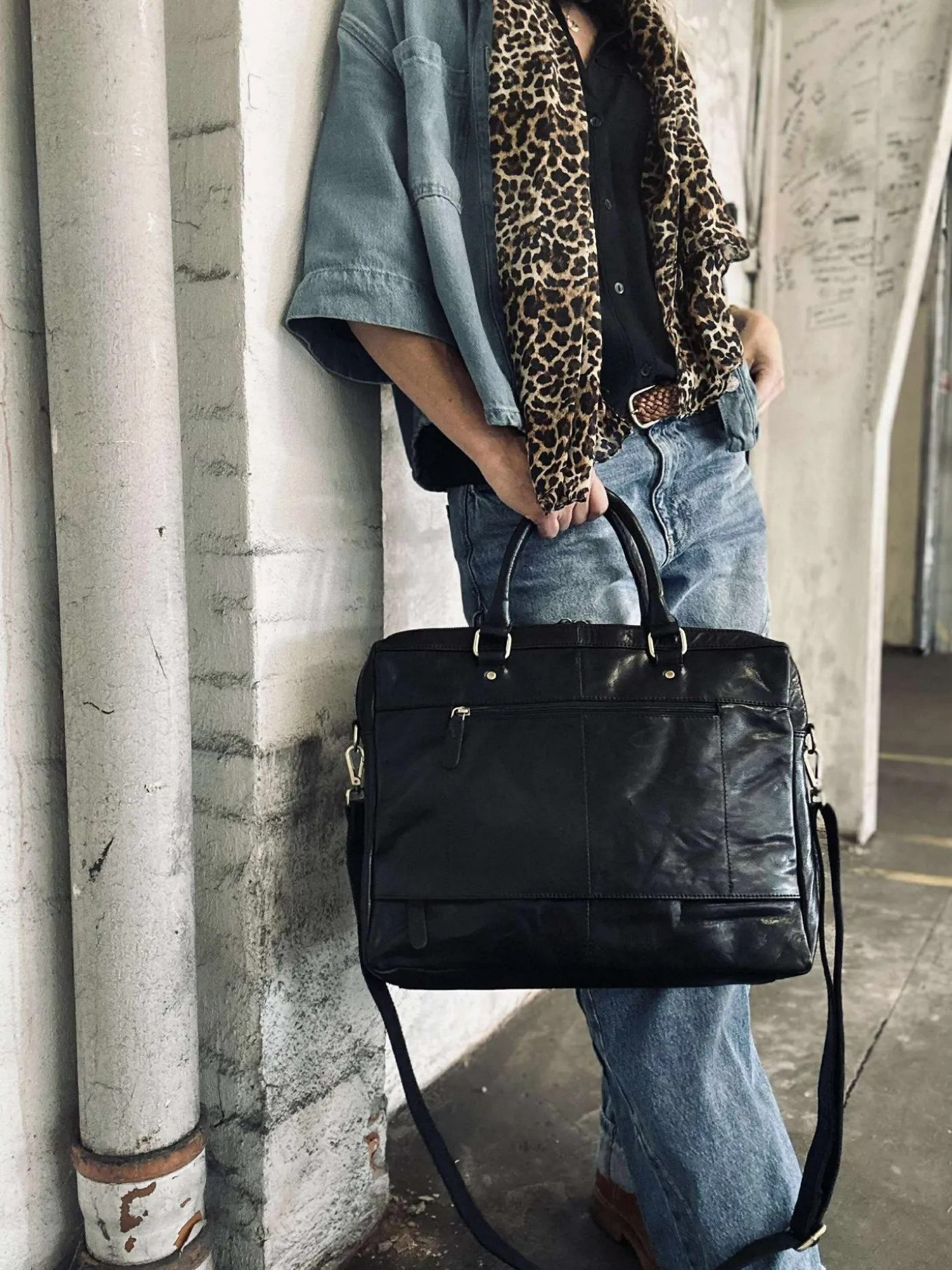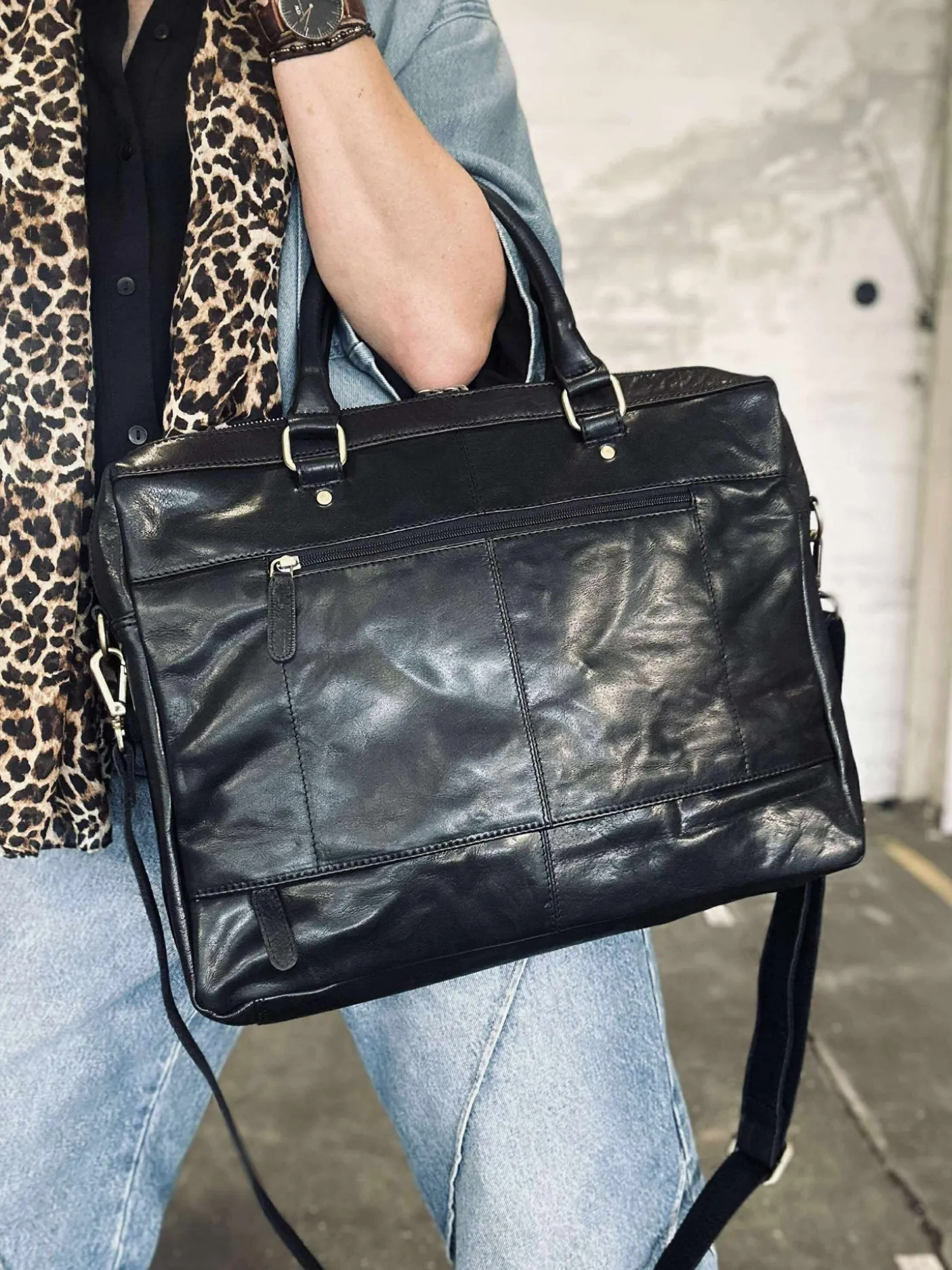 Super lækker arbejdstaske i sort skind.