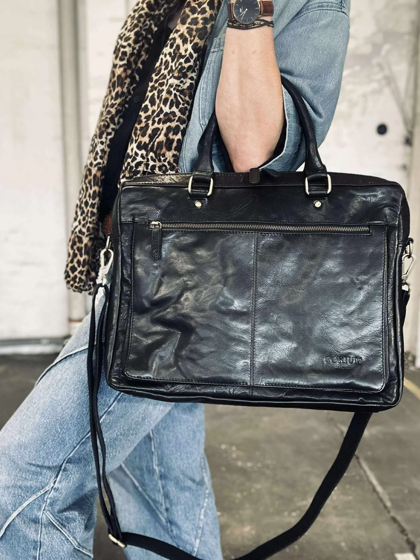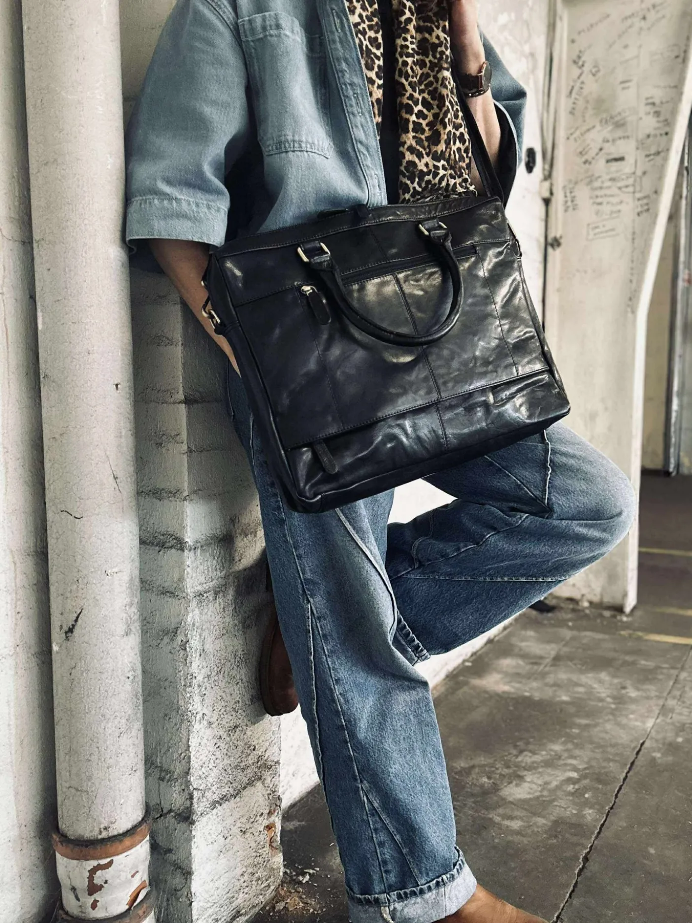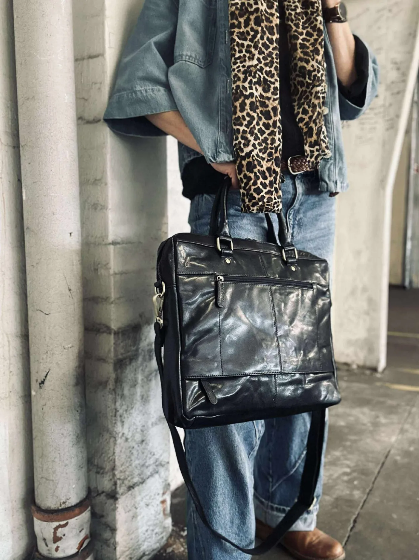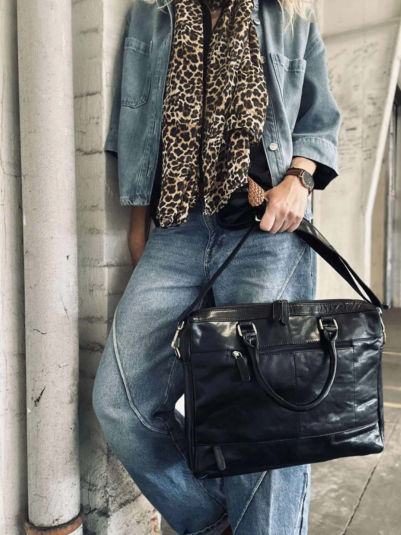 Super lækker arbejdstaske i sort skind.