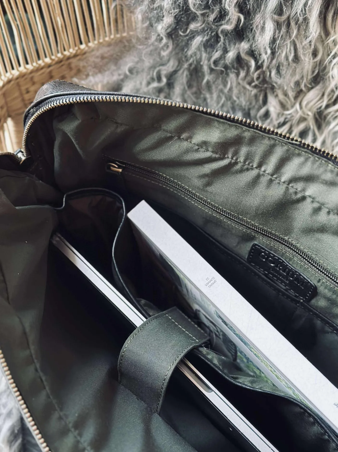 Indvendig er der rum til laptop og øvrige rum til nøgler mm.