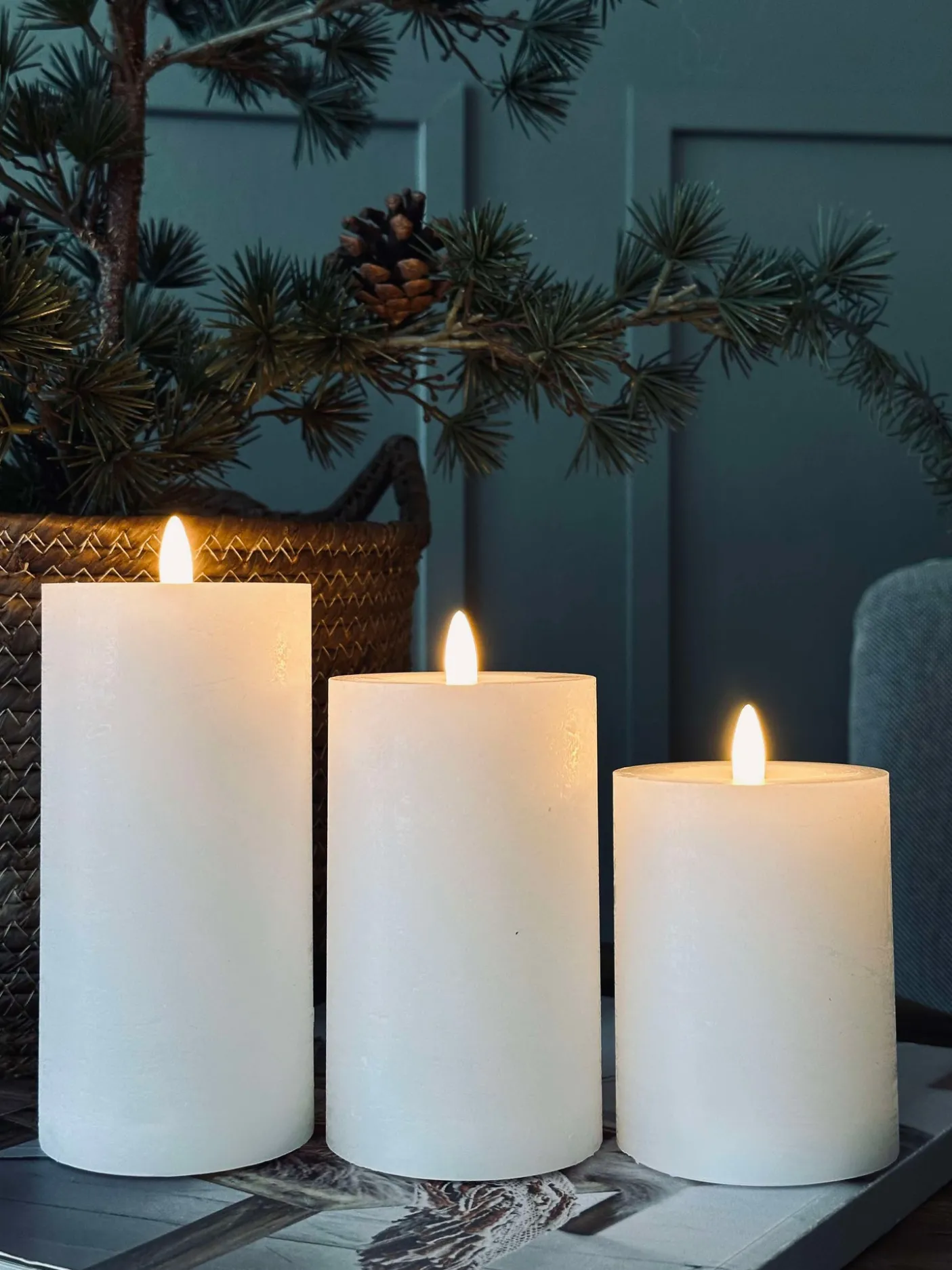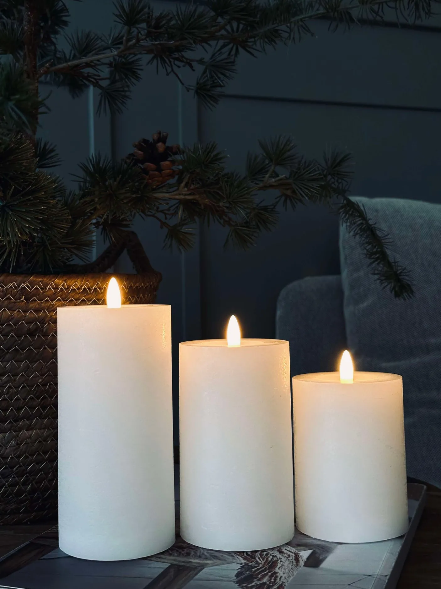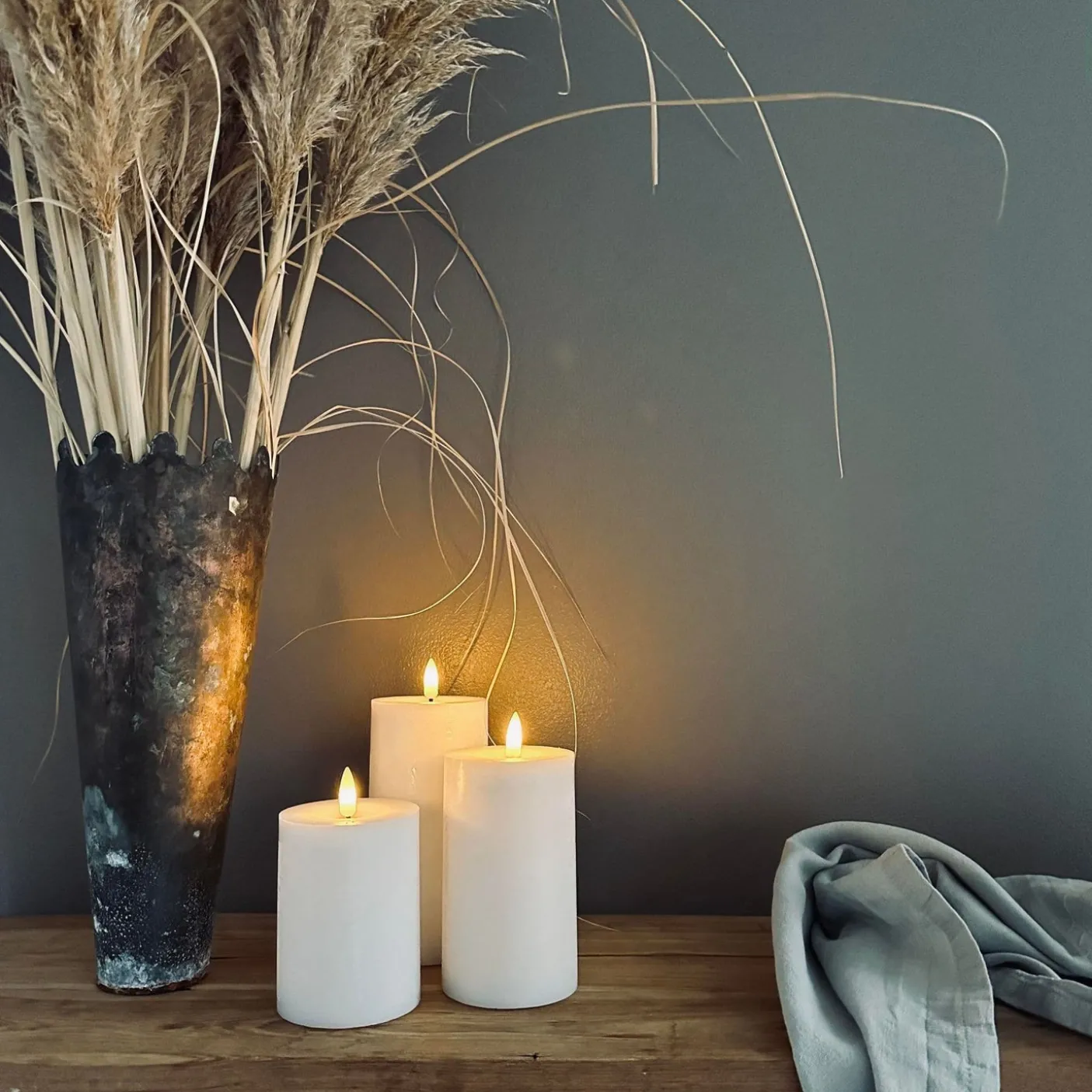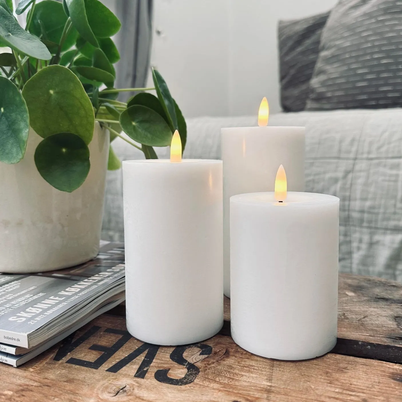 Lysene er meget naturtro og har en flot varm glød. Bloklysene er lavet af voks og har 3d flamme.