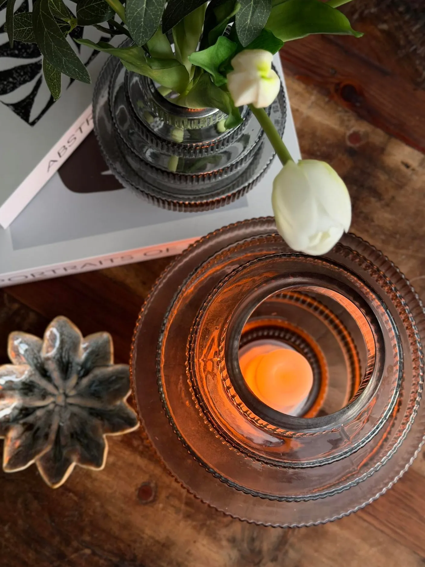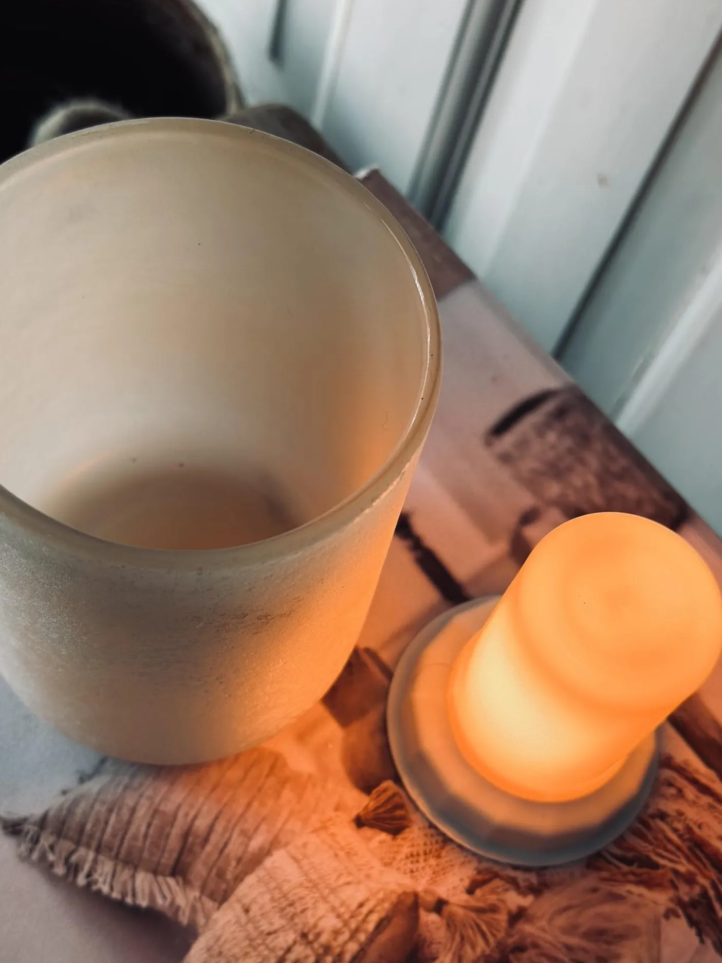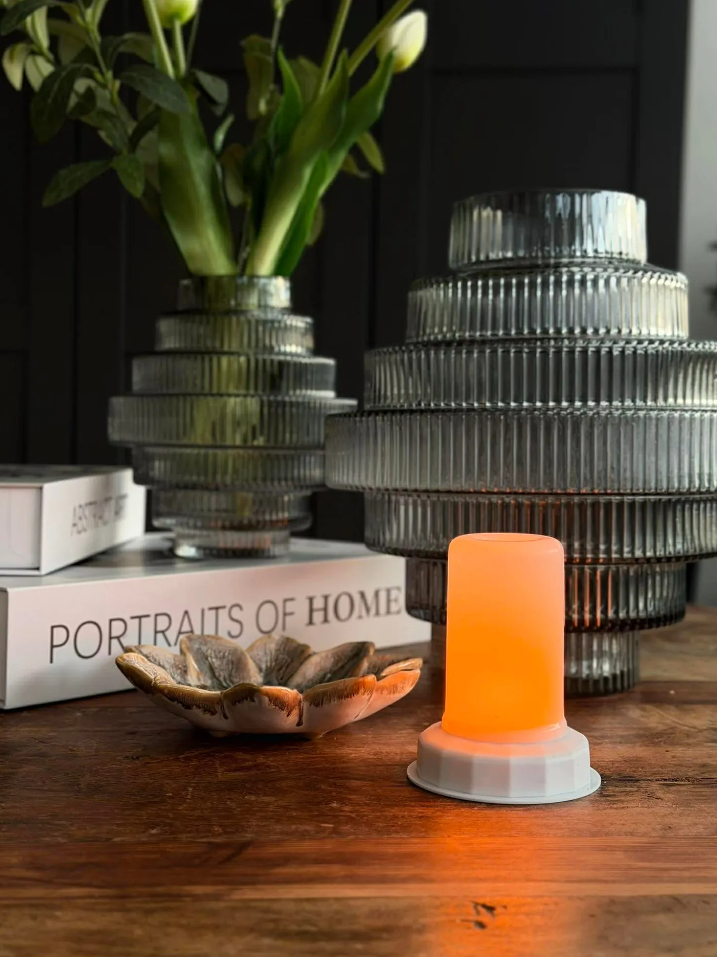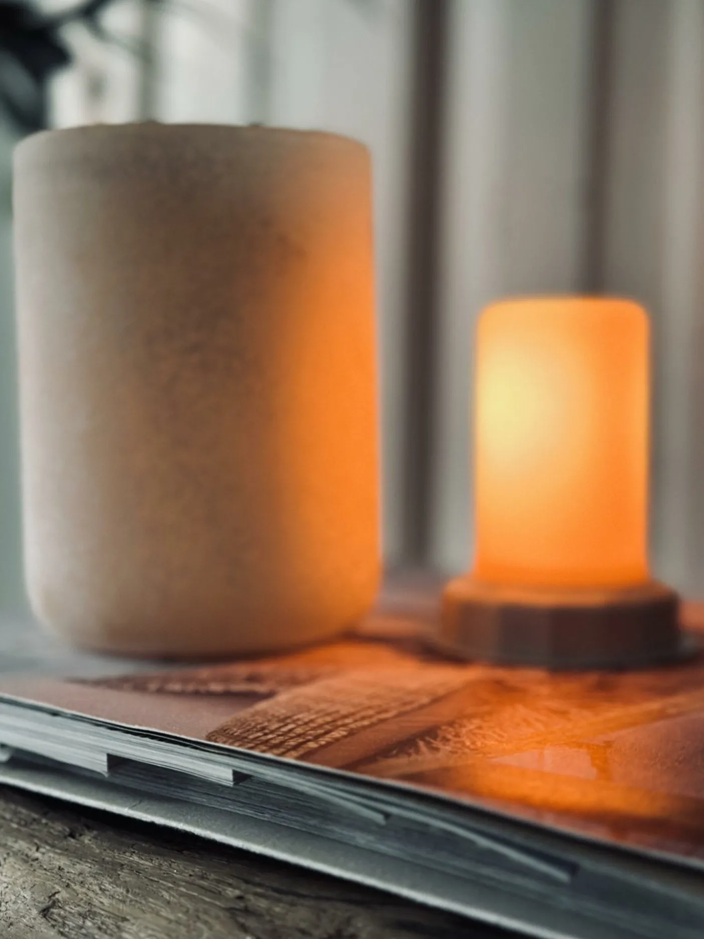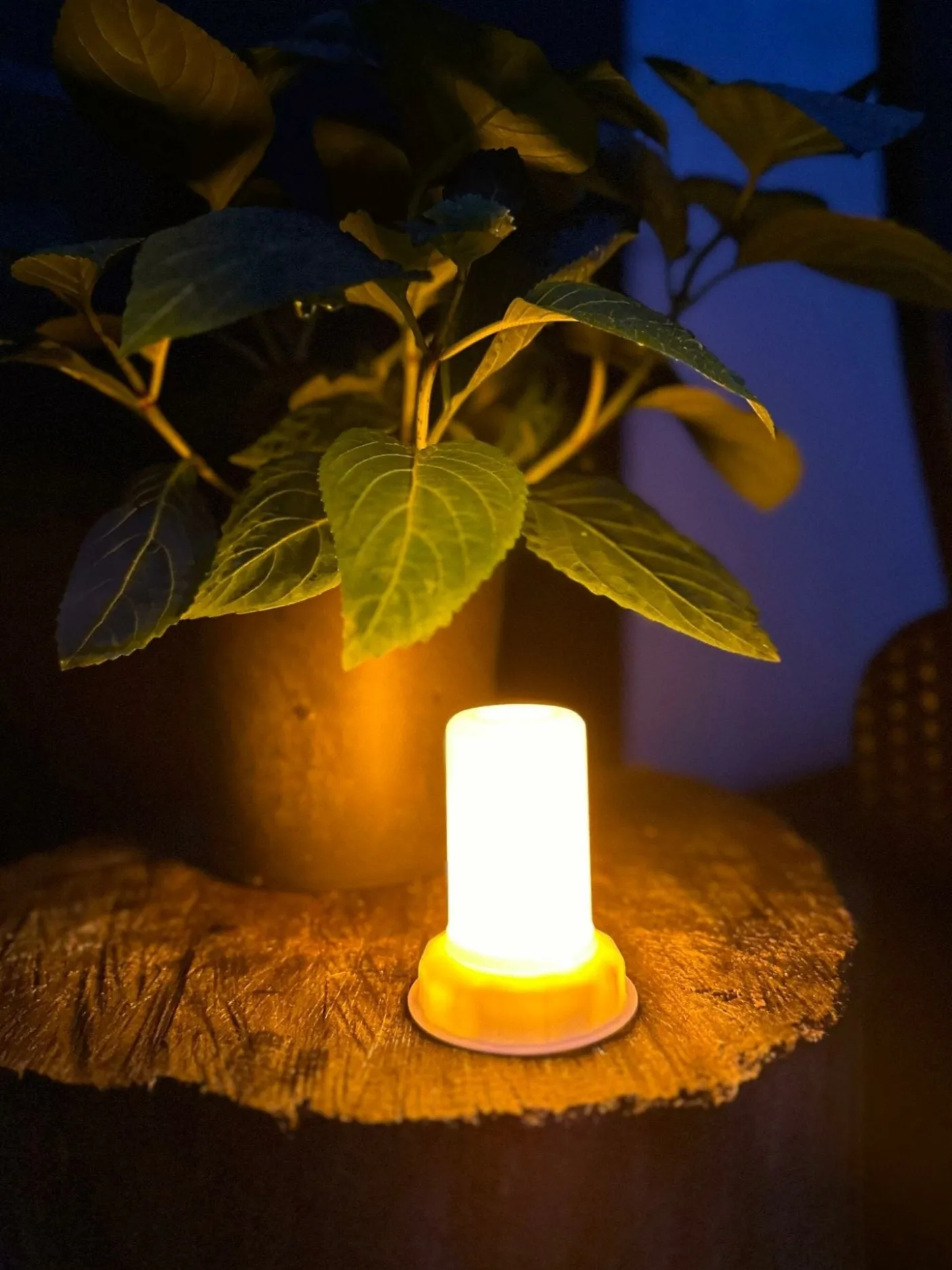 Lyset tændes under bunden og har et flot “flamme” skær.