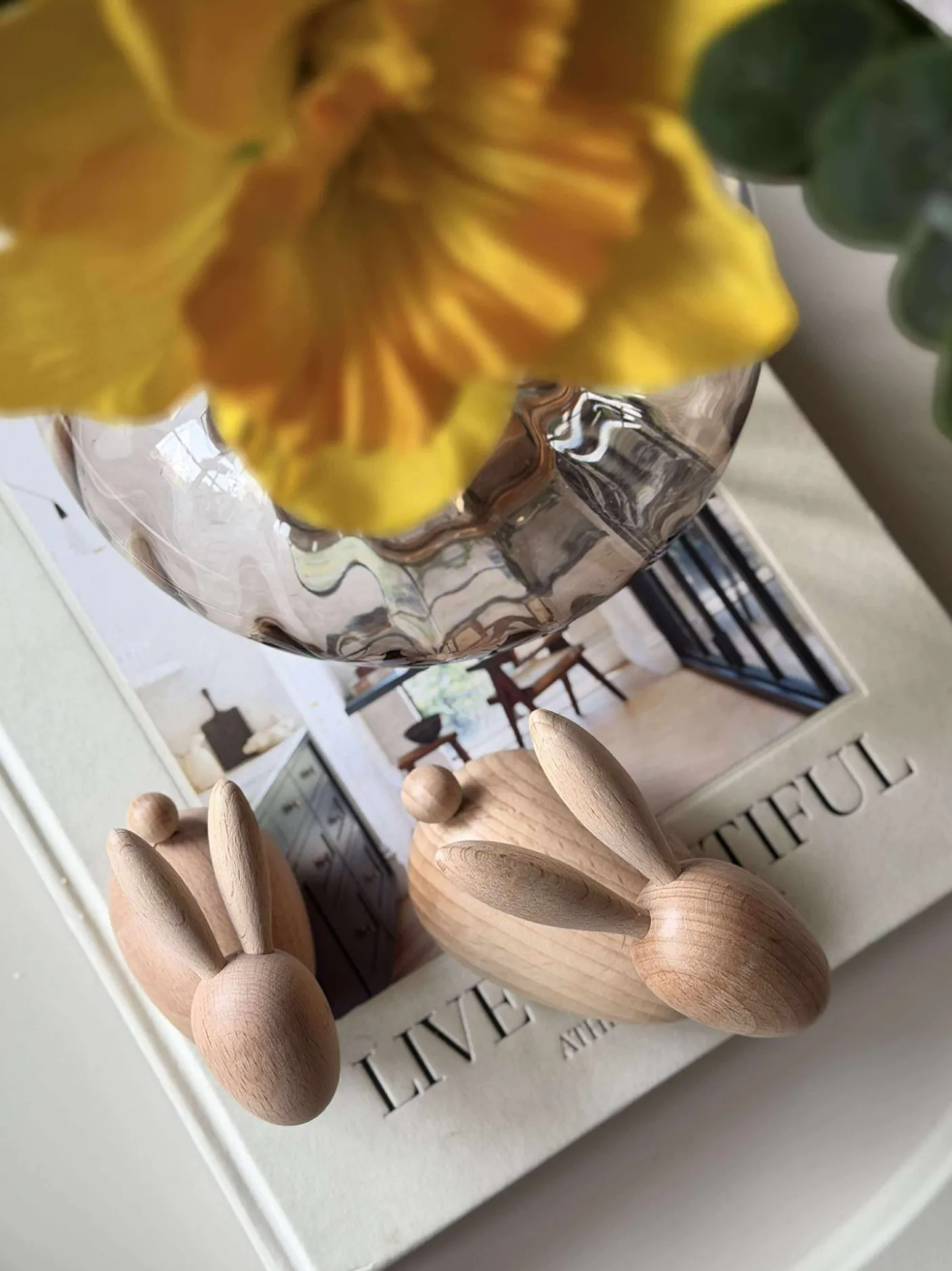 Forestil dig denne træfigur kanin som en del af din daglige oase. Lad den bringe en stille elegance til din stue eller arbejdsværelse, og mærk, hvordan dens tilstedeværelse kan skabe en balanceret og afslappende atmosfære. Giv dit hjem et strejf af naturlig skønhed i dag.