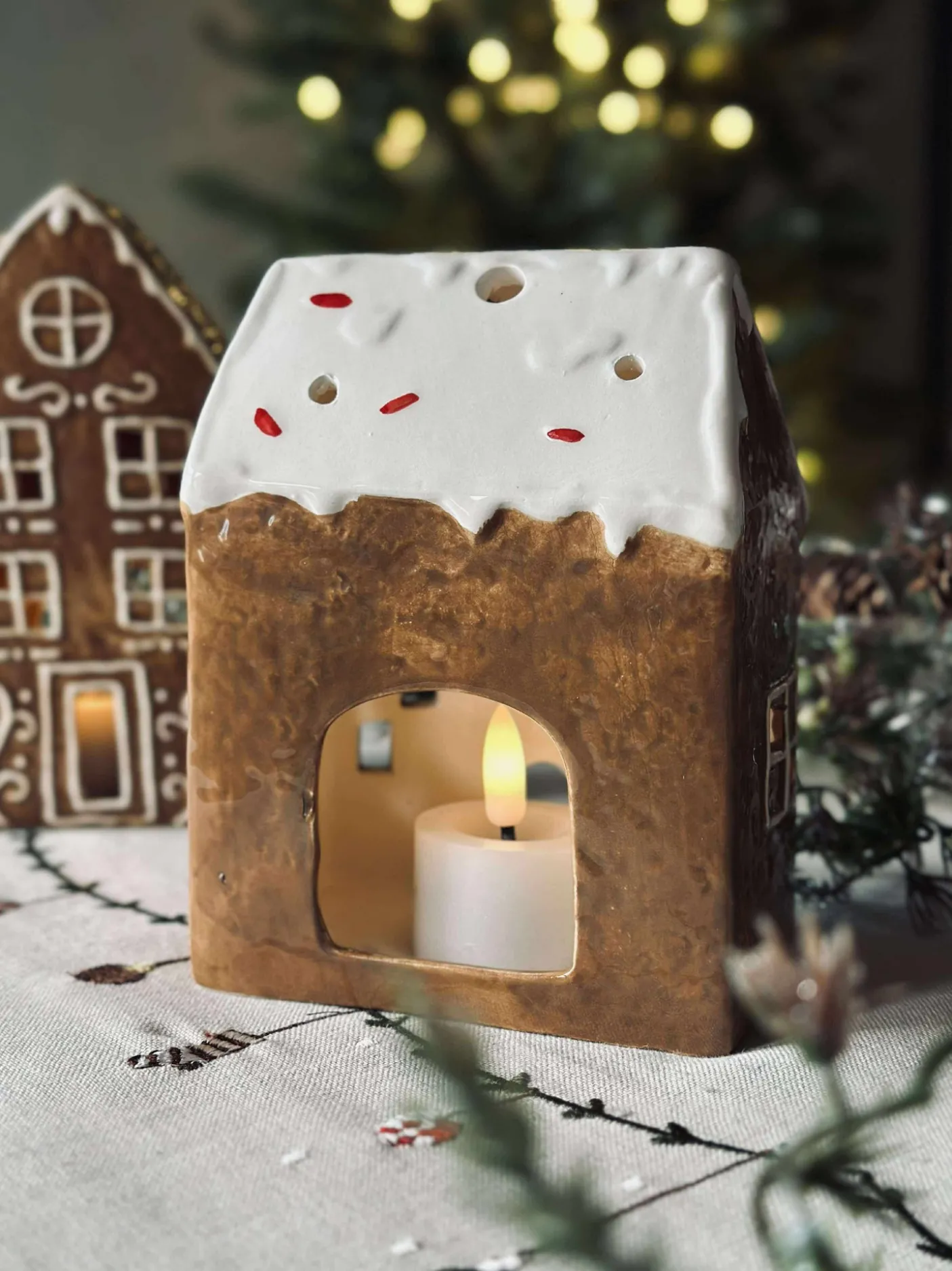 Charmerende lyshus i keramik.
