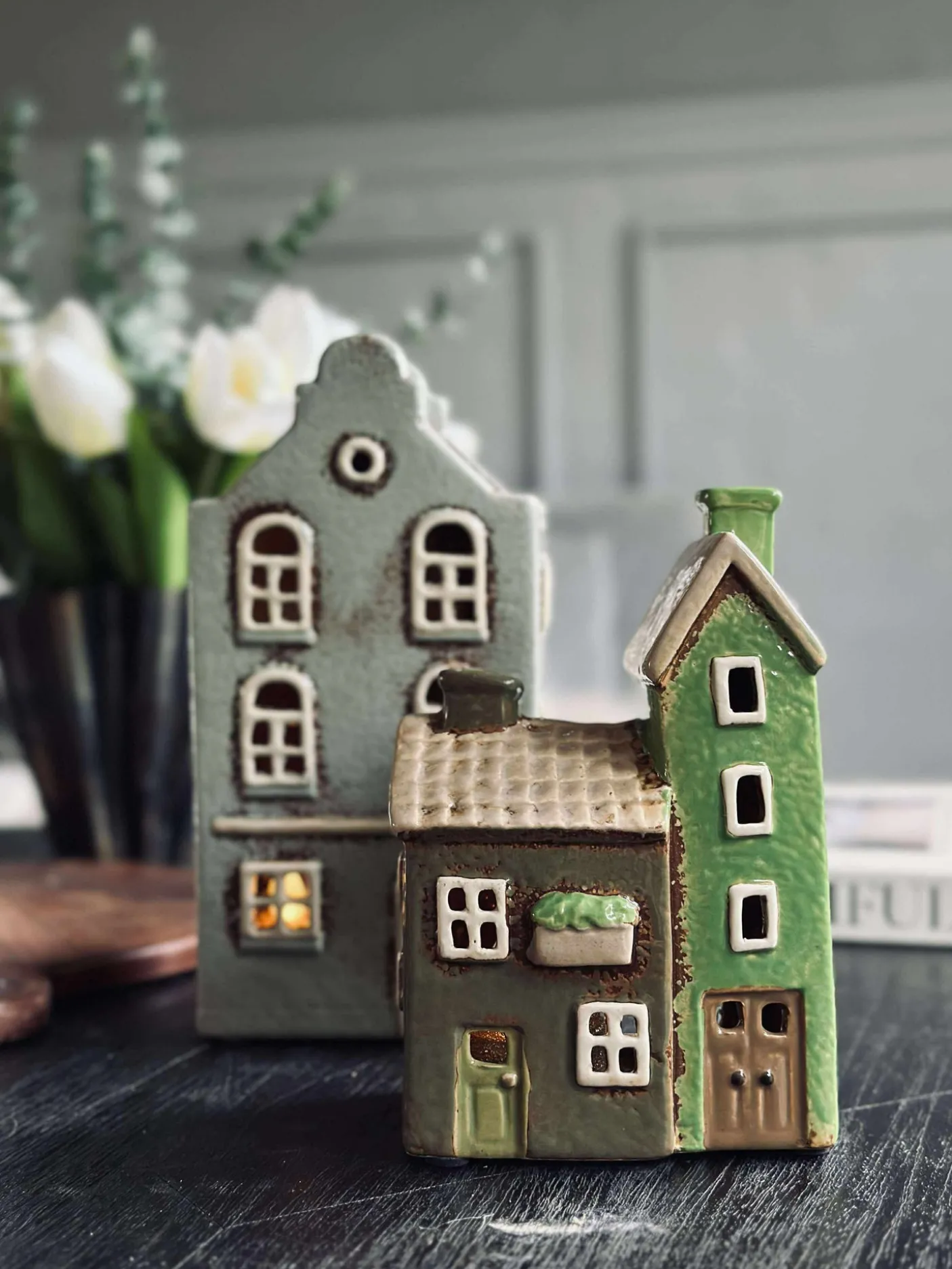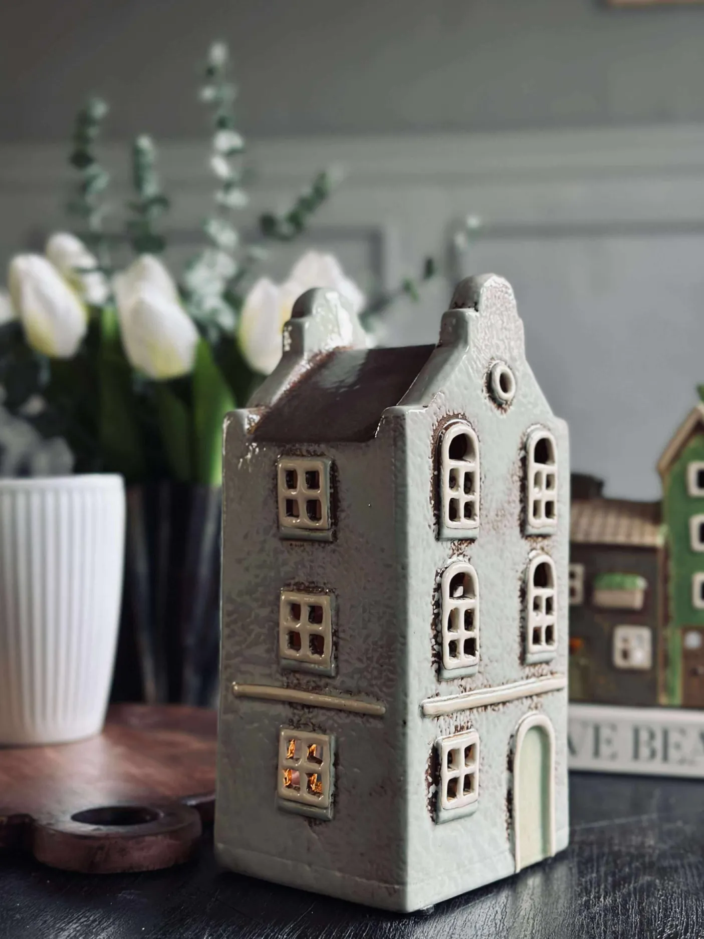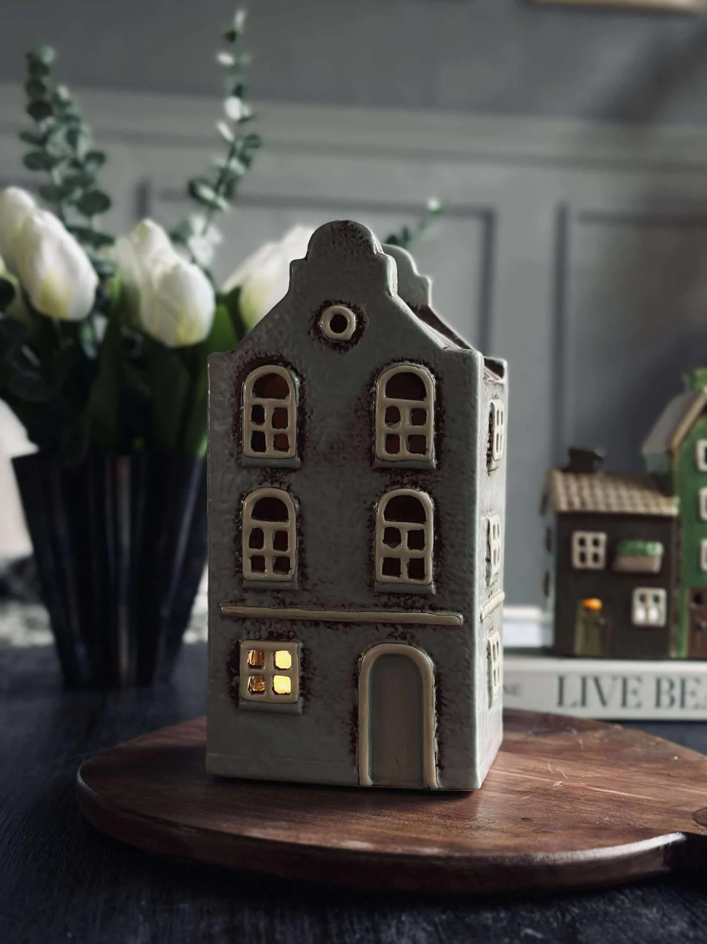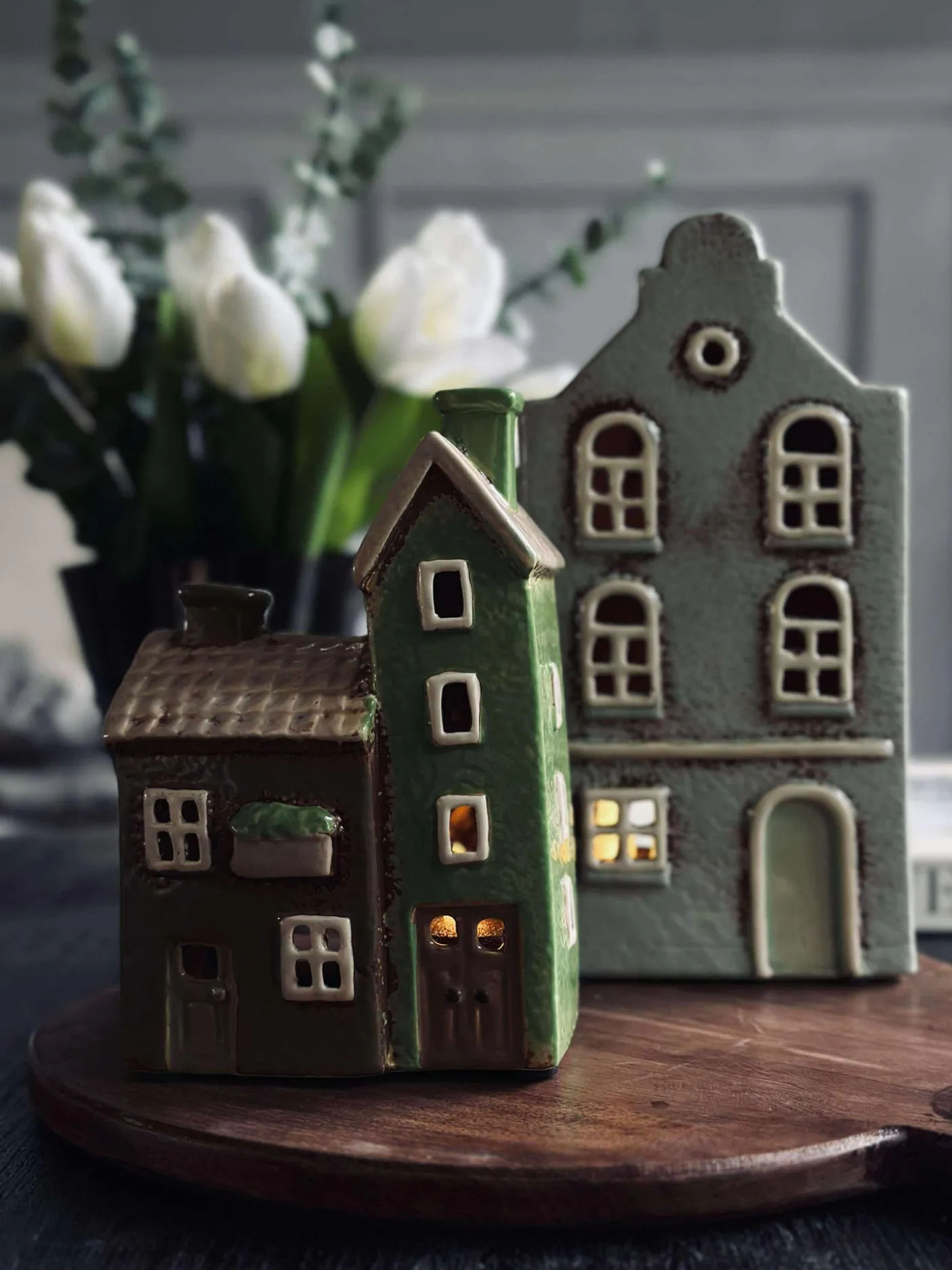 Charmerende lyshus i keramik.