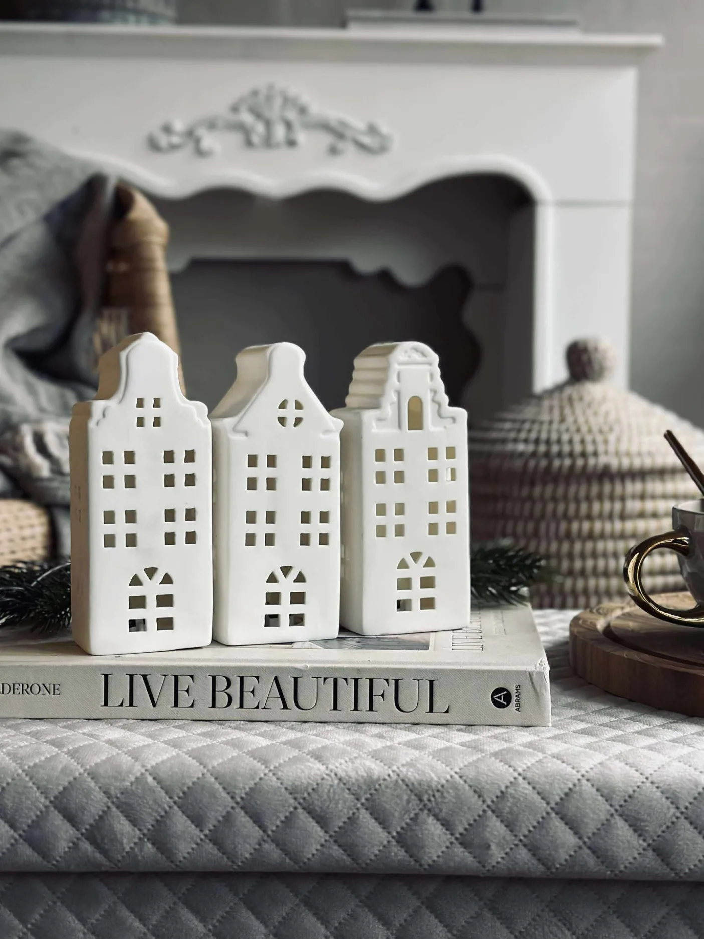 Charmerende lyshus i keramik med led lys.