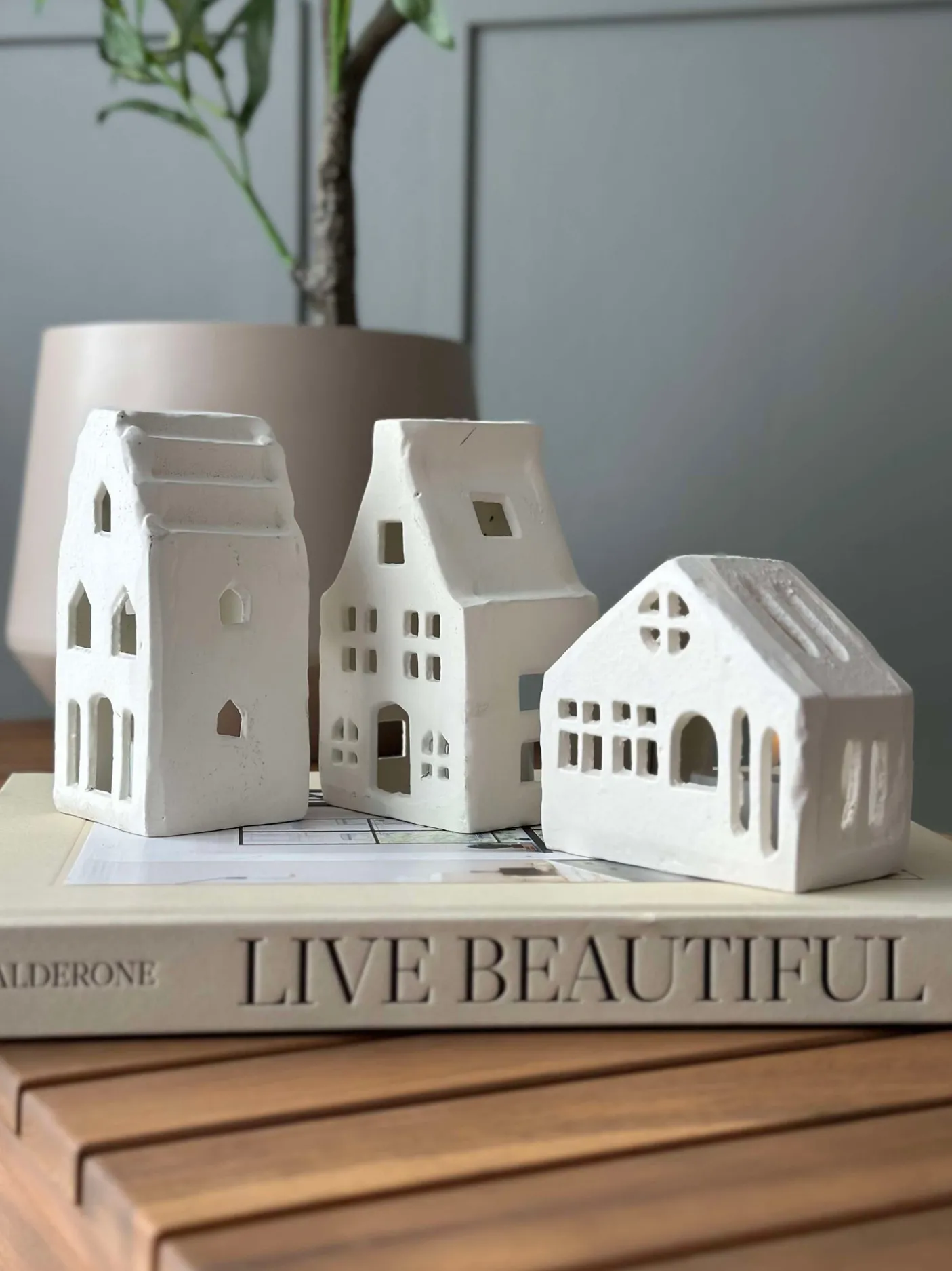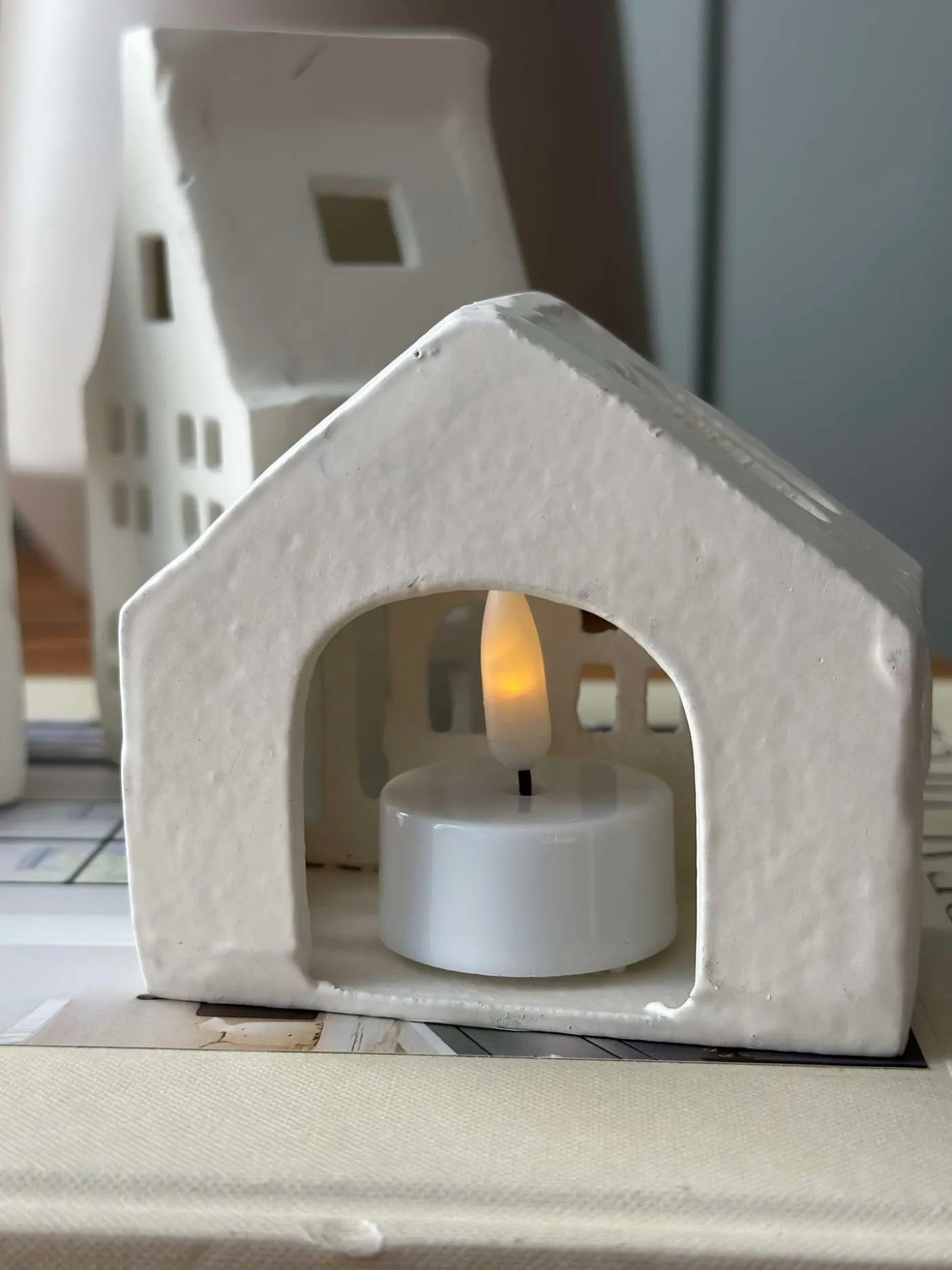 Charmerende lyshus i keramik.